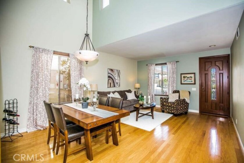 Built as SINGLE FAMILY DETACHED HOME STYLE with NO COMMON WALLS. Perfectly located in the peaceful and scenic community of Cambria in Anaheim Hills. Premium location at the end of a cul de sac offering an extra large drive way, stunning views of the gorgeous hills, greenery & surrounding nature. Wonderful curb appeal with a charming covered front porch giving you a wonderful place to sit and visit with the neighbors. Popular floorplan with a spacious & inviting living room & formal dining area which are ideal for entertaining. Beautiful kitchen with lovely cabinetry, gorgeous granite counters & custom backsplash. Off of the kitchen is an eating area & the spacious adjoining family room with a fireplace & wall of windows to the spectacular backyard. Upstairs offers 3 spacious bedrooms with an optional 4th bedroom with the large open loft area. The peaceful master suite with a view offers a large walk-in closet & spa like bath with dual vanities, custom mirror, separate shower & a relaxing soaking tub with a view of the hills. Down the wide hall are 2 more comfortable bedrooms, a large hall bath & the added convenience of an upstairs laundry room. Be sure not to miss some wonderful upgrades the owners have done, the newer custom Anlin windows with warranty, newer water heater & softener, beautiful landscaping & a stunning oversized backyard with custom BBQ and new fencing with 100 year warranty and the VIEW! 8720 E. Fallbrook Way, Anaheim CA 92808 is a must see home!