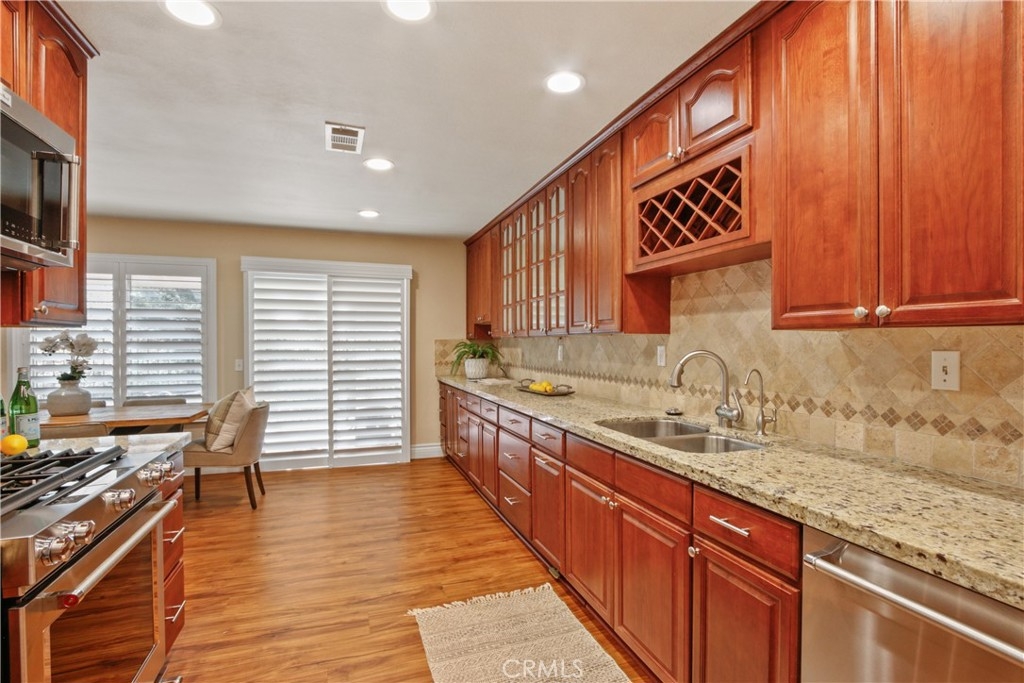 ***From the professionally landscaped front courtyard to the back patio, all the upgrades have been done for you in this beautiful, two-story Anaheim Hills home located in Camino Grande Villas!*** A gated, brick accented front patio greets you upon arrival. Pride of ownership shows as this dual master home has been completely refurbished within the last two years. The long list of updates throughout include all new luxury waterproof vinyl plank flooring, plantation shutters, new top-rated KitchenAid matching appliances, wide base moldings, custom pull-outs in kitchen cabinets, custom shelving added in living room, organizers in both master walk-in closets, new windows and sliding glass doors, new interior doors and hardware, as well as a new entry door with sidelight. Plentiful custom wood cabinetry and loads of granite counter space accented with stone backsplash make this upgraded kitchen not only efficient, but a pleasure to work in. The spacious living room features vaulted ceilings and a gas fireplace. The dining area and kitchen open to a lovely pergola back patio with gas connection for the BBQ. Enjoy views of the hillside and greenbelt from this private patio. The convenient upgraded downstairs powder room, ceiling fans in both master suites and living room, spacious linen closet in upstairs landing area, and remodeled master baths highlight the home. A full-size driveway leads to the 2-car direct access garage which offers an abundance of built-in custom cabinets, like-new washer & dryer (2020), new water heater (installed 2020), and whole house soft water and RO system. Situated on a great cul-de-sac location, this beautiful community is convenient to Anaheim Hills Golf Course, great schools, hiking trails, shopping centers, and freeways. Truly move-in ready, all you need is your belongings! What are you waiting for?