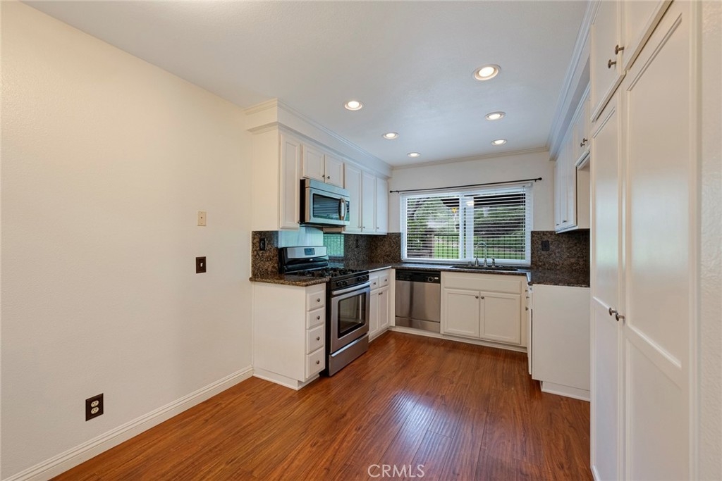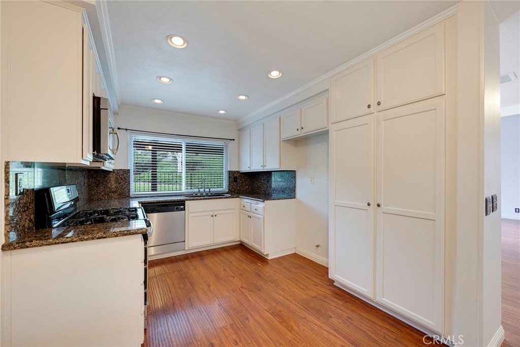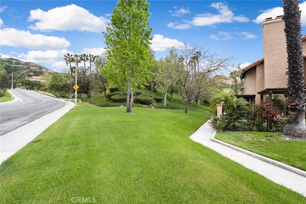 Move-In Ready, 3 Bedroom 2.5 Bath 2 story home in Highly desired area of Anaheim Hills. The upgraded kitchen features granite counters and back splash., recessed lighting, stainless steel appliances and wood blinds. Open Floor plan is light and bright and freshly painted. Living/Dining area has a brick fireplace for those cold winter nights. All bedrooms upstairs have ceiling fans, upgraded wood flooring and blinds. Master Bedroom features 2 sink vanity with shower head over tub. Centrally located near Anaheim Hills Golf course, Shopping Center, Schools and Anaheim Hills nature center. Just minutes from freeway, yet tucked in the hills of Anaheim. Prime Cul De Sac location. No rear neighbor, just nice green grass. This home is priced to sell quick.