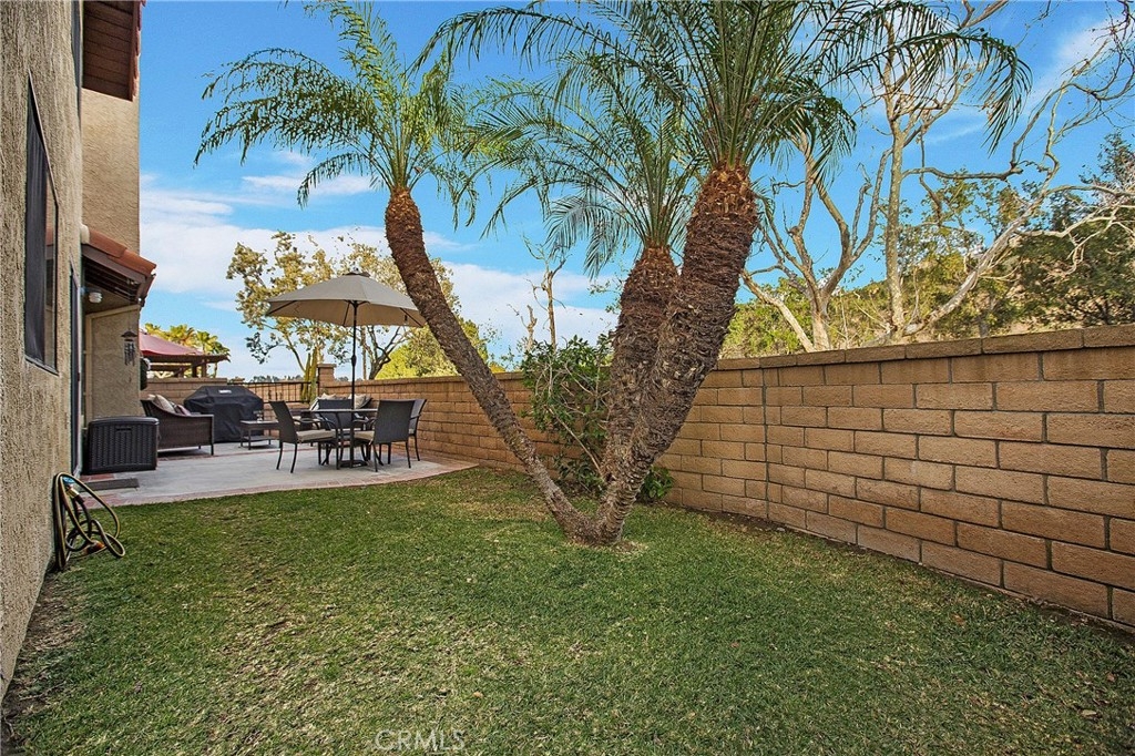 Rare opportunity to own the second largest floor plan in the highly sought after Camino Grande tract at the top of Anaheim Hills. This 3 bedroom 2 bath Single Family end unit cul-de-sac location features a wraparound backyard and patio area perfect for quaint entertaining. Kitchen and downstairs bathroom were just remodeled in September 2020. Kitchen features upgraded recessed lighting, Kohler oversized farmhouse sink, quartz countertop, marble backsplash, hidden dishwasher and custom bronze hardware. The downstairs also features New flooring, base molding, designer paint and a new hearth/mantle as well as plantation shutters. New HVAC unit and complete whole house ducting was installed October 2020. Dining room faces a patio and hillside views, and the kitchen offers a separate eating area. Open floor plan with lots of natural lights and vaulted ceilings. Upstairs you will find an oversized master bedroom with dual vanity. Both guest rooms have newly completed crown molding and custom paint. Other features include a whole house fan, new garage door (2019) and award winning Orange Unified School District and walking trails/ equestrian trails just outside the house.