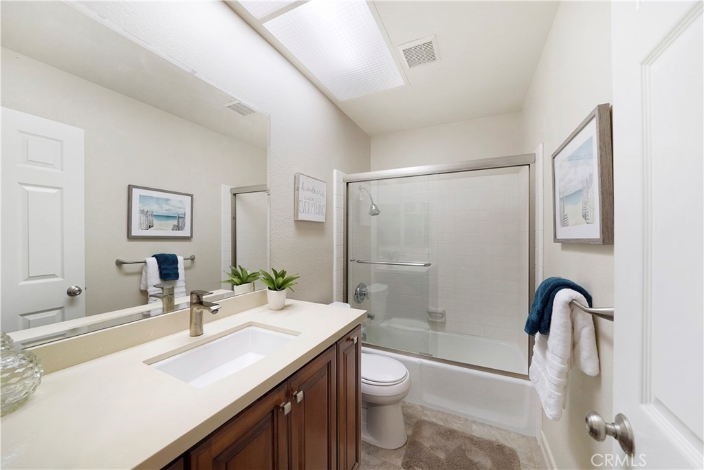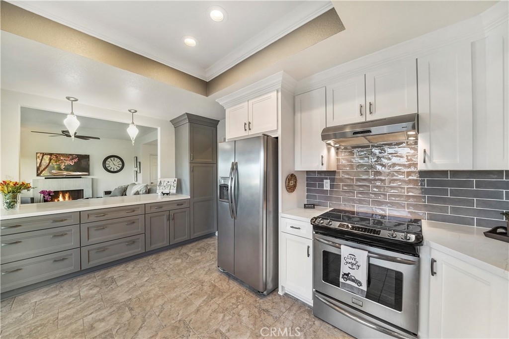 Gorgeous single-story Anaheim Hills condo is in the Canyon Pointe community. BREATHTAKING VIEW from master bedroom, kitchen and living room area with an elegant marble fire and ice fireplace to enjoy. Both bedrooms have walk-in closets! Quartz countertops, ceiling fans, new windows and remodeled throughout! Offers peaceful living in a gated community with a short walk away from a relaxing pool area. Attached, two car garage with direct access into the home! Inside laundry room is down the hall away from the master bedroom and living room area. Direct access to your cozy courtyard and two patios which is perfect for entertaining and enjoying your view. Short distance to the 91 frwy, 55 frwy and 241 Toll Road. Minutes to shopping and entertainment! Do not miss out on this opportunity!