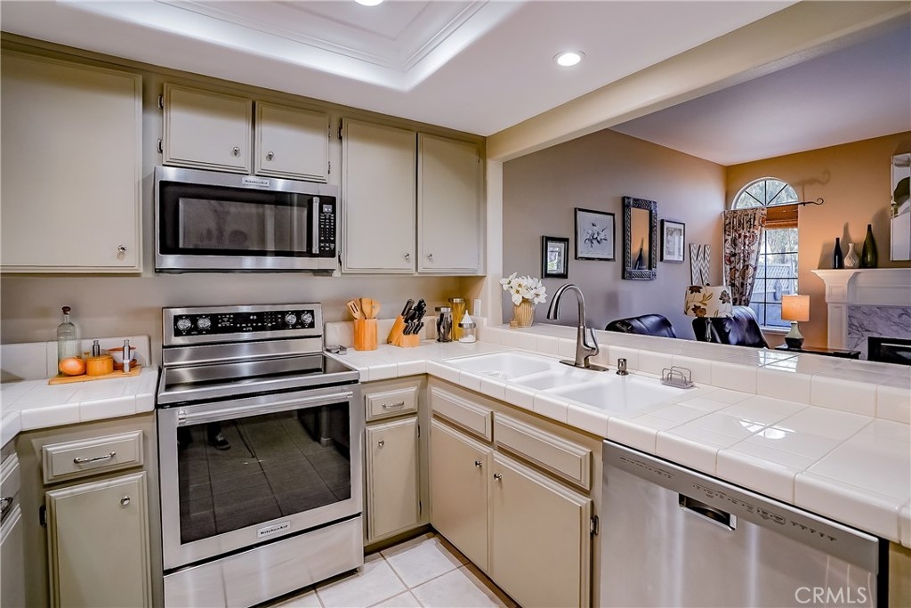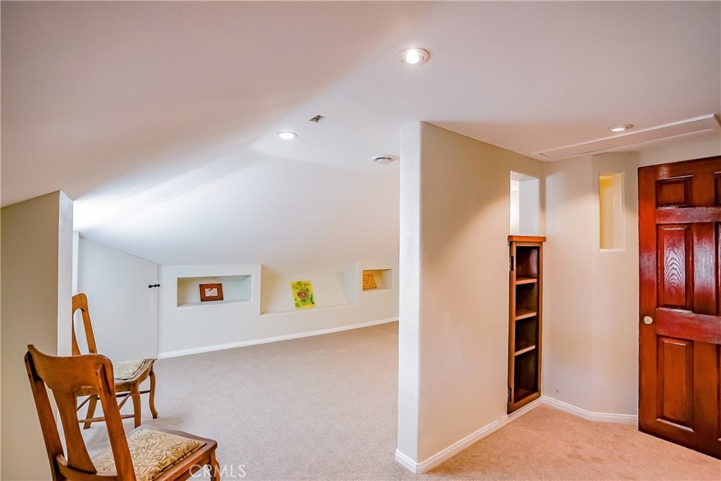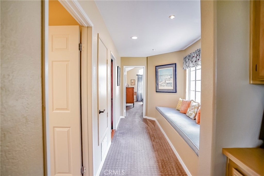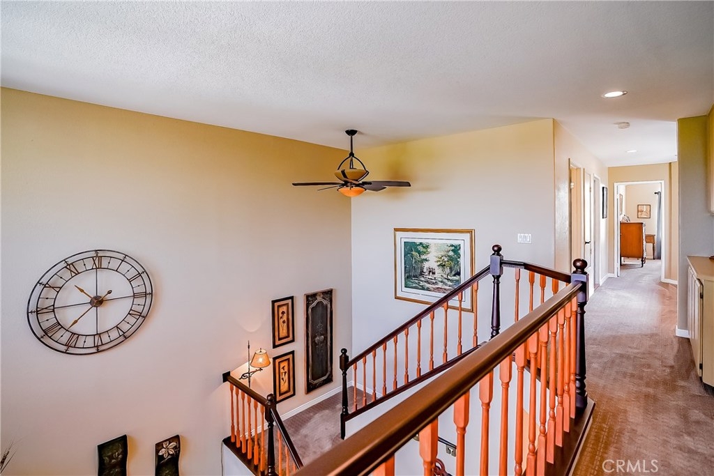 VIEW, VIEW, VIEW!!! This Immaculate spectacular view home is located in the private gated community of Crown Pointe.Tucked inside a very quiet and upscale community of only 16 homes, endless views of city lights, Disneyland fireworks, rolling green hills and snow-capped mountains are enjoyed year round. This beautiful community is known for its unique tranquil setting and ambiance. As you enter this lovely home, you are greeted with a very open floorpan with full unobstructed views.! The lovely kitchen has stainless steel appliances with a super quiet dishwasher! Custom recessed lighting through out. New garage door with pebble tech flooring. The living room is good sized with cathedral ceilings and looks onto a private patio area. Downstairs updated bathroom, dining nook/office and laundry room with storage complete the main floor. Upstairs there is a luxurious large master suite complete with fireplace, large master bath and panoramic views. There are two generous sized secondary bedrooms, one with a private balcony. Owner has converted attic to a bonus room/4th bedroom with a window and AC and still has room for all your storage needs! A spacious outdoor back patio offers the perfect place to relax, entertain and enjoy panoramic views. Green belts with access to hiking trails. Conveniently just a short walk to the Crown Pointe resort style community pool, spa and clubhouse. Truly a pride of ownership!