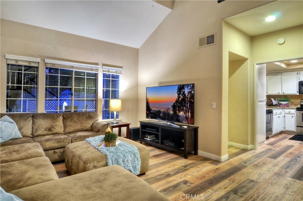 VIEW, VIEW, VIEW!!! Located in the private gated community of Crown Pointe, this SPECTACULAR VIEW HOME is truly a dream come true! Tucked inside a very quiet and upscale community of only 16 homes, endless views of city lights, rolling green hills and snow-capped mountains are enjoyed year round. This beautiful community is known for its unique tranquil setting and ambiance. As you enter this lovely home, you are greeted with a very open floor and full unobstructed views. The lovely kitchen has granite counters and updated cabinetry and offers an open counter to the family room/dining room with a fireplace and incredible views. The living room is good sized with cathedral ceilings and looks onto a lovely private patio area. A powder room, dining nook/office and laundry room complete the main floor. Upstairs there is a luxurious large master suite complete with fireplace, lavish master bath and panoramic views. There are two generous sized secondary bedrooms, one with a private view balcony. A well sized hallway bathroom and a large linen storage cabinet complete the upstairs. A spacious outdoor back patio offers the perfect place to relax, entertain and enjoy panoramic views. Conveniently just a short walk to the Crown Pointe resort style community pool, spa and clubhouse. It is nearly impossible to find a more spectacular view home than this amazing property. Truly a pride of ownership!