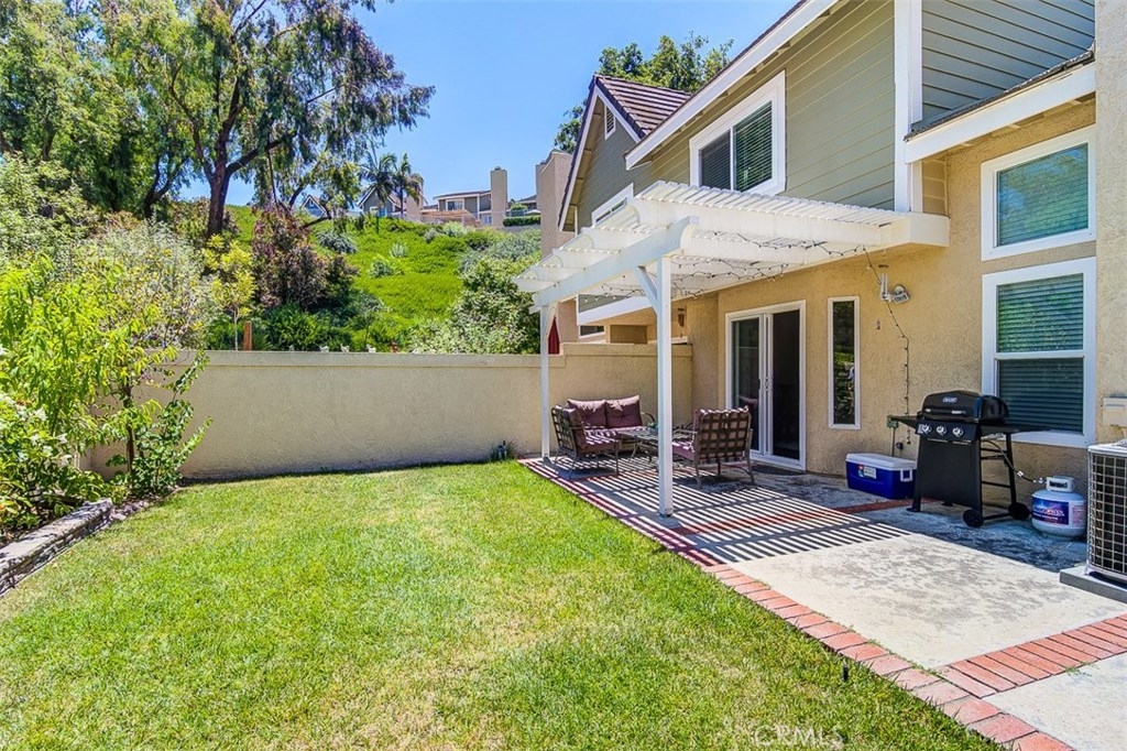 **NESTLED AWAY IN ANAHEIM HILLS**One Of The Best Kept Secrets In Anaheim Hills, Serene Townhome Nestled In Anaheim Hills IN EMBASSY POINT! This Feels Like A Single Family House!! This 3 bd, 2.5 ba Townhome is located on a quiet Cul-de-sac street! Kitchen has been tastefully Remodeled w/White Cabinets, Granite Counters, Glass Backsplash, Farmhouse Sink w/Pot Filler Faucet! Bay Window in Kitchen allows for an abundance of light! Living Room w/Gas Fireplace open to Dining Room w/gorgeous Glass Chandelier. Powder Room w/Upgraded Vanity. Master En-Suite w/Cathedral Ceilings & Master Bath w/Upgraded Vanity & Walk-in Shower. Main Bath w/tub and shower combo. Sliding Doors open to a Private VERY LARGE Grass Backyard has a Covered Patio & is nicely landscaped with view of lush trees. The Back Patio Has Plenty Of Privacy And Perfect For Get Together W/Family And Friends. Hardwood Floors flow throughout the downstairs. High Ceilings give this home such a Large Open Feel. There is Direct Access to a 2 Car Garage w/Washer & Dryer hookups, & Epoxy Floors. What a great location..nearby restaurants, shops and easy freeway access. A Sparkling Community Pool & Spa Are Located On Morningview Dr. Plenty Of Guest Parking, Conveniently Located To Great Shopping Ctr, Restaurants, Anaheim Hills Golf Course, Hiking And Equestrian Trails, Freeways And Award Winning Orange Unified School District. **THIS HOME IS MOVE-IN READY**!
