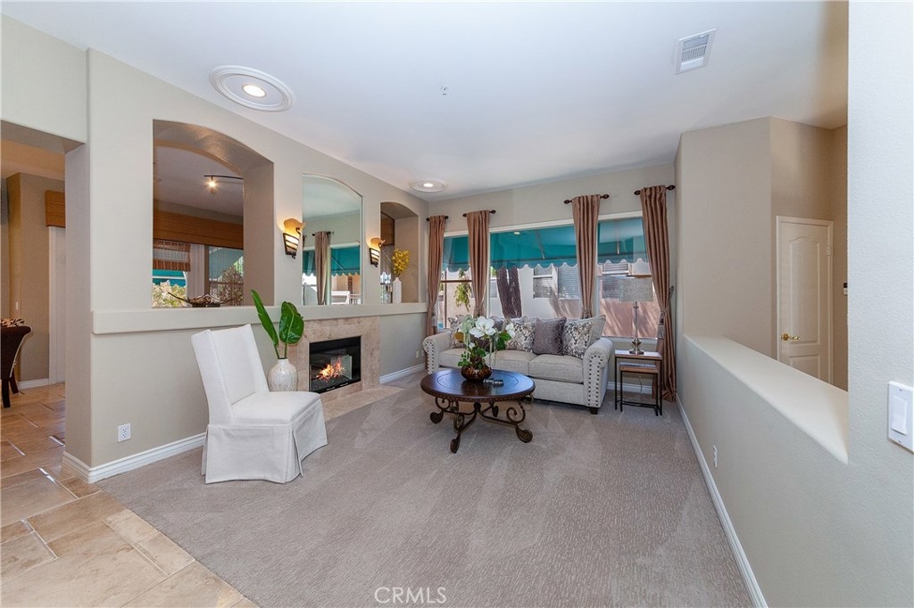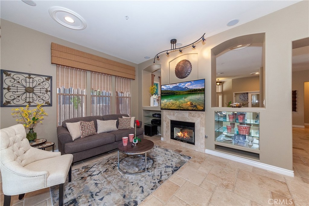 Prestigious End Unit Luxury Condo, located in the Gated Firenze Community. Walk in to Soaring Ceilings with a Bright Open Floor Plan. The Newer Upgrades Throughout, and Serine Tree Views out Every Window on Both Levels of this home, creates an amazing space. Stainless Steel Appliances, New Designer Carpet, Durango Travertine Floors in a Versaille Pattern, Four Fireplace, Custom Window Covers, Wood Shutter, Remote Shades, Home Theater Sound, Gym, Retractable Awning, Multiple Window Awnings, Retractable Screens, Closets with Custom Built In Organizers. Custom Storage in the Laundry Room and Garage. Garage with Epoxy Flooring, and Designer Paint. Flagstone walks and patios. Main Floor Bedroom Option, currently utilized as an Office/Den, Main Floor Bath. Reverse Living Floor Plan, with Two Master Bedrooms Below. Lower Level has a large patio, and turf yard, plus three fruit trees. There is much to appreciate in this beautiful home.