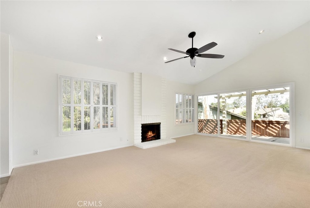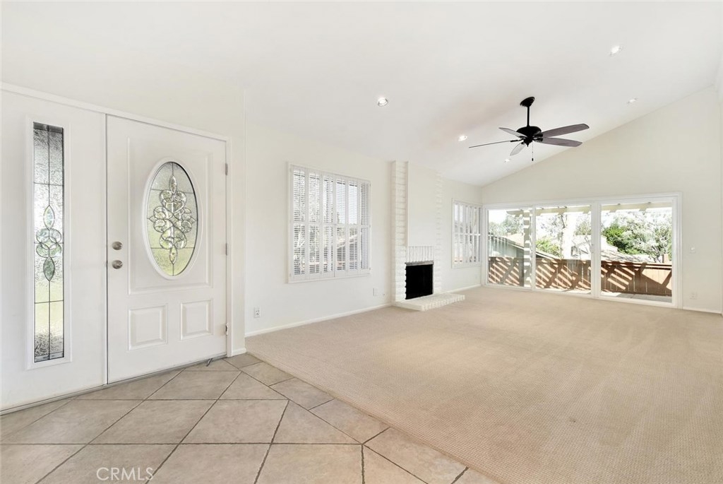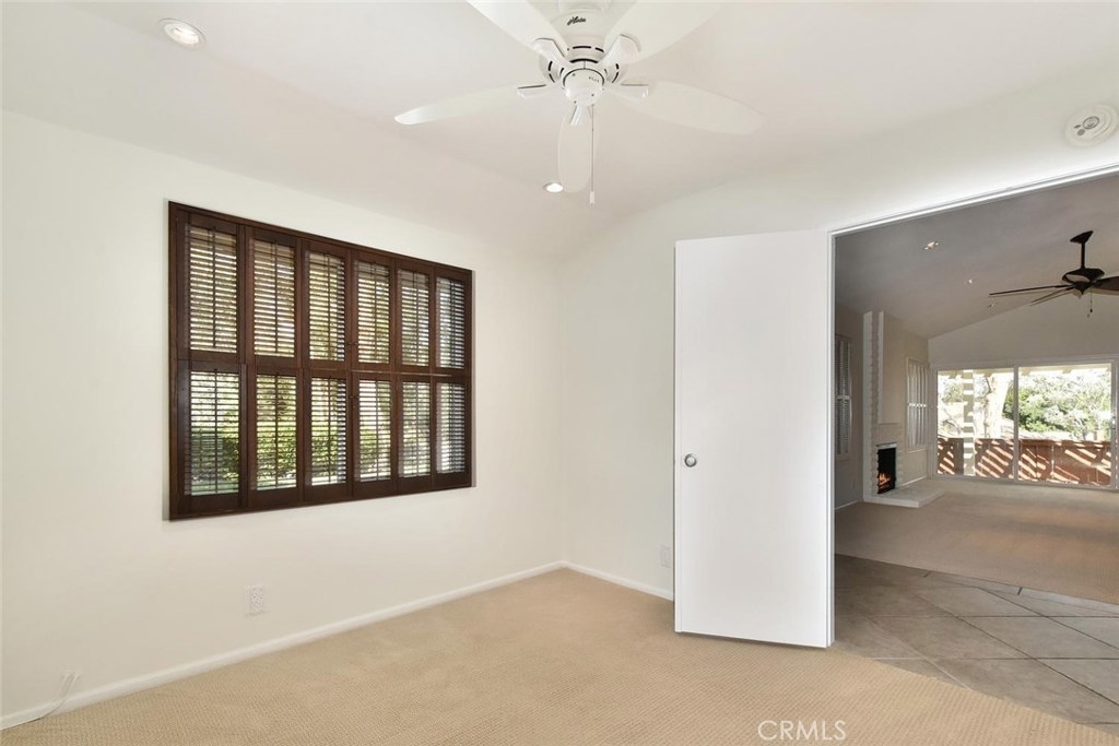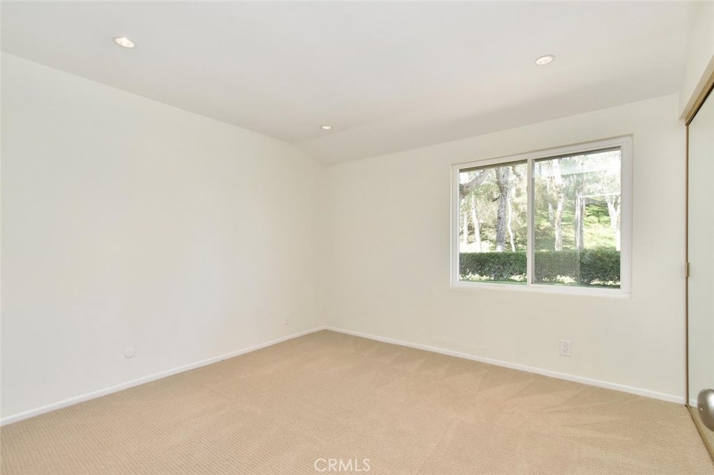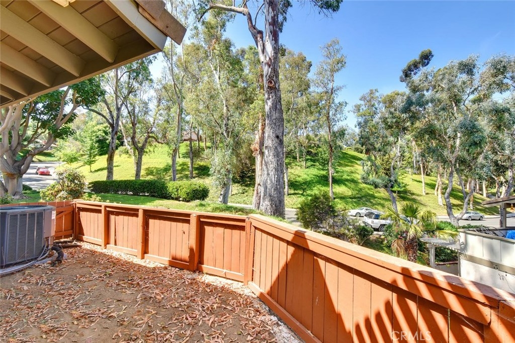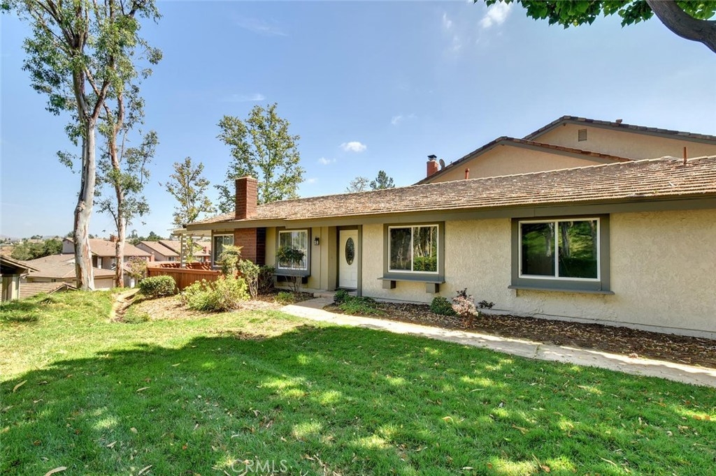 Beautiful two bedroom, two bath, with den / optional third bedroom End-unit on a quiet cul de sac in the Galerie Community. Corner lot / end unit provides a nice grass area with large shady tree with a long walk-way to the front door. Enter into a spacious living room with fireplace and slider to deck with hill and neighborhood views. Dining area leads to the kitchen with slider and big windows bringing in tons of natural light. A den / optional third bedroom is next to the entry with double doors, large master with slider to mini courtyard. Other features include direct access 2 car garage, central AC / Heat, and exterior covered patio. HOA amenities include: pool, spa, picnic area, BBQ area, patio, kitchen, playground, multipurpose room. Enjoy nearby Oak Canyon Nature Preserve and convenient access to 55/91/57 Freeways and 241 Toll Road.