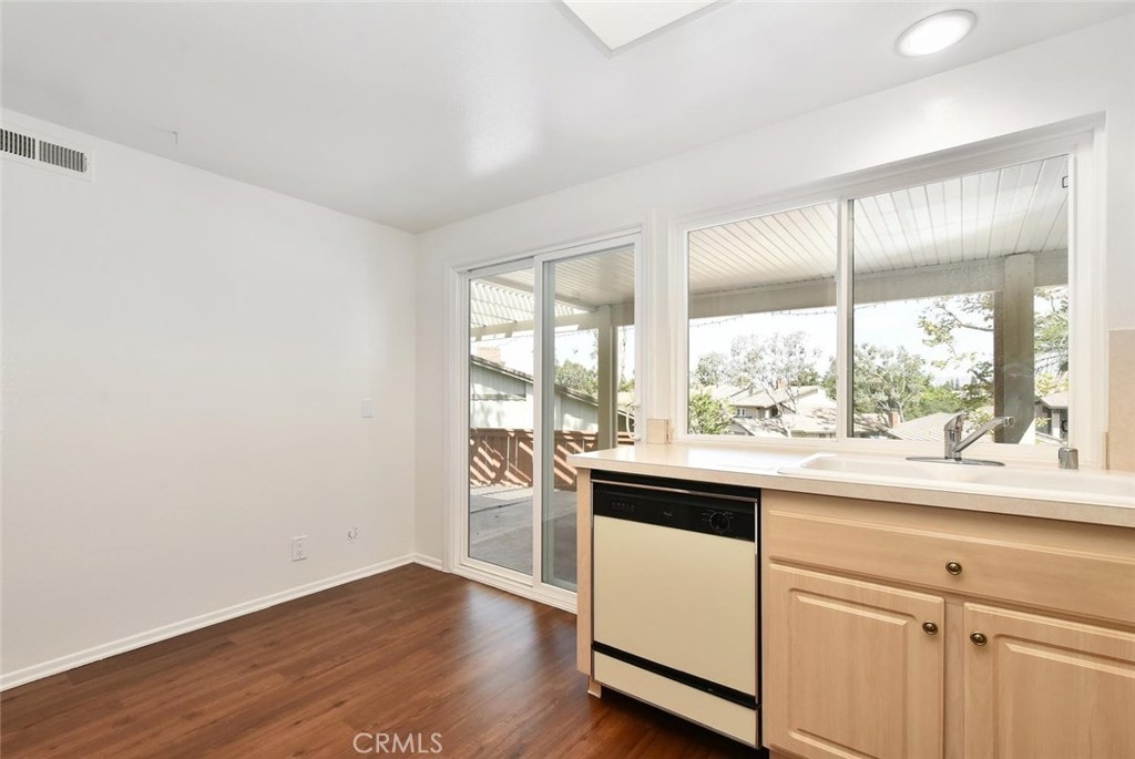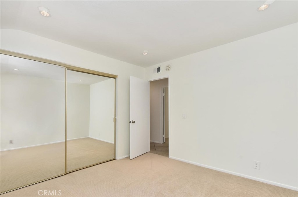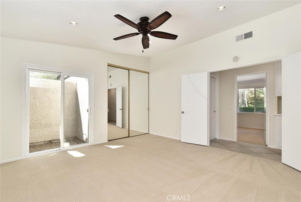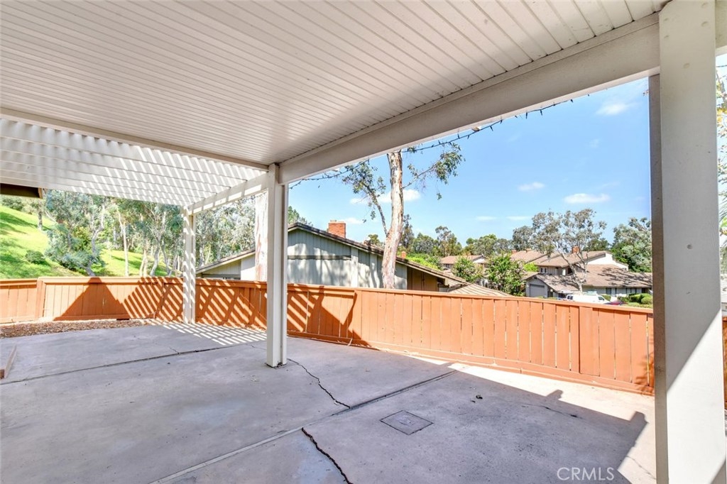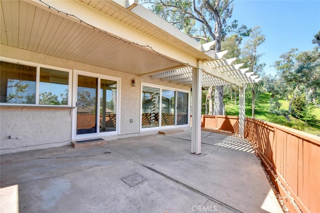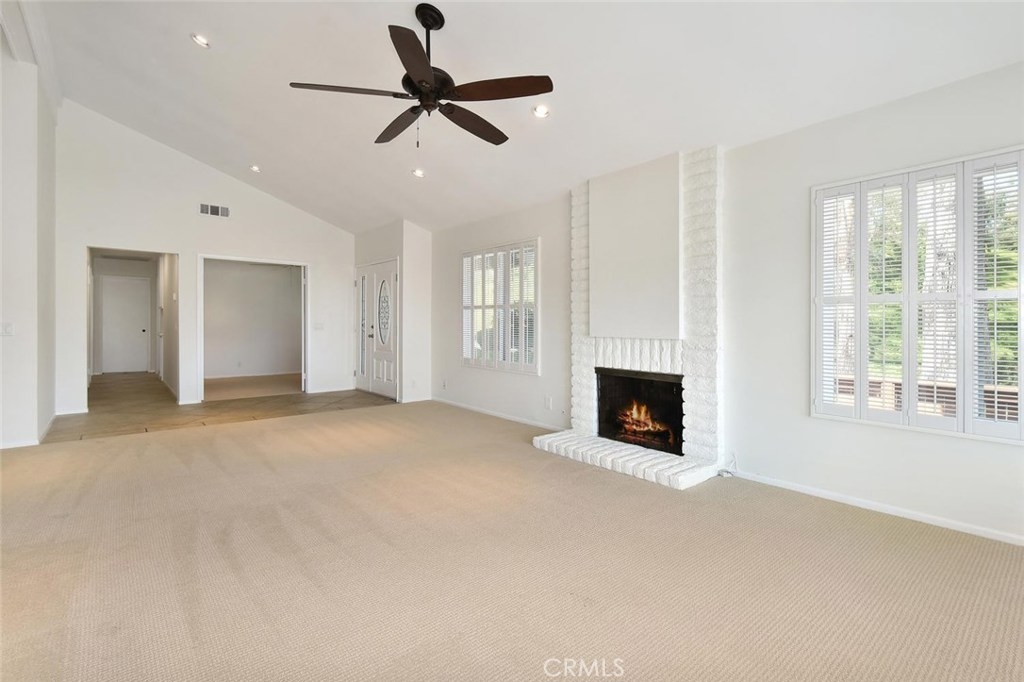 Beautiful two bedroom, two bath, with den / optional third bedroom End-unit on a quiet cul de sac in the Galerie Community. Corner lot / end unit provides a nice grass area with large shady tree with a long walk-way to the front door. Enter into a spacious living room with fireplace and slider to deck with hill and neighborhood views. Dining area leads to the kitchen with slider and big windows bringing in tons of natural light. A den / optional third bedroom is next to the entry with double doors, large master with slider to mini courtyard. Other features include direct access 2 car garage, central AC / Heat, and exterior covered patio. HOA amenities include: pool, spa, picnic area, BBQ area, patio, kitchen, playground, multipurpose room. Enjoy nearby Oak Canyon Nature Preserve and convenient access to 55/91/57 Freeways and 241 Toll Road.