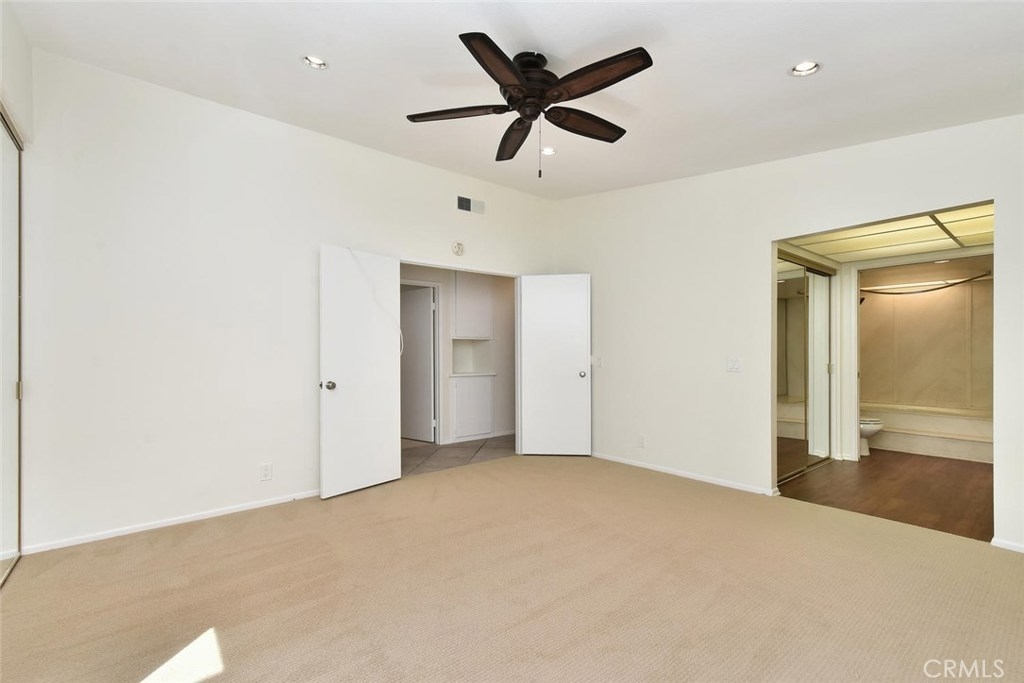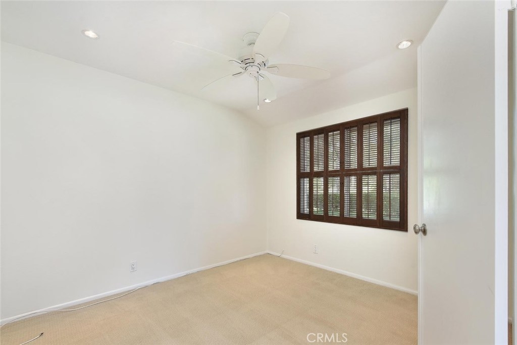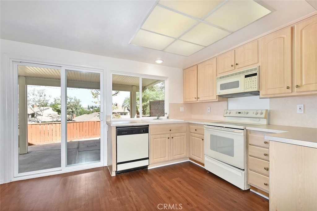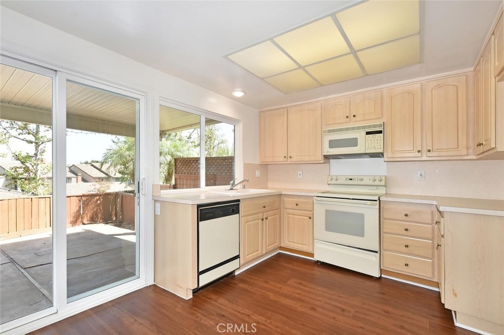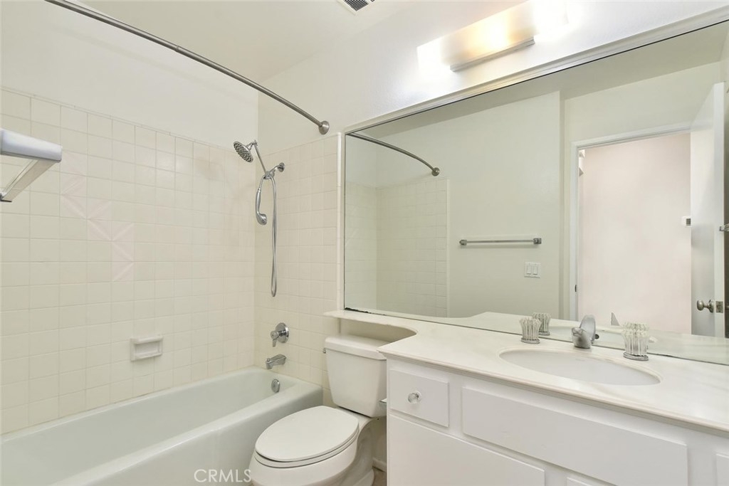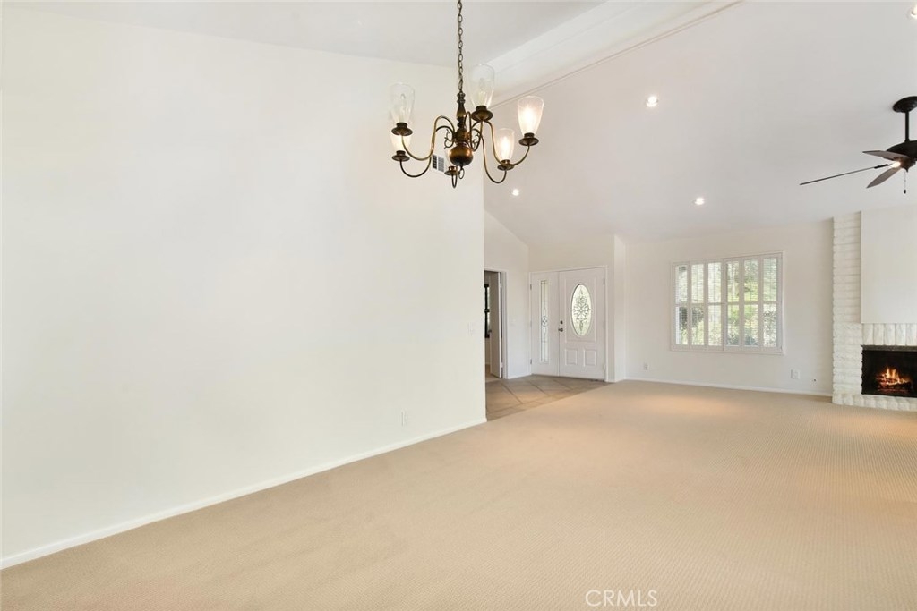 Beautiful two bedroom, two bath, with den / optional third bedroom End-unit on a quiet cul de sac in the Galerie Community. Corner lot / end unit provides a nice grass area with large shady tree with a long walk-way to the front door. Enter into a spacious living room with fireplace and slider to deck with hill and neighborhood views. Dining area leads to the kitchen with slider and big windows bringing in tons of natural light. A den / optional third bedroom is next to the entry with double doors, large master with slider to mini courtyard. Other features include direct access 2 car garage, central AC / Heat, and exterior covered patio. HOA amenities include: pool, spa, picnic area, BBQ area, patio, kitchen, playground, multipurpose room. Enjoy nearby Oak Canyon Nature Preserve and convenient access to 55/91/57 Freeways and 241 Toll Road.
