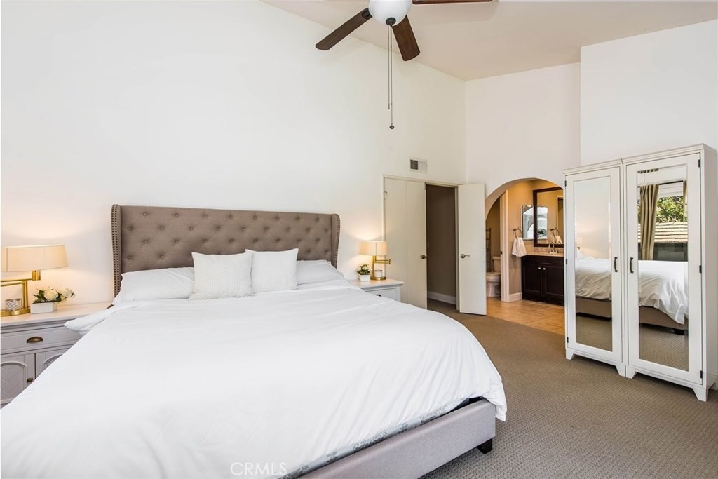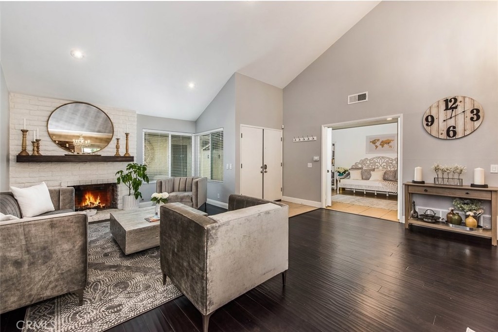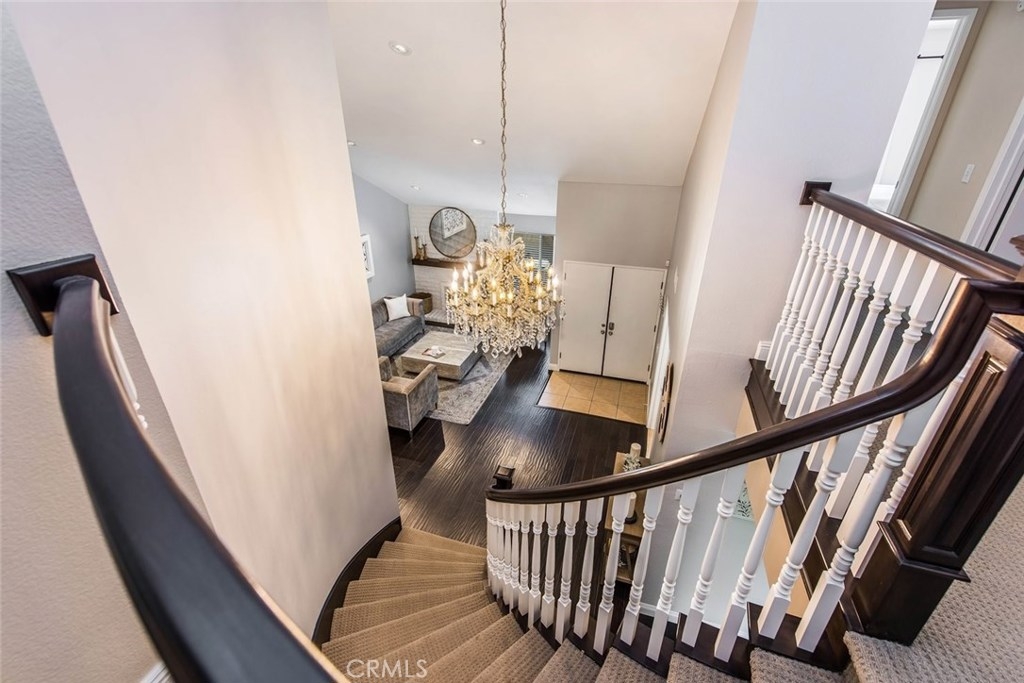 Welcome to this tastefully upgraded smart home, nestled in the highly desired Anaheim Hills Galerie Community! Located in a quiet cul-de-sac, the gated entry leads into a large private courtyard. The double door entry brings you into a light and airy living room, which features soaring ceilings, gas fireplace, and formal dining area. The spacious updated kitchen includes granite countertops, plenty of bar seating, stainless steel appliances, double oven, and walk-in pantry. The family room includes a modern plank accent wall, abundance of natural light, and direct access to an oversized patio through 2 large sliding glass doors. The main floor also includes 1 bedroom (currently used as an office) and bath, separate laundry room, and wood flooring and tile throughout. A gorgeous custom winding staircase leads you upstairs to your spacious master bedroom, which boasts vaulted ceilings, private balcony, and floor to ceiling picture windows with phenomenal views of lush greenery. The entire home has been newly upgraded with energy efficient windows, custom paint, and recessed lighting. Nest thermostat and Wi-Fi enabled lighting included, which you can control straight from your smartphone. The two-car garage features plenty of storage space and worktable. Amenities include clubhouse, BBQ area, picnic area, pool and spa. Close proximity to golf course, hiking trails, shopping centers, restaurants, and 55/91 Freeways. Don't miss the opportunity to own this stunning home!