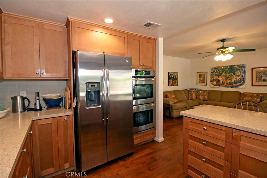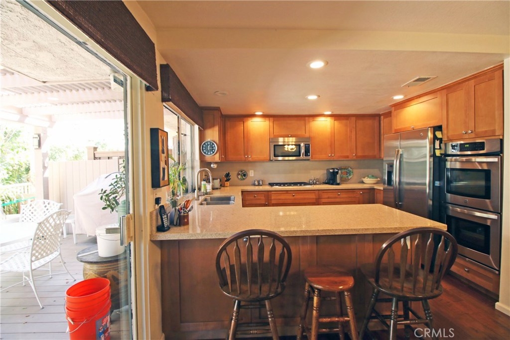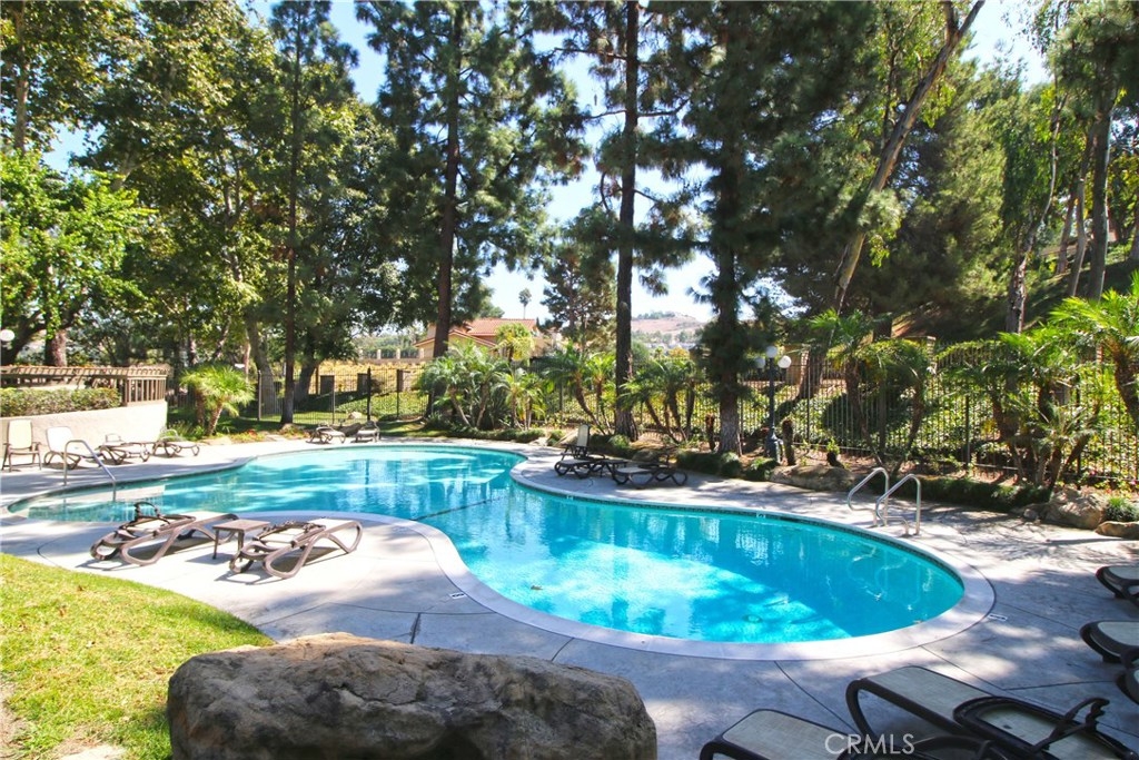 Welcome to this beautifully maintained home in the highly desired area of Anaheim Hills. Tucked away in the 'Galerie' community, this spacious Single Family Home boasts open space, 3-bedrooms with an oversized downstairs den and a spacious rear patio. The courtyard is private, inviting and offers a serene space to enjoy some much needed quiet time. As you enter the home through the large front door, you will be captivated by the space and openness the area provides. The home boasts a spacious living room with a fireplace and a large dining room. The beautifully upgraded kitchen features an open feel with an abundance of quartz countertop space with a breakfast bar and gorgeous backsplash. The home is accented by the natural light invited in by the large sliding door and oversized windows overlooking the enormous rear patio that overlooks beautiful oak trees and the Oak Canyon Reserve. Upstairs features 3 large bedrooms and 2 full baths. The master bedroom suite has a master bathroom and a large walk-in closet. The Galerie community is one of the most serene communities around with its tree lined communities and it is located close to shopping, restaurants and the freeway. Association amenities include a gated pool, jacuzzi and clubhouse.