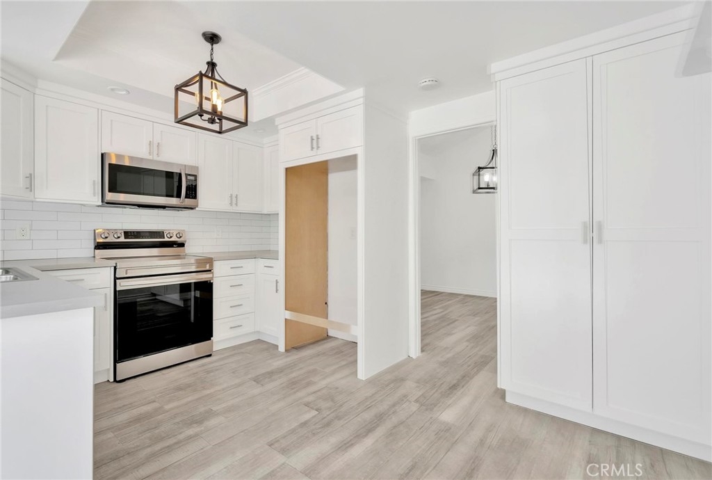Completely remodeled & upgraded single story home in Anaheim Hills. Brand new kitchen white shaker style cabinets, Quartz stone counter tops, Brand new Stainless Steel appliances. Brand new light switches & outlets, New chandelier lights, new carpet, new bathroom vanity. This home is ready to move in. Enjoy the peaceful back patio that runs the full length of the house enhanced by city lights & trees for privacy & shade. End unit which provides a large greenbelt area right outside. The master bedroom has its own private outdoor patio. The master bathroom is fabulous w/a large travertine walk-in shower. Don't miss this one of a kind opportunity. The 3rd bedroom is currently being used as a den, the closet has been removed.