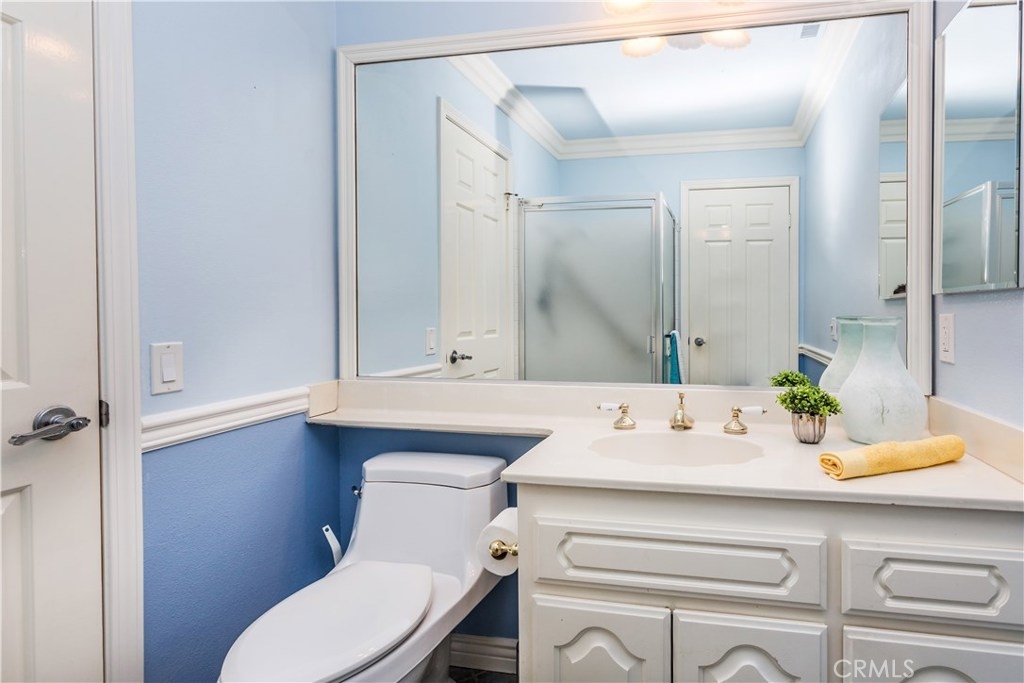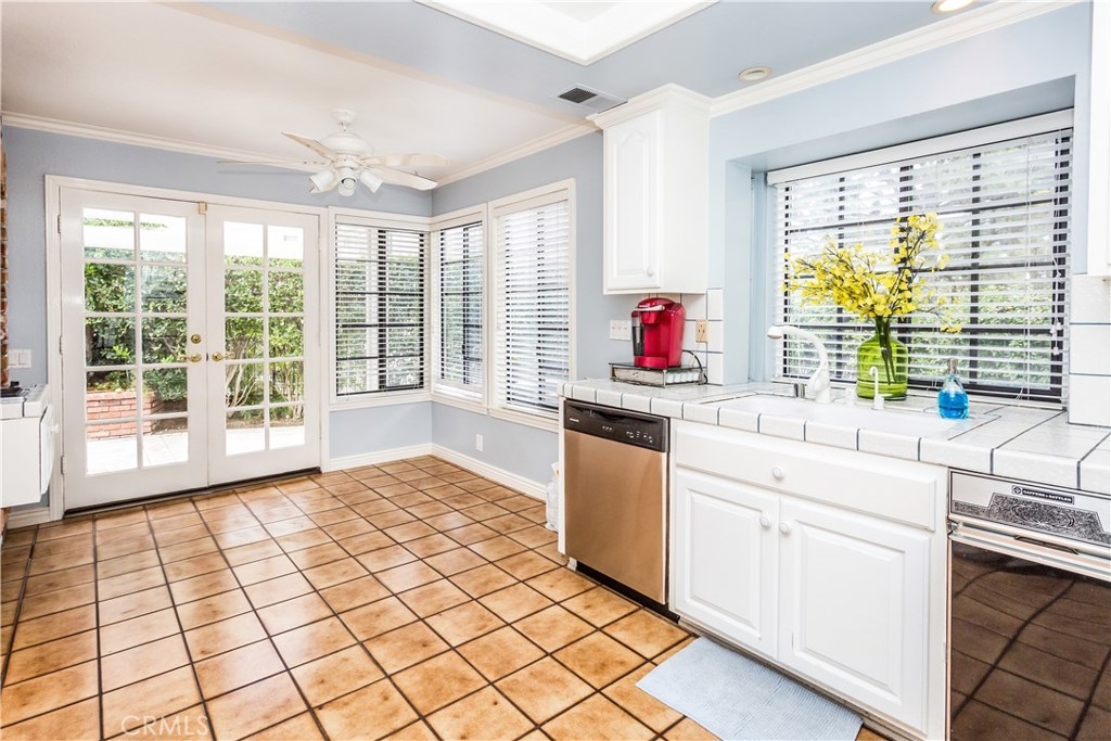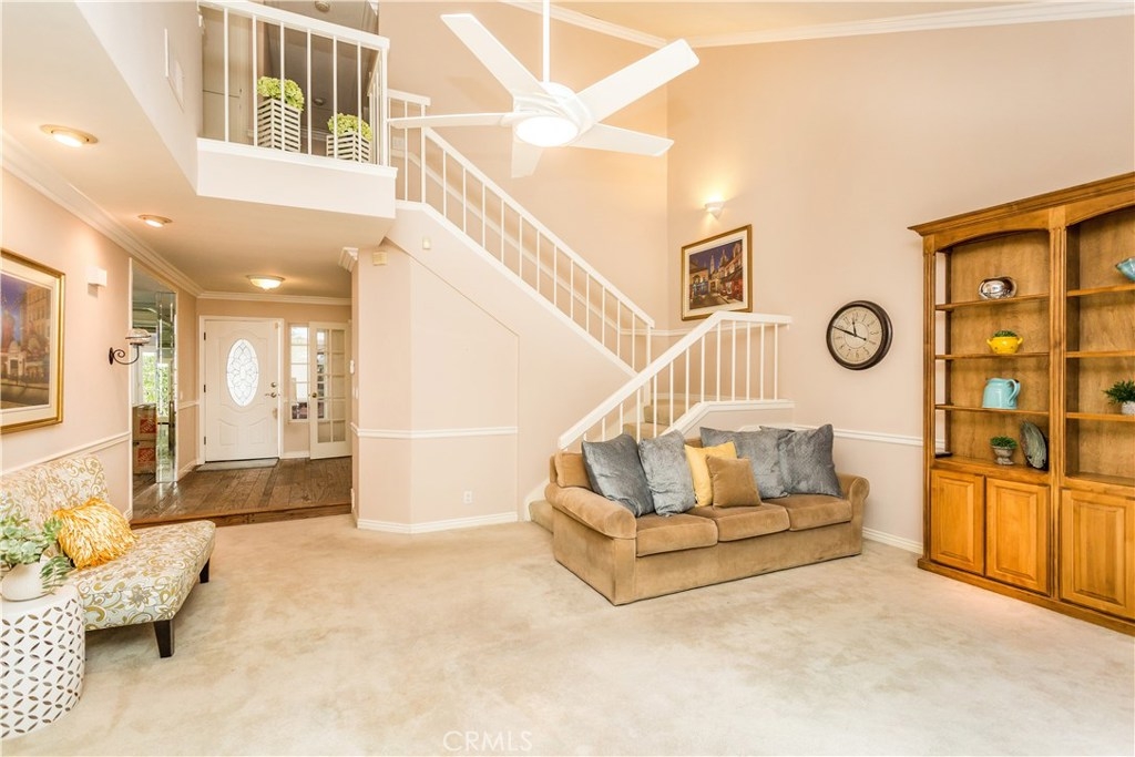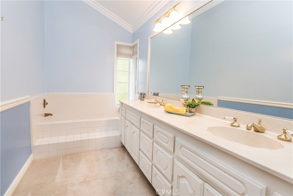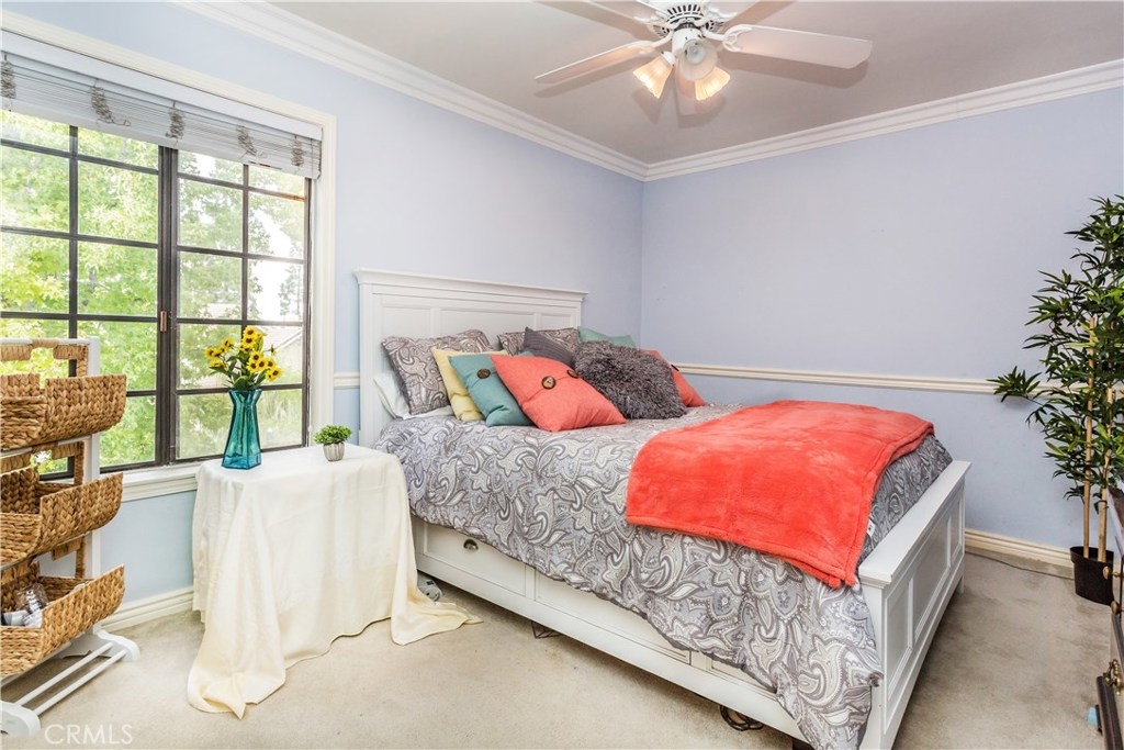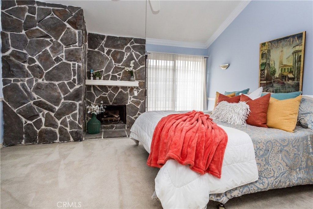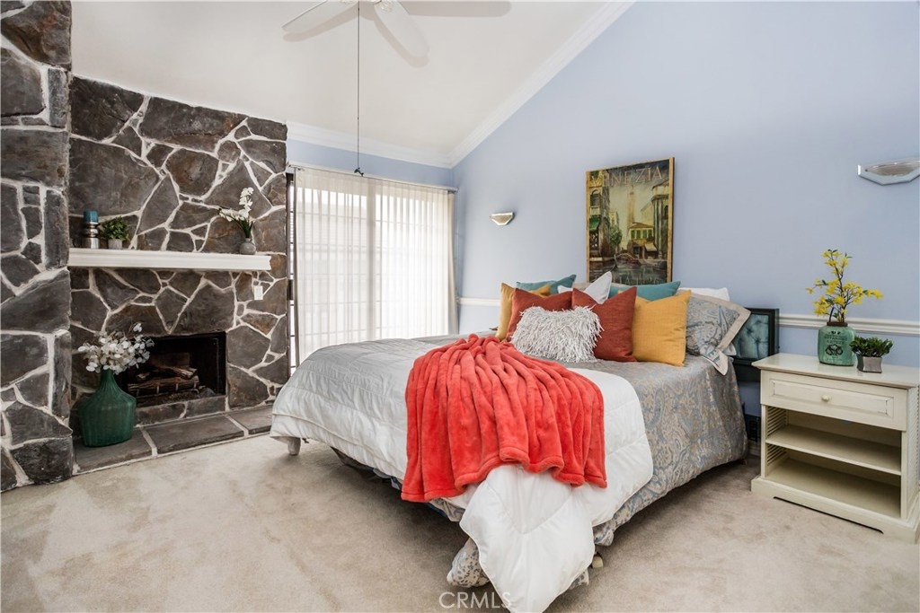 This charming Anaheim Hills home, located on a spacious corner lot offers four generously sized bedrooms and three bathrooms. One bedroom located downstairs is currently used as an office. A stylish mix of wood flooring, custom tile, and carpet throughout. The cozy family room is complete with brick fireplace and french doors which lead to the backyard. The gourmet kitchen offers plenty of counter space, double ovens, beautiful french doors and windows throughout letting in plenty of natural light. Master bedroom includes a designer stone fireplace, walk out balcony which over looks the backyard and large walk in closet complete with built in shelving. The private backyard is a wonderful place to unwind. Plenty of patio and lawn space surrounded by brick and flagstone planters full of many varieties of lush green plants. This family friendly community offers a pool and spa.
