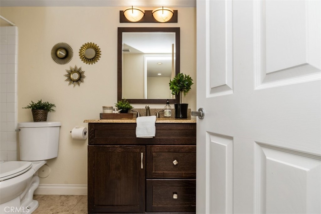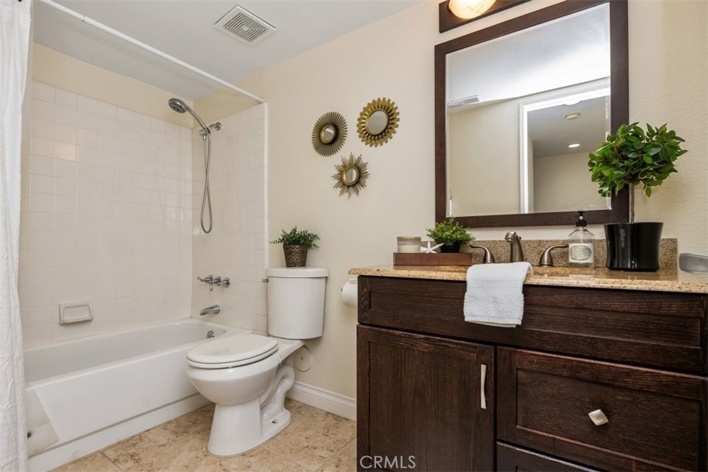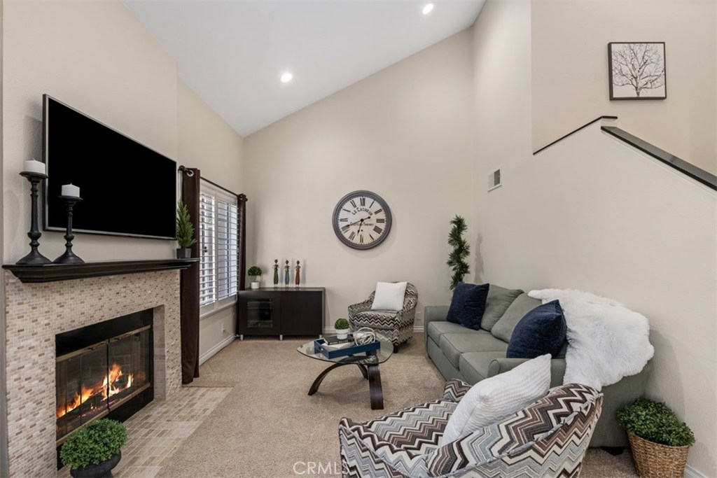 THIS IS THE ONE TO SEE! Welcome to the beautiful Hills of Anaheim in the Horizon Community. This two story, single family home boasts three spacious bedrooms, vaulted ceilings and has a magnificent gas fireplace. The MAIN LEVEL bedroom is currently configured as an office but can be easily converted into a bedroom. A full bathroom is also located on the main level. The remodeled kitchen has granite countertops, a breakfast nook and a gas range that makes cooking a breeze. Upstairs, you will enjoy two additional bedrooms with en suite bathrooms. The master bedroom has expansive vaulted ceilings and a walk-in closet. Plantation shutters and new recessed lighting complement every room of the home. The two car garage and additional parking provides ample room for guests. The Horizon community offers a pool and spa and is a short distance to beautiful nature trails with epic views. Don't forget to check out the Matterport Virtual Tour! Don't miss your opportunity to move into this great community! This is a Must See!!!