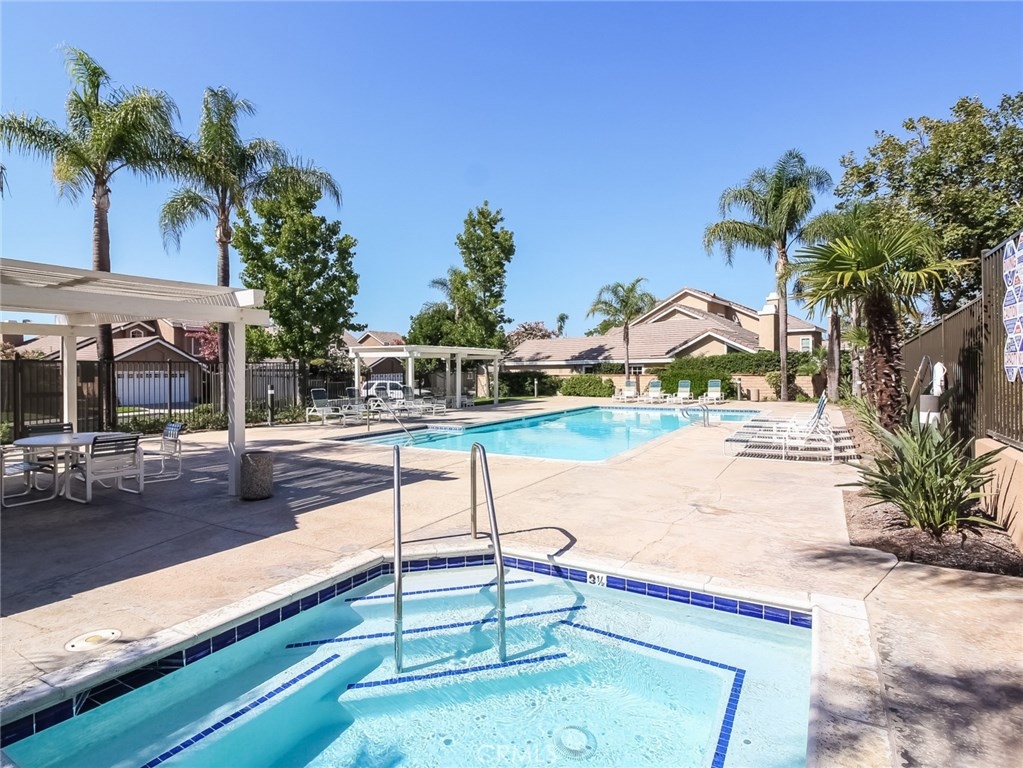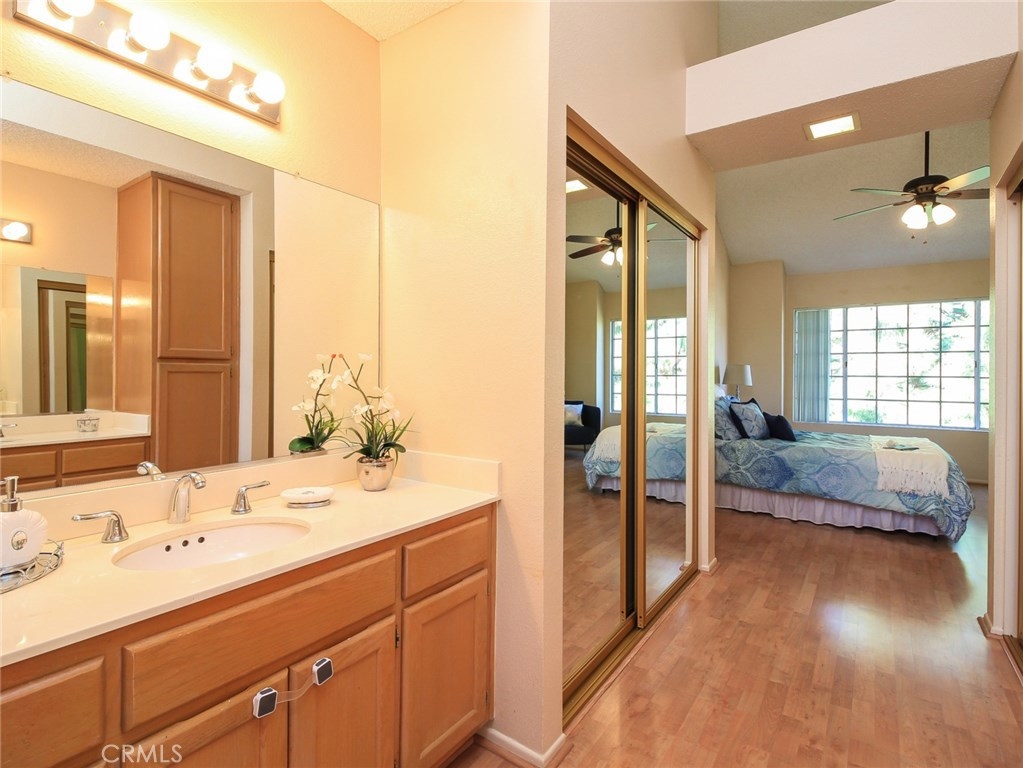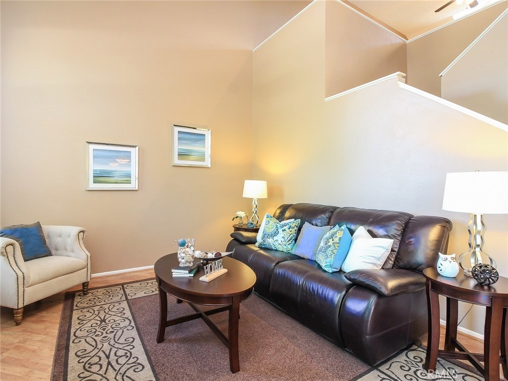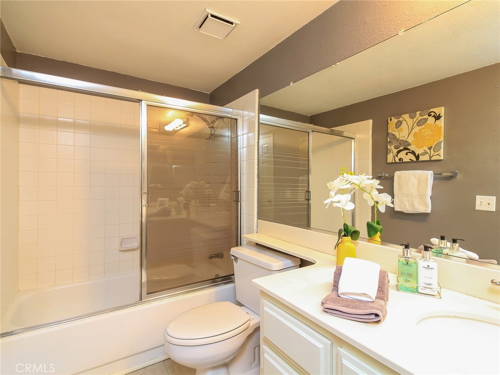 This inviting Horizons hills home is nestled among the pines. Open Floor Plan with lots of natural light and recessed lighting. Features 3 bedrooms including one spacious loft and one bedroom and bath downstairs. Vaulted ceilings in living room and master bedroom, cozy fireplace, sunny breakfast nook, dining room, large master bedroom en-suite with two mirrored wardrobes. Ceiling fans in breakfast nook, loft/bedroom and master bedroom. Private patio with partial view of mountains & city lights. Offers amazing walking panoramic views of Anaheim Hills Golf Course, city lights and mountains. Enjoy the cool night time breezes. This is your chance to own a lovely hilltop home!