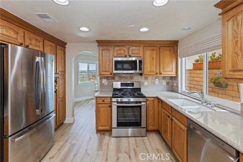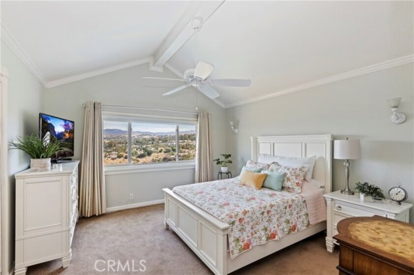 The minute you arrive at Kings Meadow you will notice that there are no cars parked on the street. Lush front grass front yard leads to amazing remodeled show home. Newer flooring, paint, granite counter tops, shutters, crown moulding, stainless steel appliances and amazing new master bathroom. The views are endless from living room, kitchen, back patio and master suite. Looking east you'll enjoy sunrise over the equestrian trail, stables and Anaheim Hills golf course.