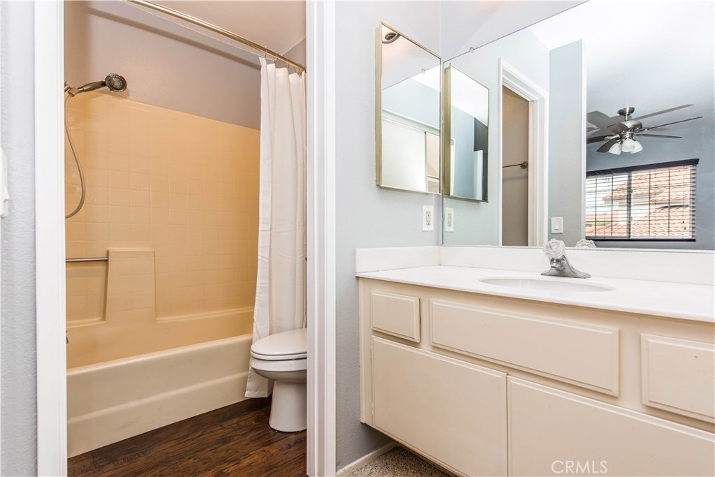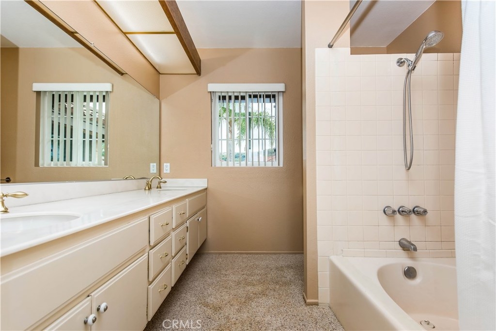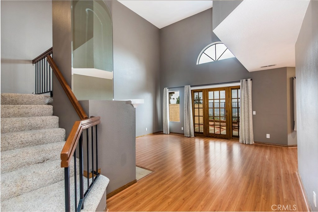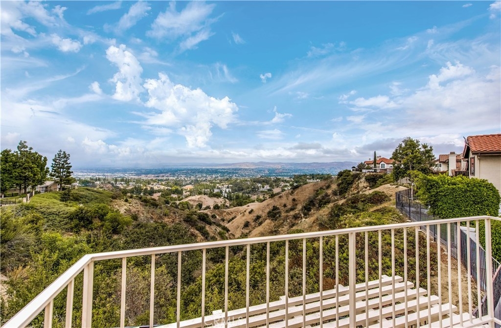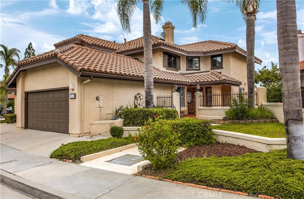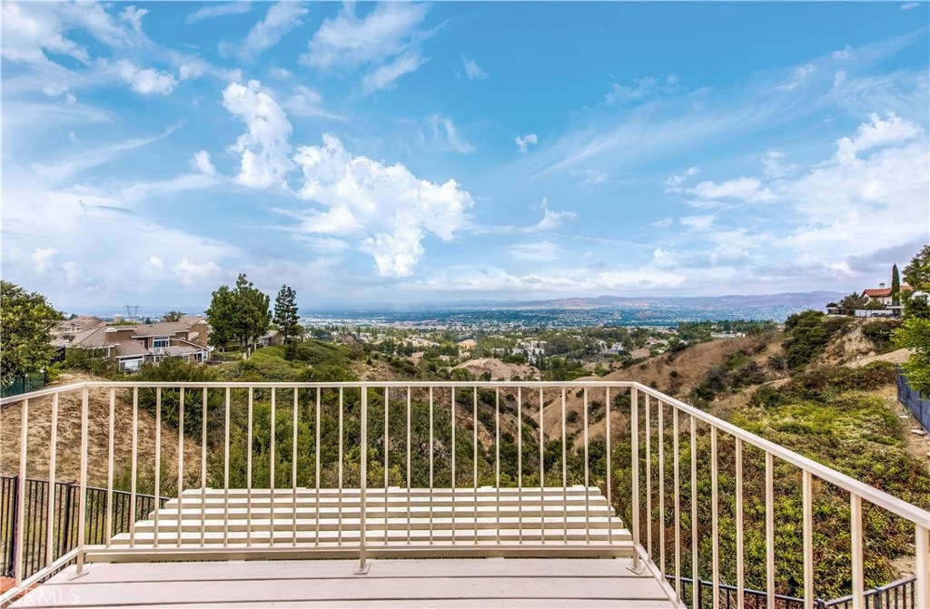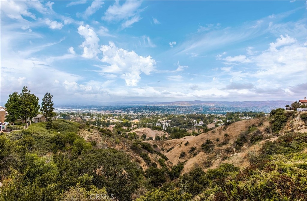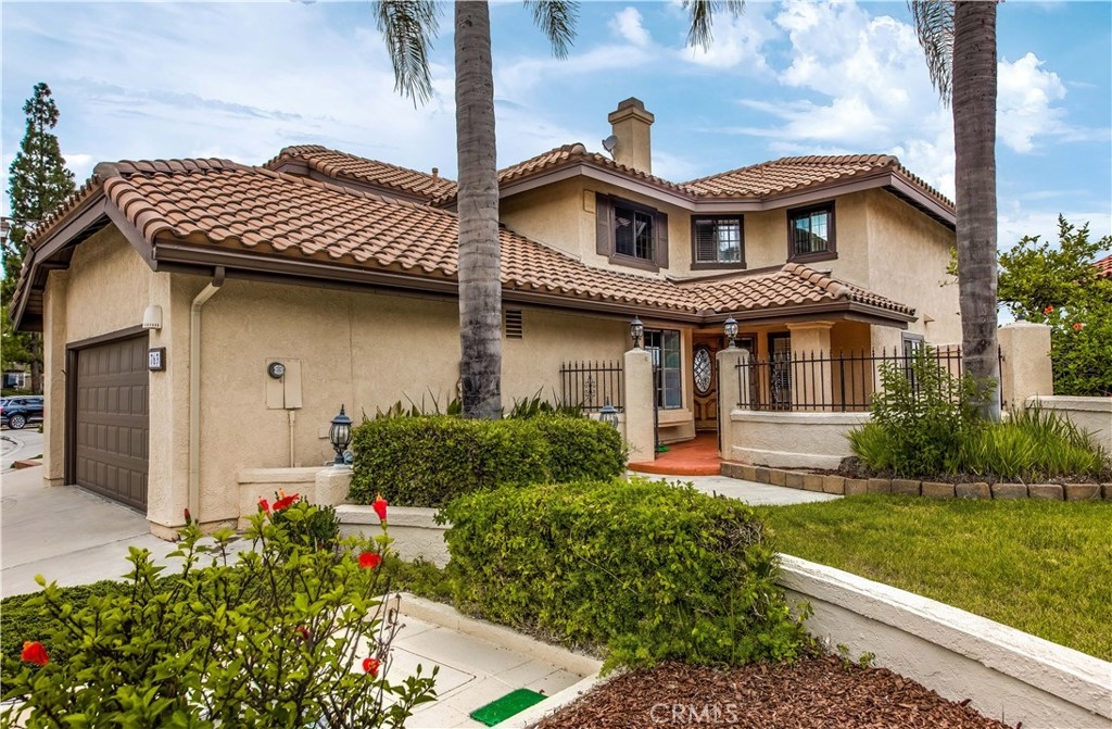 Welcome to the prestigious and quiet community of King's Meadow in the Beautiful part of Anaheim Hills. This bright and open floor plan home offers three bedrooms and three bathrooms including main floor bed & bath. Enter the front door and the high ceiling shows off a bright living room with fireplace and french doors leading into the backyard. Spacious kitchen with Corian counter tops. Formal dining with wall mirrors and windows to sunset city views. Downstairs bedroom and bathroom makes it comfortable for anyone who does not want to climb the stairs. Stairway leads to two large bedrooms each with their own bath. Master bedroom with high ceiling and a big sliding door invites you to the balcony to sit and enjoy the wonderful views of the hills and the mountains, sunsets and the city lights views. This location is close to the shopping centers and schools, also close to the Golf Course and Anaheim Hills water reservoir which is a beautiful place to walk around.