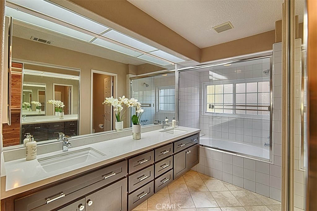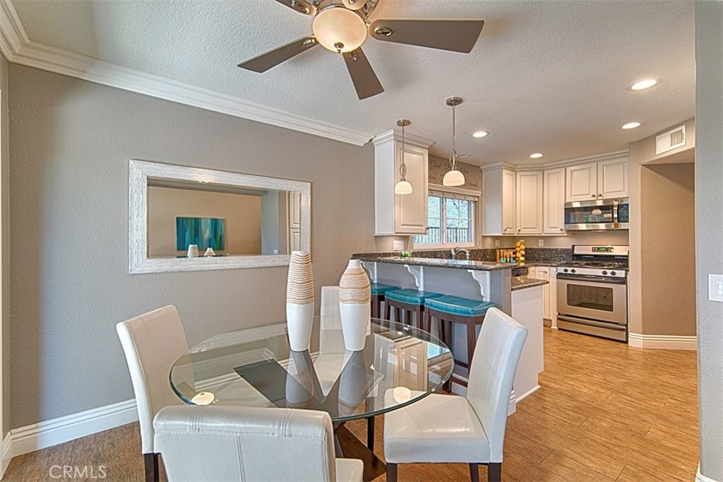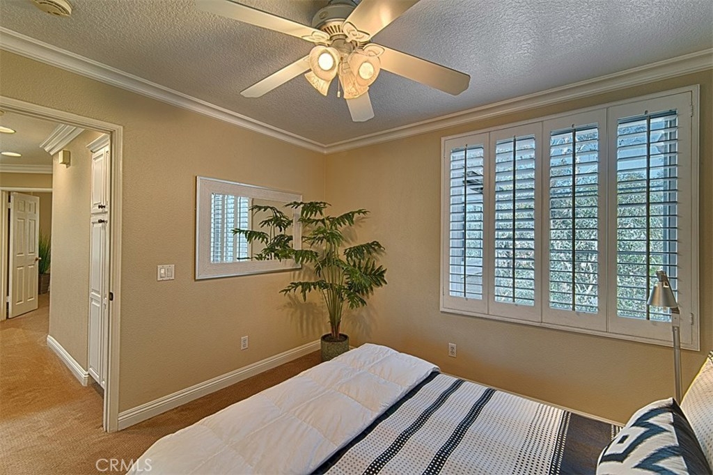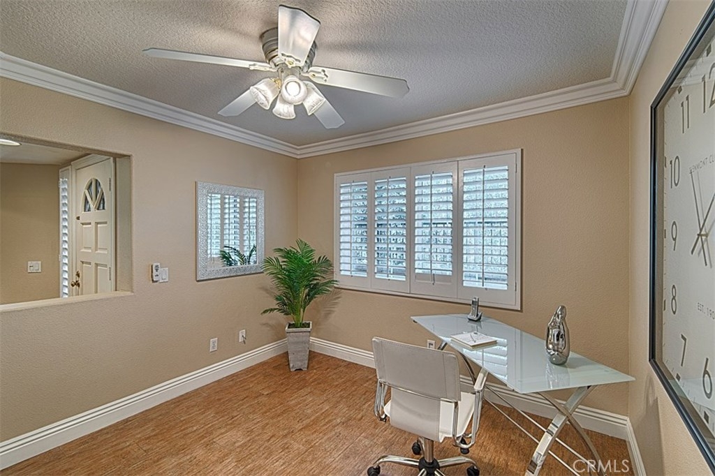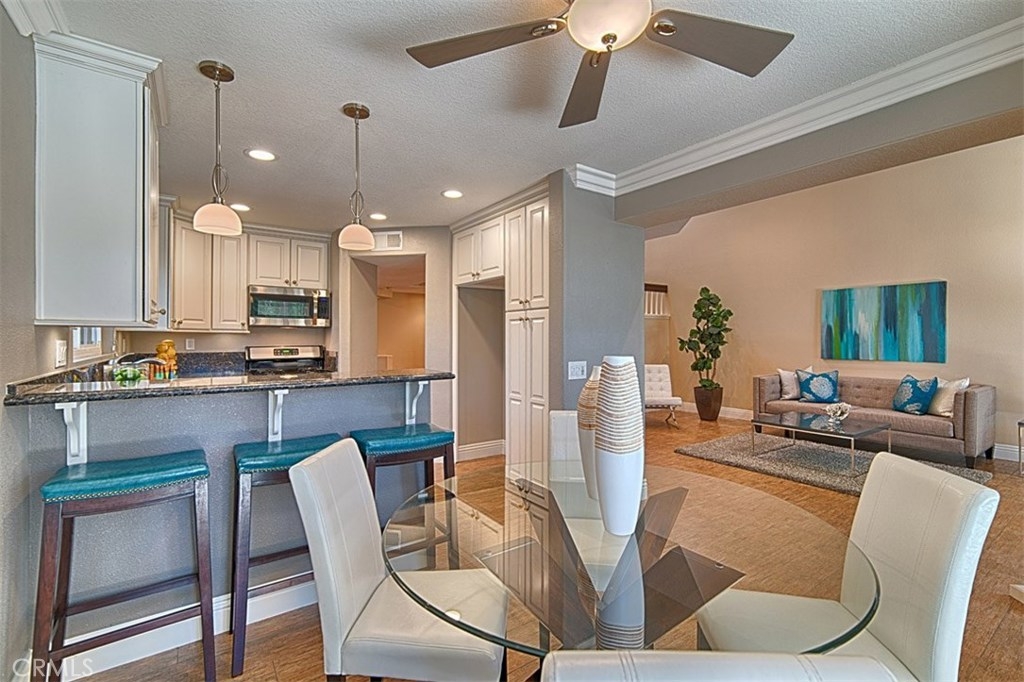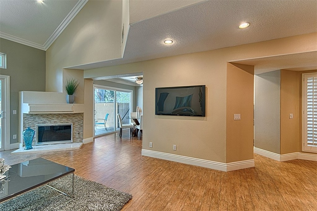 This highly sought-after end unit is the largest in the well-manicured Laurelwood community, w/no one behind you. Walk into an open concept floor plan w/two story ceilings in the light & bright living room w/recessed lighting, large white crown molding & baseboards, a gorgeous gas starter fireplace w/hearth & mantle which leads to the formal dining room. Both the dining & living rooms have large glass sliders to the relaxing, private backyard covered patio w/views of mature trees. Beautifully remodeled kitchen has lots of white, soft close cabinets & drawers, rich granite counter tops, stainless steel appliances, recessed lighting, a generous counter bar for seating, & a window over the sink. The downstairs bedroom is currently being used as an office & has a full wall of built in cabinets. The downstairs full bath has white cabinetry & granite countertop. The roomy master suite has a double door entrance, lush carpet, a huge walk in closet w/mirrored doors, & is attached to the spacious, light & bright bath w/rich dark cabinets & dual sinks, white quartz countertop & a linen closet. The second upstairs bedroom has a full-size bath & mirrored closet doors. Plantation shutters, lighted ceiling fans, large crown molding & baseboards; laundry room w/cabinets, an attached two car garage w/epoxy flooring & loads of storage round out this great property. The HOA has 2 pools & spas and generous amounts of guest parking. Private Showings Available.