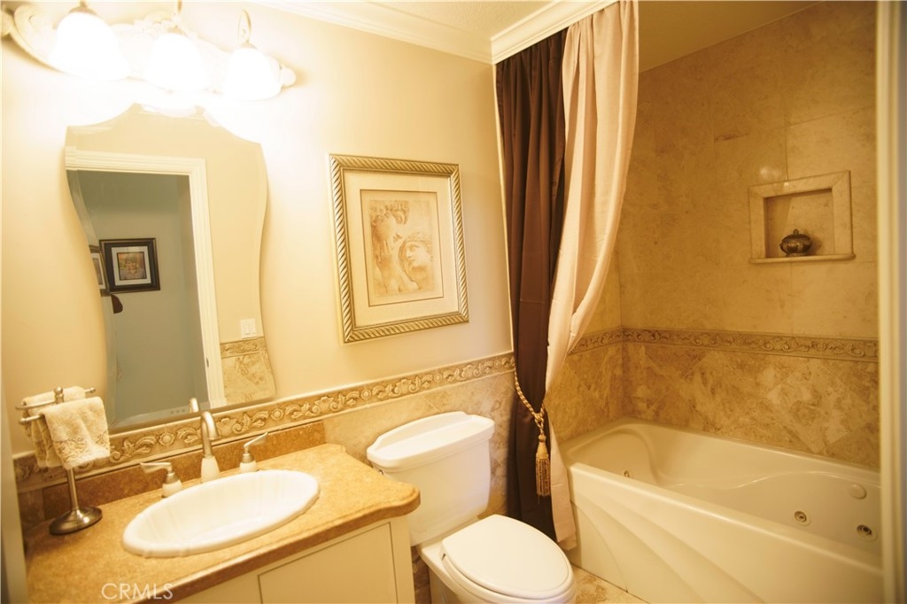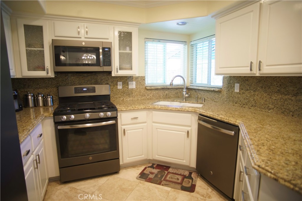 A Turn Key Laurelwood community unit in beautiful Anaheim Hills with newer upgrades throughout - bathroom, kitchen, flooring, and new paint. Clean 2 bed, 2 bath - Ready to move in and occupy!! As you enter, the foyer leads you to the living room. It has vaulted ceilings with elegant crown moldings throughout. All through the home are 5 inch baseboards elegantly visible throughout the home. The all new Simonton windows with its beautiful window shutters bring in abundant lighting giving the area a bright and airy feeling. Recessed lighting are strategically placed throughout the home. From the living room, you have direct access to your private patio. The kitchen space boasts a beautiful granite and marble counter top with functional dishwasher and gas range. There are circular lighting units placed underneath the cabinets to showcase the kitchen cabinets. It also has connection for water supply hook-ups for the fridge. The dining area is conveniently close to the kitchen. Soft and elegant carpeting greets you through the hallway and bedrooms. The master bedroom has its own his and her closets with dual bathroom sinks. The 2 car garage has epoxy speckled flooring with plenty of storage space. It is also directly below the living space with secured access to go upstairs. The water heater is strapped and located in the corner of the garage. The Laurelwood community have 2 beautiful private swimming pools, spas, and amenities only for association members only. Conveniently located to major Shopping centers, restaurants, ice cream parlors, and a park close by to the community. Furthermore, City of Anaheim Hills have excellent city programs, and community events. Importantly, the city is noted for prestigious high ranking schools within their school district!