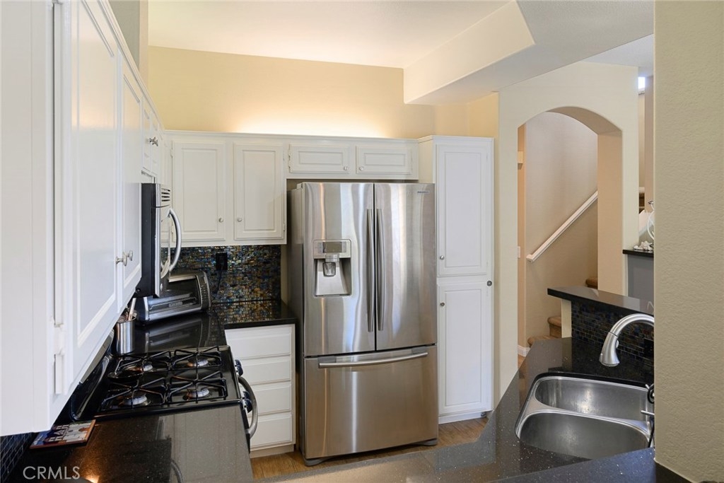 This is a totally upgraded, stunning home in Anaheim Hills with a perfect location! End unit sits next to an open grass greenbelt perfect for playtime & dog walking, located at the end of the complex on a cul-de-sac providing the ultimate in peace & quiet. This popular floor plan offers dual masters w/en suite bathrooms. This very bright & light home has been upgraded throughout w/beautiful wood like tile flooring throughout downstairs & upstairs guest room. Upgraded kitchen w/SS Appliances, mosaic glass backsplash & Black Galaxy granite countertops, newer lighting, tile fireplace surround, plantation shutters, ceiling fans & Ring Door Bell. Enjoy relaxing on your own private balcony off the master suite. The master bathroom is beautiful w/a walk-in travertine shower w/glass door, newer shower head w/hand held option, granite counter tops on a large dual sink vanity, plus walk-closet w/built-ins. Second bath has a granite counter top vanity, shower in tub/combo w/stunning views! Monaco is a highly sought after community w/plenty of amenities & low HOA dues: assoc pool, 3 spas, BBQ's, Clubhouse, Gym/workout room & tennis courts! Walking distance to Canyon Rim Elementary, Walnut Canyon Reservoir, close to shopping & restaurants. Virtual Tour Link: https://my.matterport.com/show/?m=LJiHc7yURaj&mls=1