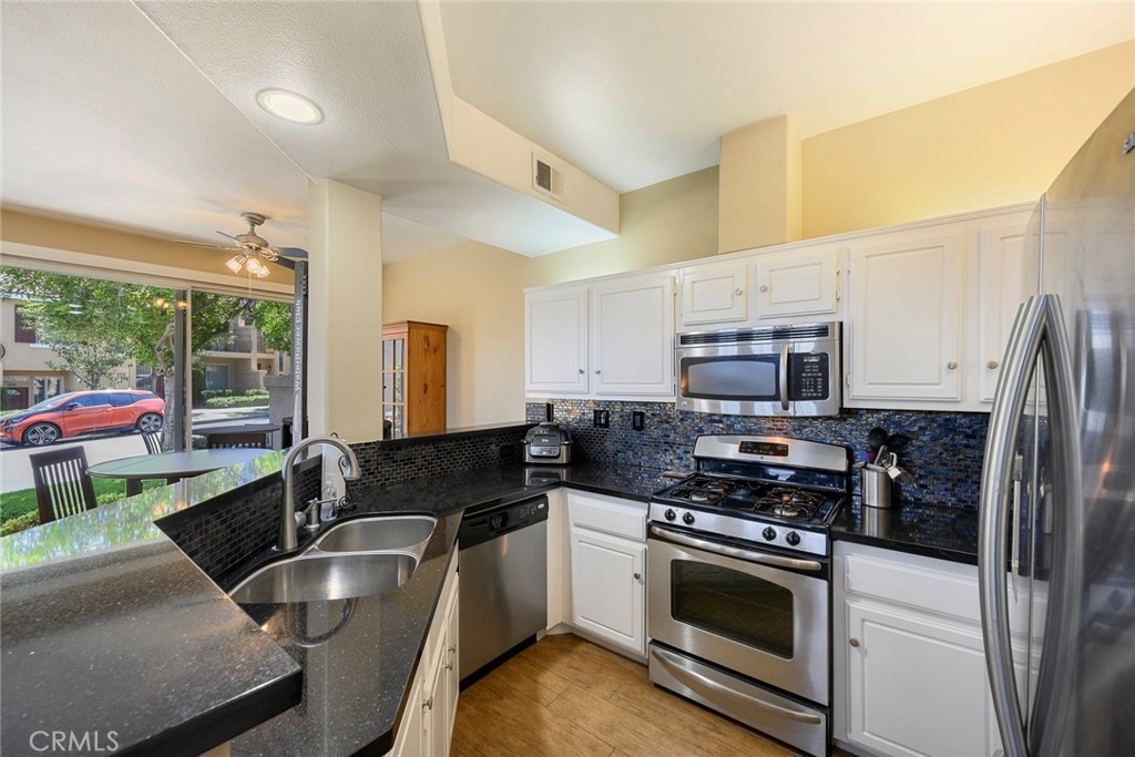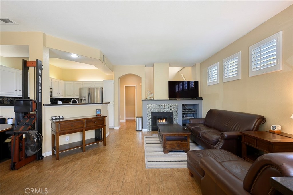 This is a totally upgraded, stunning home in Anaheim Hills with a perfect location! End unit sits next to an open grass greenbelt perfect for playtime & dog walking, located at the end of the complex on a cul-de-sac providing the ultimate in peace & quiet. This popular floor plan offers dual masters w/en suite bathrooms. This very bright & light home has been upgraded throughout w/beautiful wood like tile flooring throughout downstairs & upstairs guest room. Upgraded kitchen w/SS Appliances, mosaic glass backsplash & Black Galaxy granite countertops, newer lighting, tile fireplace surround, plantation shutters, ceiling fans & Ring Door Bell. Enjoy relaxing on your own private balcony off the master suite. The master bathroom is beautiful w/a walk-in travertine shower w/glass door, newer shower head w/hand held option, granite counter tops on a large dual sink vanity, plus walk-closet w/built-ins. Second bath has a granite counter top vanity, shower in tub/combo w/stunning views! Monaco is a highly sought after community w/plenty of amenities & low HOA dues: assoc pool, 3 spas, BBQ's, Clubhouse, Gym/workout room & tennis courts! Walking distance to Canyon Rim Elementary, Walnut Canyon Reservoir, close to shopping & restaurants. Virtual Tour Link: https://my.matterport.com/show/?m=LJiHc7yURaj&mls=1