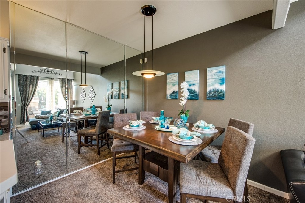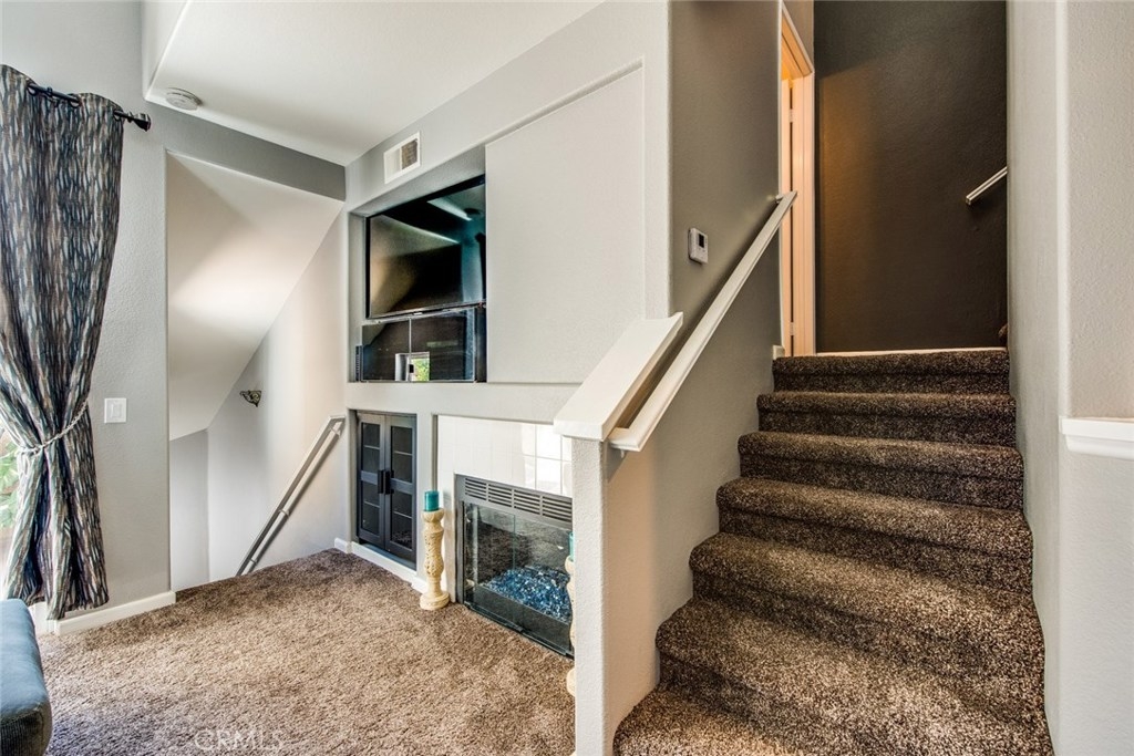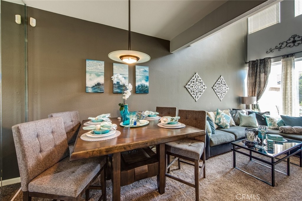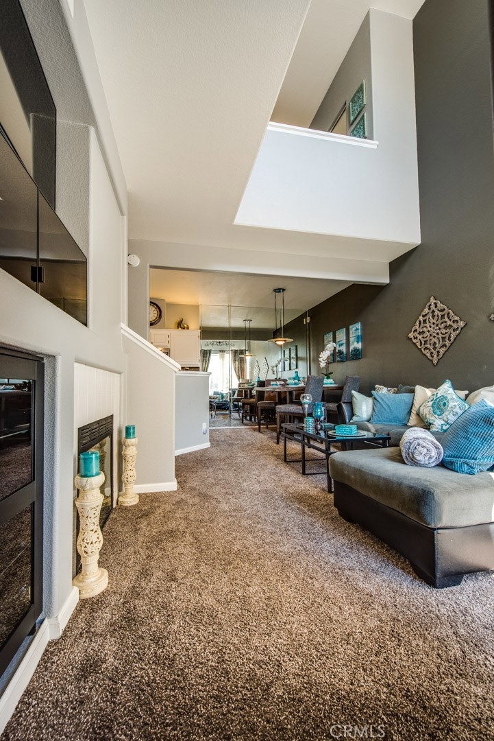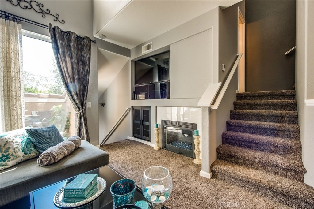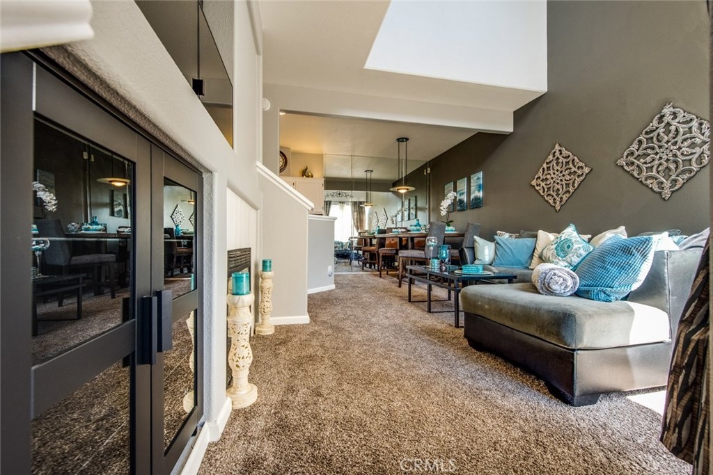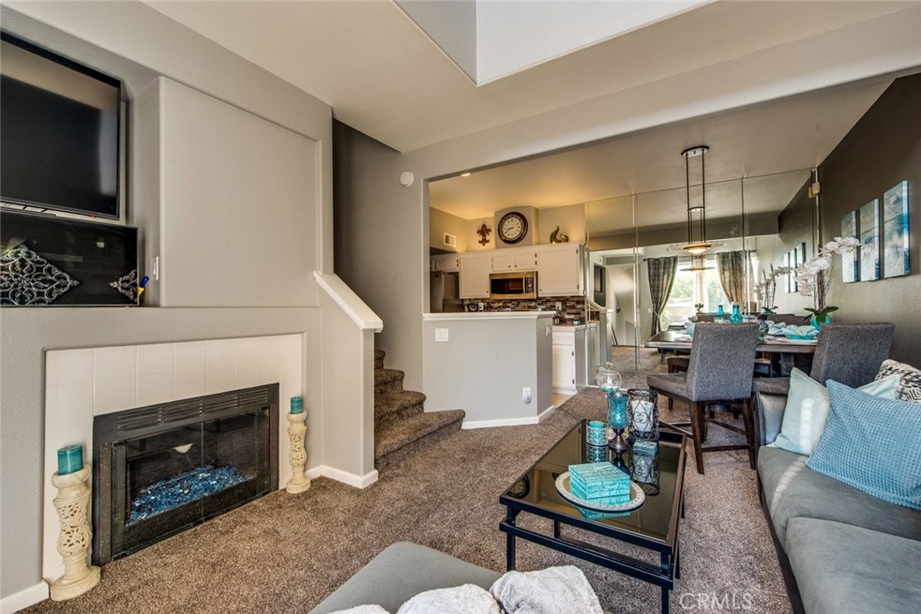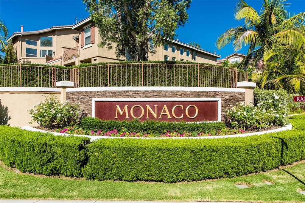This home is a beautiful charmer! Located in the highly desired "Monaco" community. This 1 bedroom, 1 bath Townhouse has no one above or below you and high ceiling living room with fireplace and a area to fit a large flat screen TV. Open kitchen allows fro easy access to the dining area with wall to wall mirror. Kitchen has stainless steal appliances, Microwave, Dishwasher, Gas Stove and ceramic white tiles. Large bedroom with wall to wall mirror wardrobe and built in closet organizer. Large private Juliet Balcony located off living room is perfect for entertaining and BBQ. Attached direct access 2 car tandem garage, has a large private inside laundry area for full size washer & dryer! Recent updates include new carpet thoughout, newer paint, back splash in kitchen and cabinet refresh! The Monaco community amenities include: Tennis Courts, Resort style pool area, 3 spas, BBQs, Weight/Workout Room, plus a convenient club house for your special events. Low HOA, only $195/month. Just minutes to shopping & entertainment and easy access to 91 and toll roads!