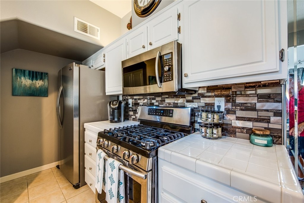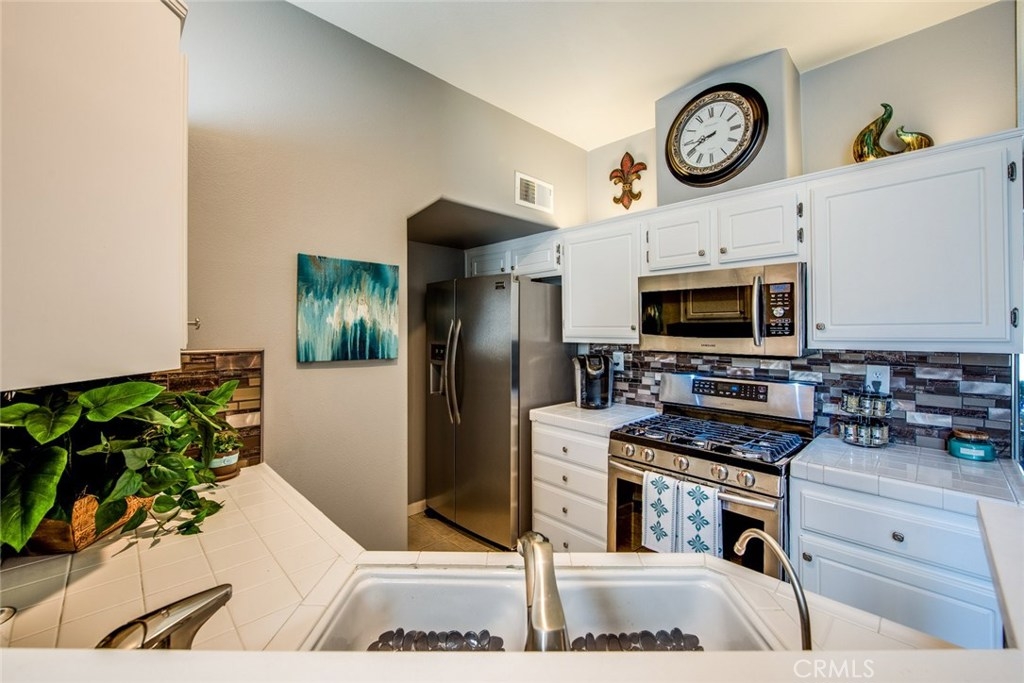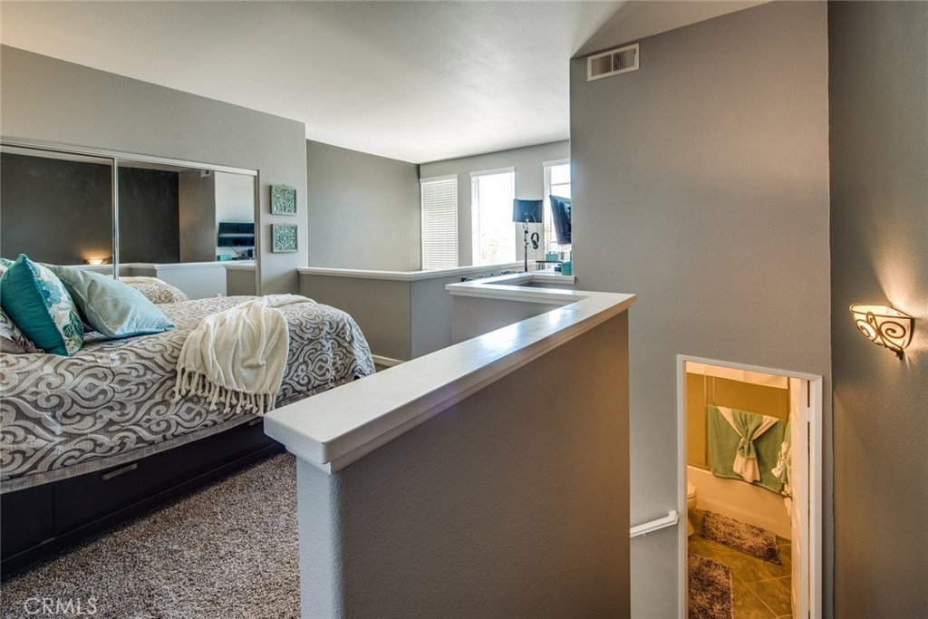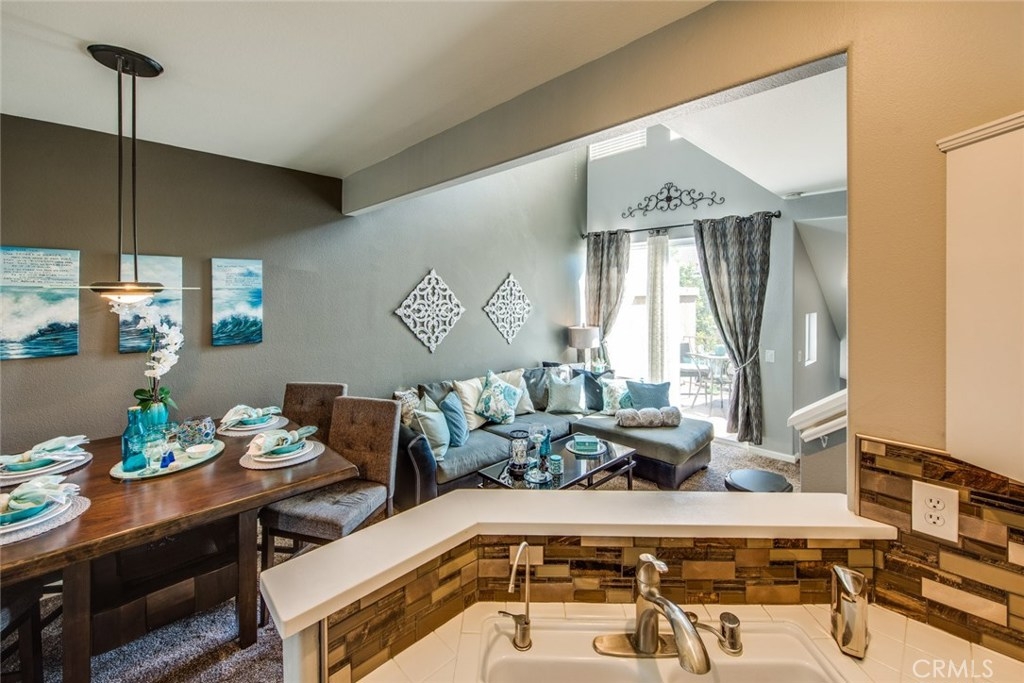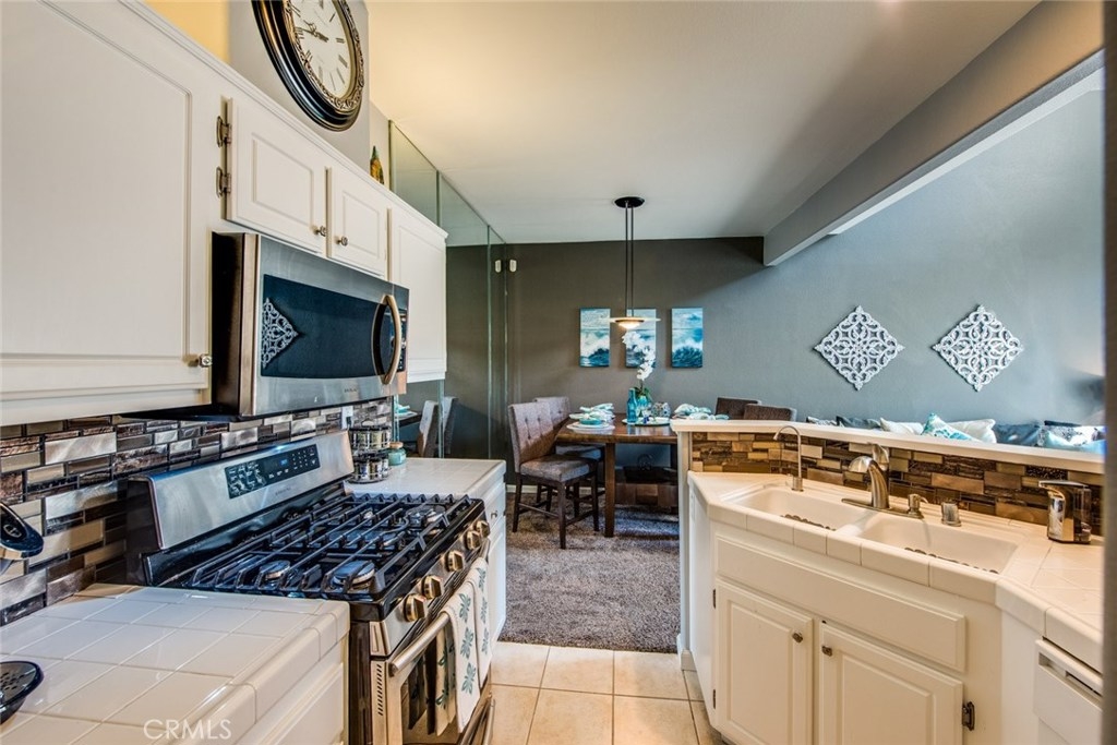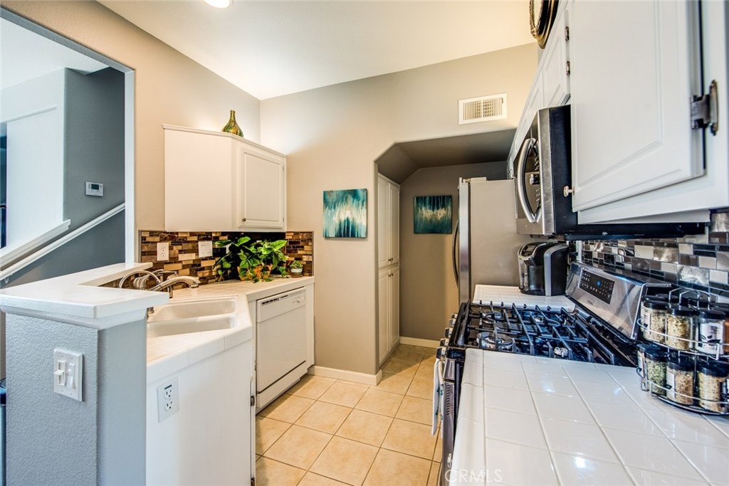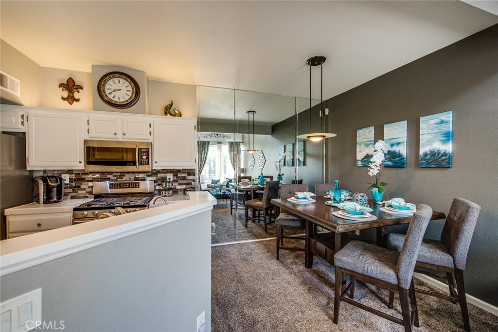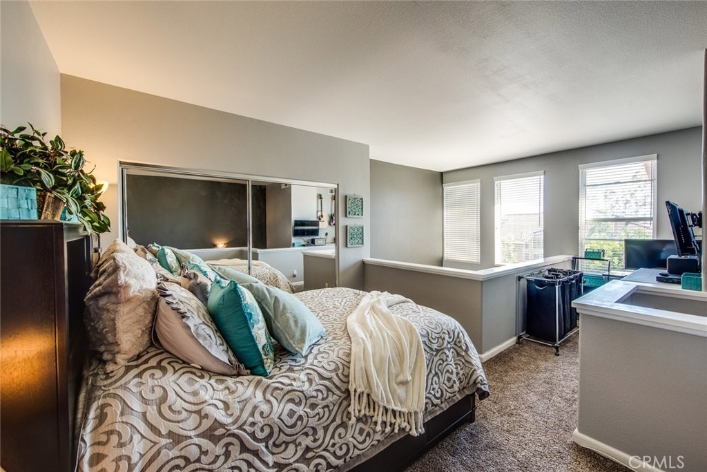 This home is a beautiful charmer! Located in the highly desired "Monaco" community. This 1 bedroom, 1 bath Townhouse has no one above or below you and high ceiling living room with fireplace and a area to fit a large flat screen TV. Open kitchen allows fro easy access to the dining area with wall to wall mirror. Kitchen has stainless steal appliances, Microwave, Dishwasher, Gas Stove and ceramic white tiles. Large bedroom with wall to wall mirror wardrobe and built in closet organizer. Large private Juliet Balcony located off living room is perfect for entertaining and BBQ. Attached direct access 2 car tandem garage, has a large private inside laundry area for full size washer & dryer! Recent updates include new carpet thoughout, newer paint, back splash in kitchen and cabinet refresh! The Monaco community amenities include: Tennis Courts, Resort style pool area, 3 spas, BBQs, Weight/Workout Room, plus a convenient club house for your special events. Low HOA, only $195/month. Just minutes to shopping & entertainment and easy access to 91 and toll roads!