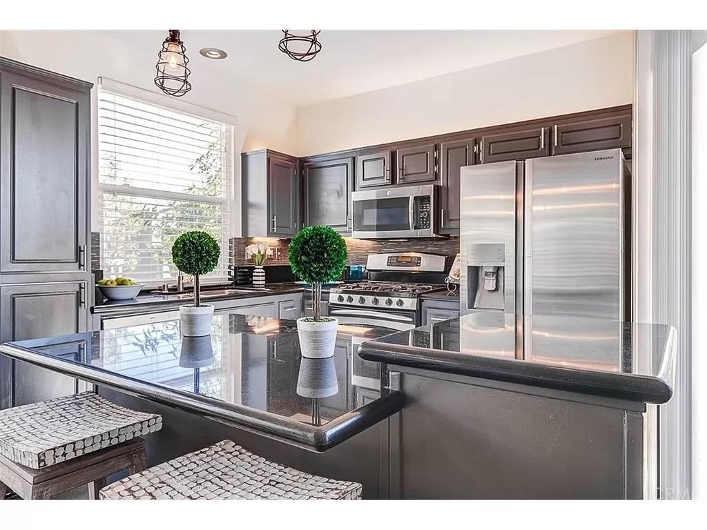 Enjoy resort style living in the picturesque Monaco community nestled atop breathtaking Anaheim Hills! Spend a relaxing day soaking up the sun by the sprawling community pool or enjoy peaceful walks through the serene, tree-lined neighborhood. The incredible amenities include a pool, three spas, a clubhouse, tennis courts and a gym! This 2-bedroom end-unit offers a prime location within the community as its just moments away from the pool and also offers a 2-car garage with direct access to the home. The open concept floor plan is highly desirable as the bright and airy living room opens into the kitchen, including a formal dining space. Numerous upgrades adorn the home, including granite counters, new flooring throughout the home, a large center island, LED lighting above and below kitchen cabinets, custom pendant lighting, a gas fireplace with a custom surround, new windows and blinds and a one year old A/C system!. The spacious Newly Remodeled master bedroom is attached to the full master bath, equipped with dual sinks and a spacious walk-in custom closet. Other benefits include washer/dryer hookup, built in storage in the spacious garage, easy freeway access and excellent nearby schools. This gorgeous condo is a perfect fit for a small family to enjoy resort style living in a quiet and meticulous maintained community.