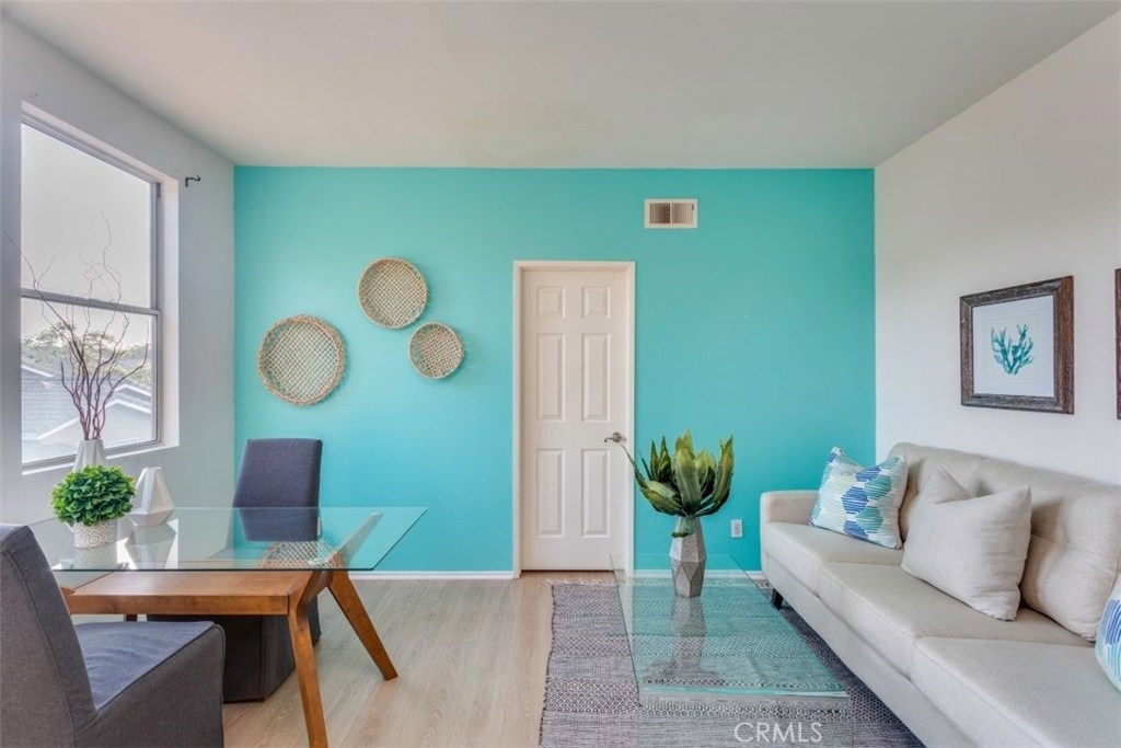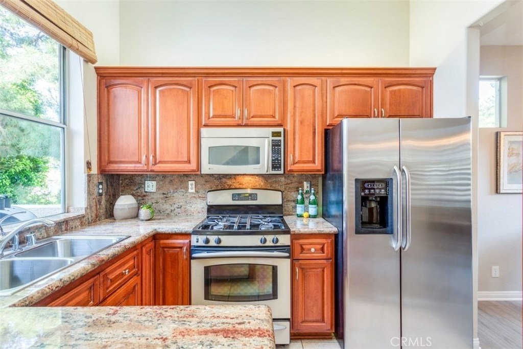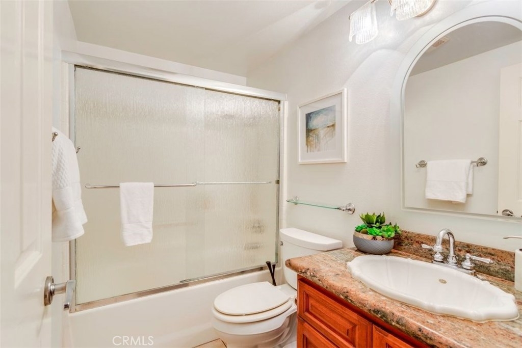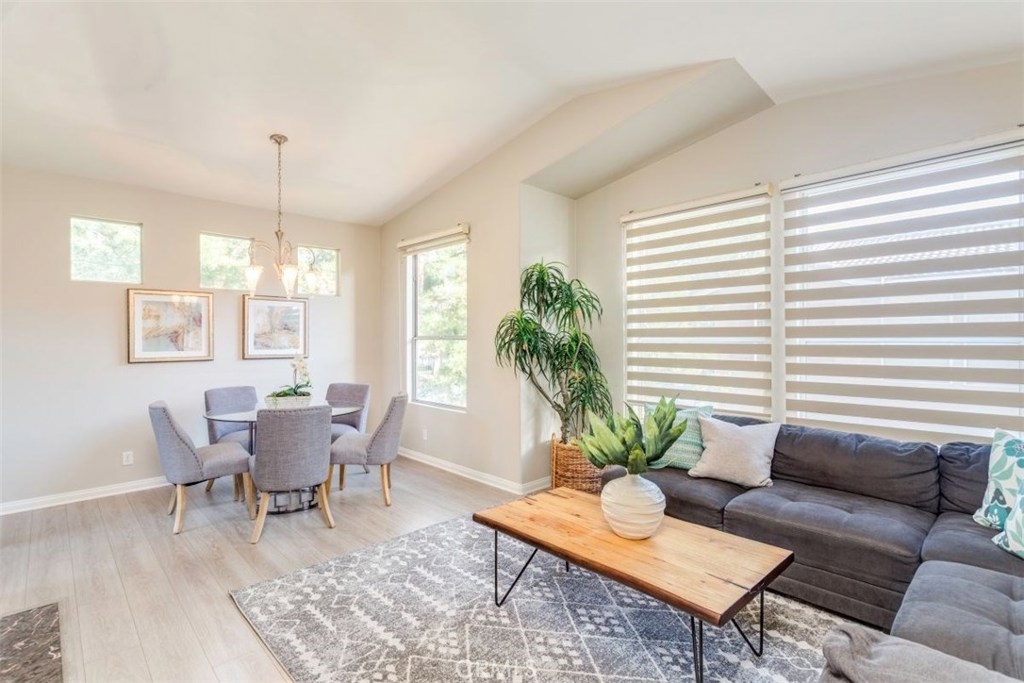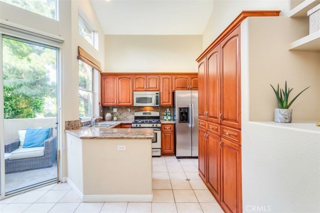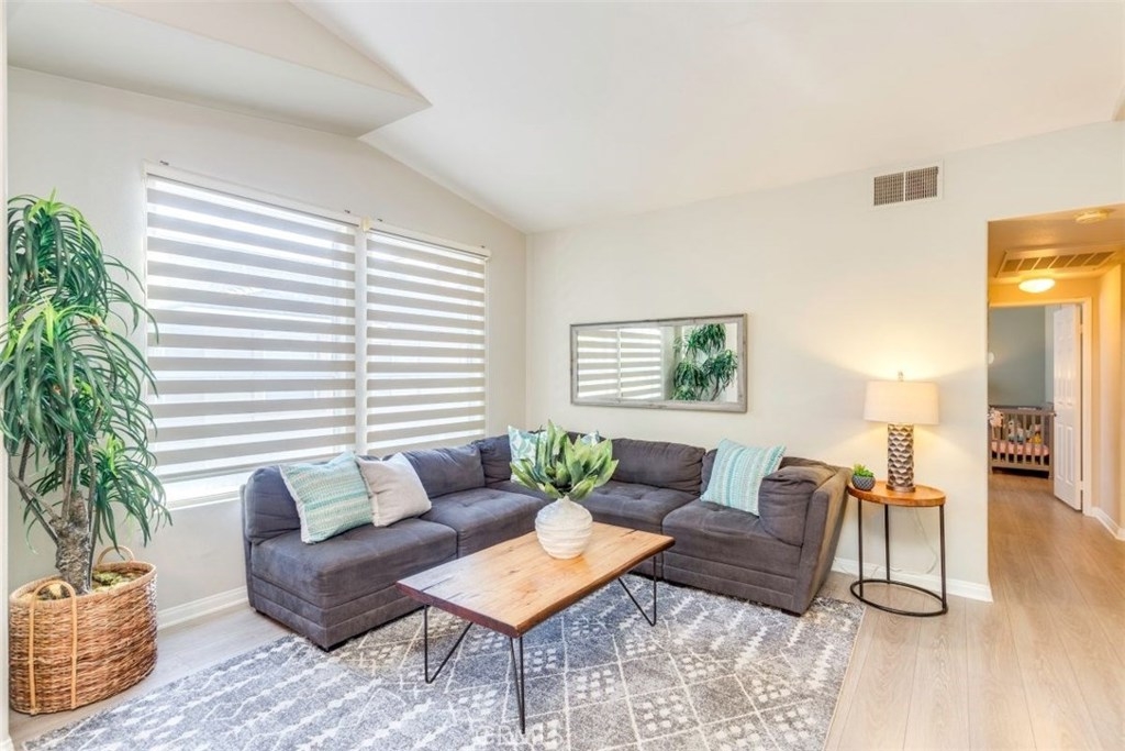 Highly desirable community of Monaco Condominiums!! Beautiful 3 bedroom 2 bath home offers high vaulted ceilings allowing for tons of natural lighting throughout the day as well as a peaceful end unit location. Highly upgraded kitchen with cherry wood cabinetry, granite counter tops and stainless steel appliances. Beautiful laminate flooring for easy care and maintenance . The 3rd bedroom is a upstairs loft currently being used as a den/office that could be easily plumbed and ready for a 3rd bathroom and could be converted into a full 3rd bedroom suite. Perfect for those out of town guest. Also included is direct access 2 car garage. This community is in one of the best school districts in the area. The resort-style living offers some of the best amenities with pool, spa and tennis courts!! Close by to most major freeways, toll roads and shopping. Don't miss out on the opportunity to own this Beautiful home.