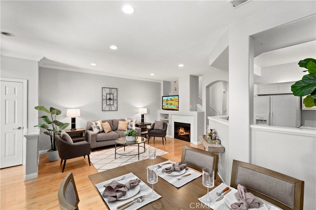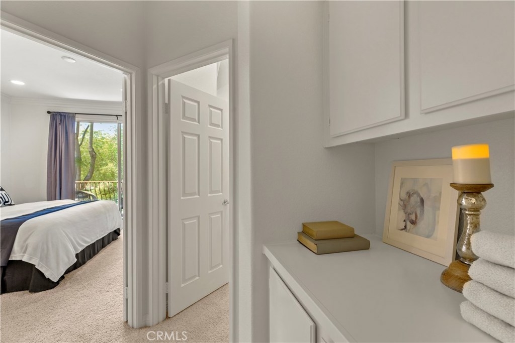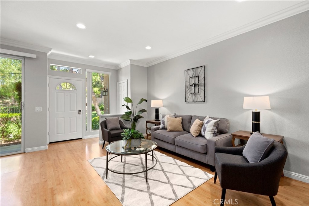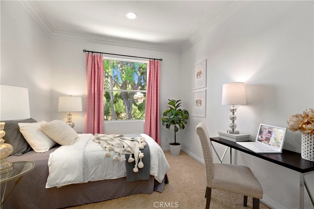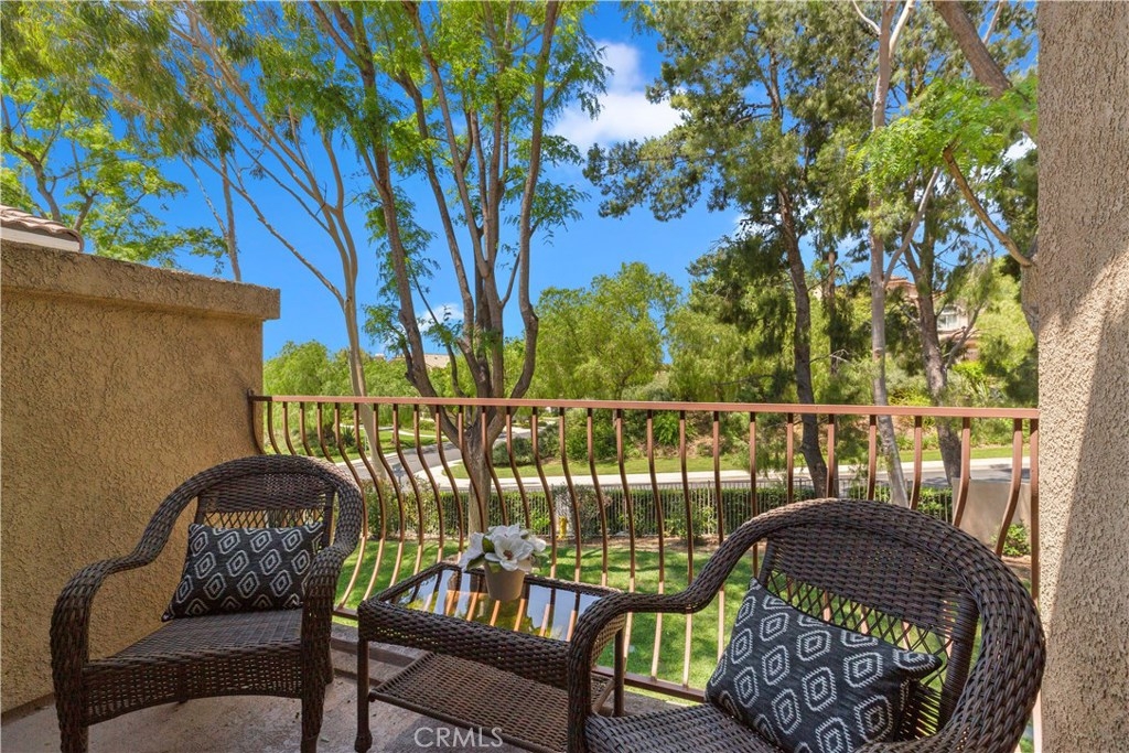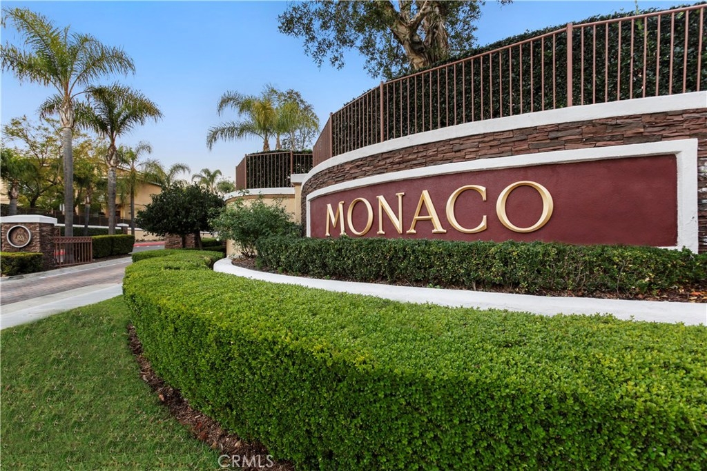 Resort-like feel with highly desirable tree-lined setting Monaco Community in Anaheim Hills! This very private and serine home features one of the best locations in the community. Surrounded by lush greenbelts and walkways, this beautiful home is a must see. Fresh interior paint, recessed lighting, upgraded baseboards, laminate flooring and crown molding. Great floor plan with open kitchen concept allowing for fluid connectivity to the living and dining areas. Kitchen includes refrigerator, pantry and stainless steel dishwasher, microwave and 5 burner gas range. Sliding door access to the inviting front patio area - ideal for relaxing and soaking up the exceptional scenery. Spacious master bedroom suite with private balcony overlooking this tranquil location. Dual sink vanity, tub, wall-mounted TV and walk-in closet. The second bedroom view is just as appealing with its own private full bathroom. Interior laundry room, Central A/C and Heat, dual pane windows, fireplace, media niche and accent lighting. 2 car attached garage with direct access, roll-up door, automatic opener, epoxy flooring and built-in storage. Monaco Community amenities include pool, spa, tennis courts, clubhouse and fitness room. Low HOA and no Mello-Roos. Exceptional schools and easy access to all that Orange County has to offer - Southern California’s Angels Stadium, the Honda Center, Disneyland, Knott's Berry Farm, and various indoor and outdoor shopping venues and much, much more.