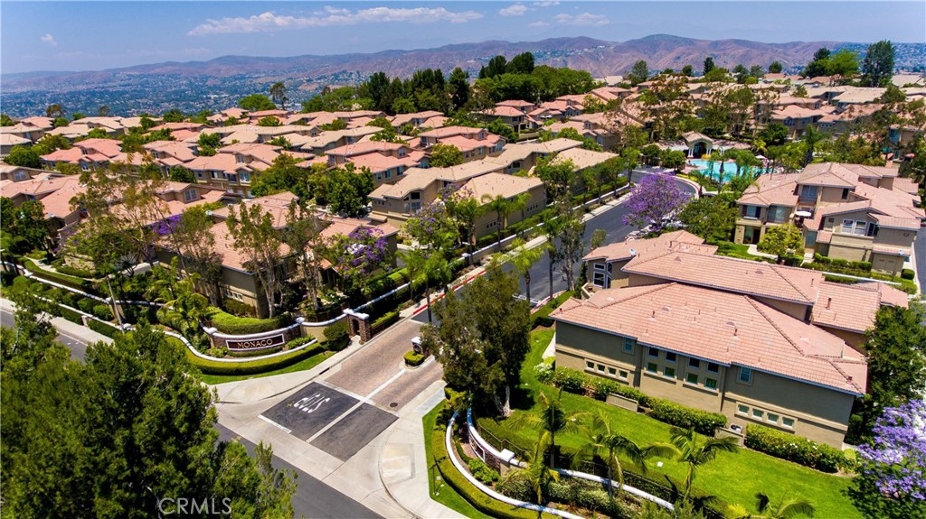 ONE BEDROOM MONACO CONDO! Features Travertine Flooring and Carpeting with fresh New Paint throughout. The Kitchen has White Tiled Counters, Microwave, Dishwasher, Gas Stove and a Refrigerator which is included. Cozy gas log Fireplace & Large Media Niche in Living Room. Your own spacious Balcony is located right off of Living Room. The Extra Large Bedroom is approximately 14.25' x 11,5'. Master Bath features double sink vanity, shower over a large oval soaking tub plus a spacious Walk-In Closet. Desirable Inside Laundry Area is located in your own 2 Car Attached Garage and includes a Washer and gas Dryer. The tandem style garage is Extra Long with plenty of room for 2 Cars & then some. Monaco amenities include a Resort Style Pool Area with Table, Chairs, Umbrellas, Clubhouse, BBQs, Weight/Work-Out Room, 2 Tennis Courts and 3 Spas located throughout the complex. This condo is conveniently located close by all kinds of Shopping, numerous Restaurants, the 91 Freeway and 241 Toll Road plus Savi Ranch Shopping. It is easy walking distance to Canyon Rim Elementary School, a Park, Walking/Hiking Trails and Walnut Canyon Reservoir. This area of Anaheim Hills is truly a Hidden Gem!