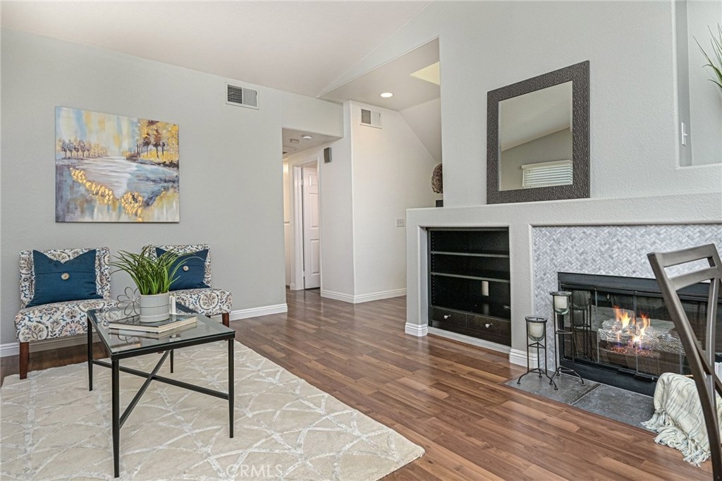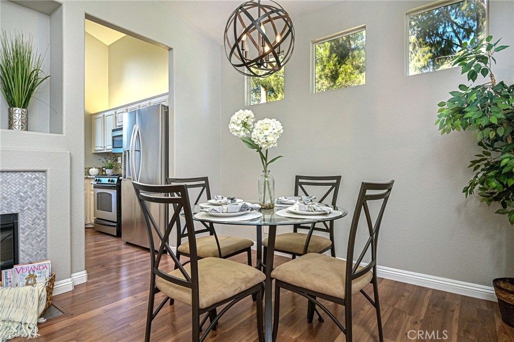Monaco in Anaheim Hills is an amazing place to call home,where you feel like you're on a year round vacation!There's a big,tropical pool & spa area with abundant space to swim,play or just & enjoy the sun.There's also a clubhouse & a gym/workout room to stay fit while living on vacation.Your luxury suite on your year round vacation is absolutely wonderful!You enter at the ground floor foyer with direct access to your 2 car garage.The stairs open to spacious & natural light filled living & dining rooms with stunning wood flooring that flows throughout the home.The big living room with fireplace has entertainment niches & high ceilings,& the spacious dining area has a view of the surrounding trees.Adjacent to these rooms is a sunny & bright kitchen with crisp white cabinets,granite counters with bar seating & stainless steel appliances.The kitchen opens to a breakfast nook & a deck surrounded by trees with room for outdoor dining.The first bedroom off the hallway has high ceilings,wood floors & ample mirrored wardrobe closet space.Across the hall is a beautifully remodeled full bath with tub & shower,lovely wood vanity & tile flooring.At the end of the hall is the master suite with wood floors,high ceilings with a cooling ceiling fan & a private bath which has a white double vanity,privacy door for the commode,walk-in closet with built-in organizers & gorgeous remodeled walk-in shower.Upstairs is a 3rd bedroom currently used as a loft.Don't miss this! Come live the good life!