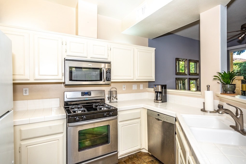 Modern and Light Anaheim Hills Two Story Condo in Popular Monaco Community. Premium End Unit Location next to Greenbelt. 2 Bedrooms Upstairs, Each with Their Own Full Bathroom and Walk-in Closet. Master Suite has Double Sink Vanity and Large Tub. Enjoy your Morning Coffee on the Private Master Suite Balcony. Main Level Light and Open Floor plan. Kitchen with Stainless Oven, Microwave and Dishwasher opens to Living Room with Fireplace and Dining Area. Main Floor Guest Bath and Indoor Laundry Room. Private Main Floor Patio is Partially Covered and great for Relaxing and BBQing. Direct Access 2 Car Tandem Garage with Roll-up Garage Door with Opener and Windows. New Furnace and New Energy Efficient Central Air. Low Property Tax and No Mello Roos Tax. Low HOA Dues Provide Resort Style Living. Nearby HOA Pool, Spa, Tennis Courts, Club House, Weight Room & BBQs. HOA maintains Grass Area Right Next to Property. Community is approved for FHA Loans. See 360 Tour: http://www.7771Portofino.com.