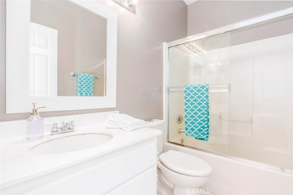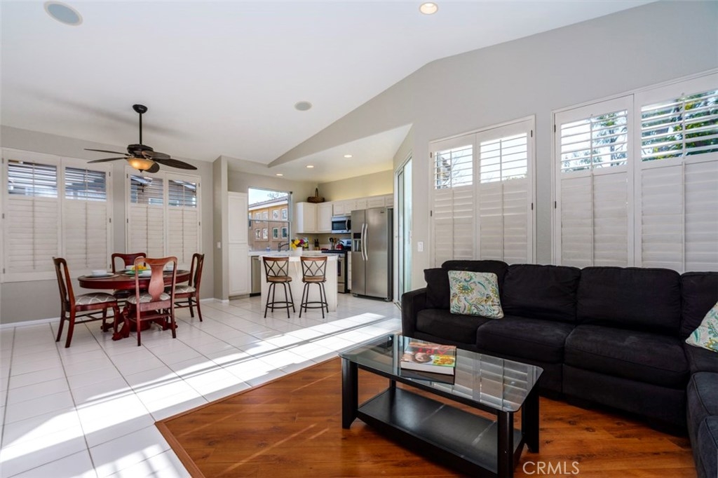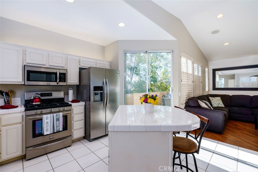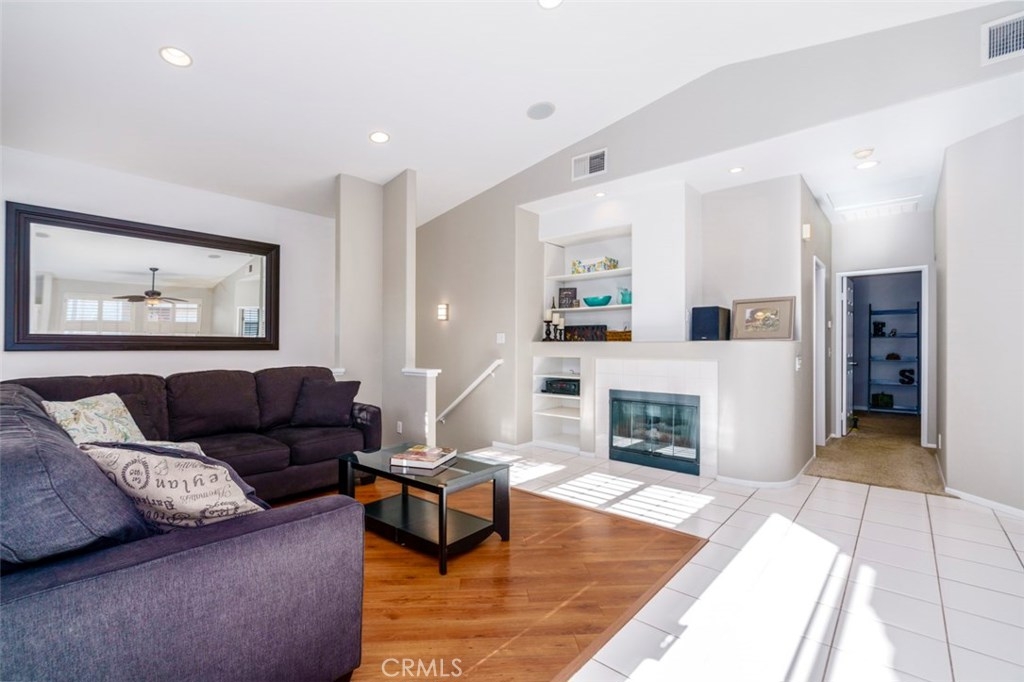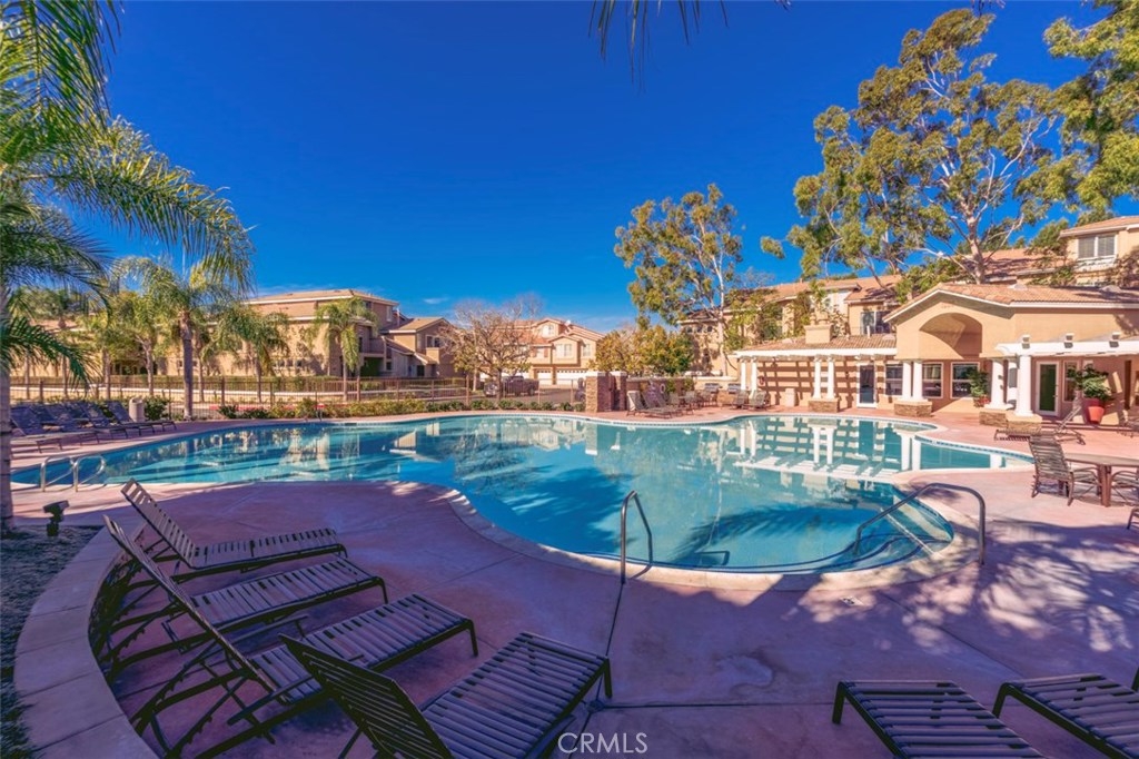 This beautiful 2 bedroom/2 bathroom condo is nestled in the highly desirable community of Monaco in gorgeous Anaheim Hills. Tucked away in an end unit private location with no neighbors above or below, this light and bright home offers spacious, open floorplan living with vaulted ceilings and oversized windows. The kitchen features newer stainless steel appliances as well as a large island perfect for serving and dining. A balcony off the main living area creates a resort like feel and offers a lovely view of the community. A cozy fireplace in the living room can be enjoyed from the kitchen and dining area as well. In the master bathroom you’ll find a roomy walk-in closet with cedar lining and a dual sink vanity. The second bedroom is completely private and the second bathroom is a full bathroom with shower and tub. A freshly painted interior, recessed lighting and plantation shutters only add to the appeal of this home. You also have a 2 car (side by side) garage as well as direct access to the condo from the garage. The Monaco community offers a resort style swimming pool, multiple spas, tennis courts, a clubhouse, a gym and BBQs. Conveniently located close to top rated schools, including Canyon Rim Elementary and El Rancho Charter, shopping, dining and the 241 toll road and 91 freeway. This is a must see!