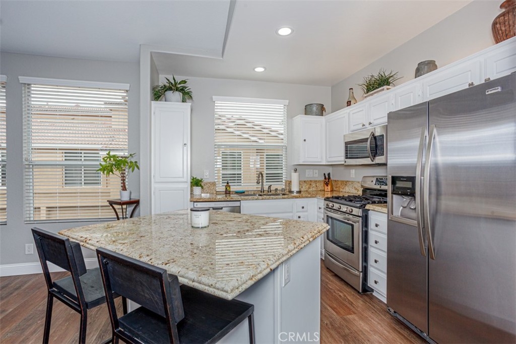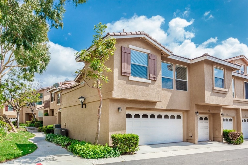 Welcome to 7919 E Monte Carlo Ave located in the Heart of Anaheim Hills. This carriage style condo has been professionally designed with updated finishes throughout the home. Upon entering you will see the high pressure/waterproof Laminate Flooring that flows from room to room and is complimented with oversized white base boards. The Kitchen has white cabinets, handcrafted granite tops, recessed lighting, and stainless steel appliances. The bedrooms are oversized with plenty of closet space, and the main bedroom can accommodate a king size bed. Both restrooms have granite tops, tubs/shower units, and high ceilings. Other recent updates include a brand new AC/Heating System, antique bronze door handles & plumbing fixtures, neutral color pallete, and an oversized side by side attached 2 car garage. With easy access to freeway/toll roads, and close to shopping, dining, and entertainment, 7919 E Monte Carlo Ave is a must see home.