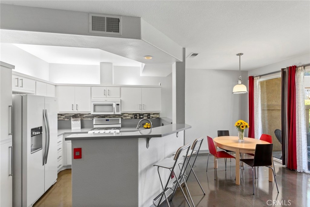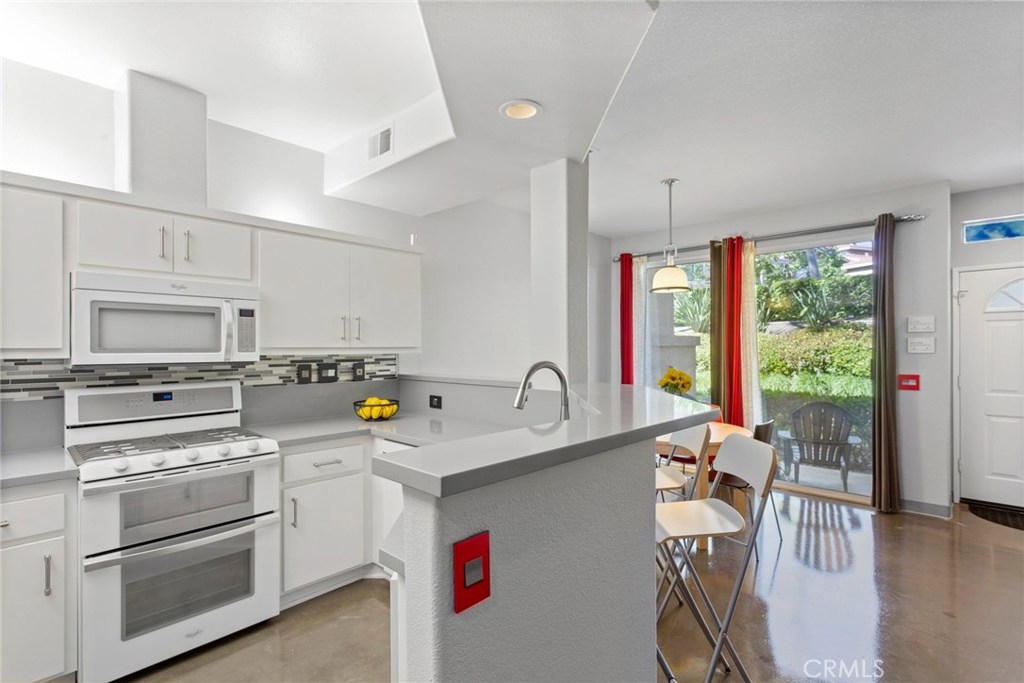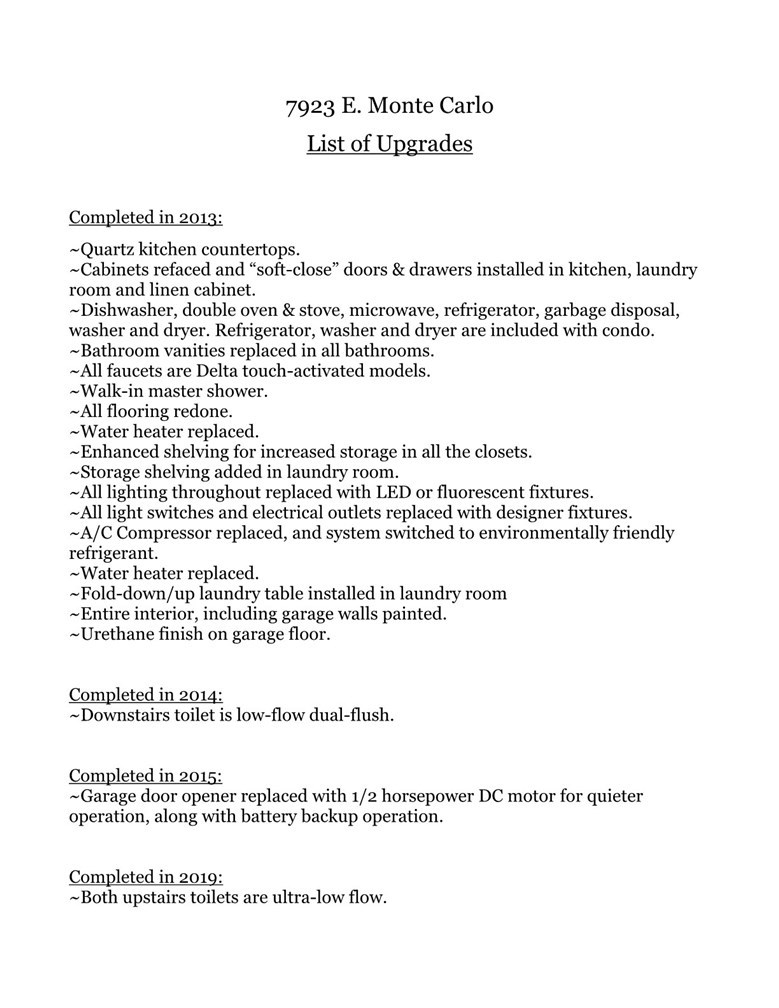 UPGRADES GALORE start with the open concept kitchen featuring quartz counters with breakfast bar, refaced cabinets, appliances upgraded and include a double oven gas stove, dishwasher, microwave and a refrigerator. All 3 bathrooms have been upgraded with vanities and sinks, mirrors, lighting, low flow toilets and lighting. Master bath has a walk in shower. Second bath has soaking tub with shower. Enhanced shelving for increased storage in every closet. Separate inside laundry room has folding table and washer & dryer are included. All lighting throughout replaced with LED or fluorescent fixtures. All light switches and electric outlets replaced with designer fixtures. All faucets are touch activated. Air conditioner compressor replaced and entire system switched to environmentally friendly refrigerant. Garage door opener upgraded with 1/2 horsepower DC motor for quieter operation along with battery backup operation. Programmable thermostat. Attached 2 Car Garage with free standing Storage Shelves. THIS IS A MUST SEE CONDO! Low HOA $235.00/month and include resort style amenities. An extra large pool, tables with umbrellas, lounge chairs, 3 spas throughout Monaco, BBQ's, a clubhouse, weight/work out room plus tennis courts. Easy walking distance to Canyon Rim Elementary School, Canyon Rim Park plus Walnut Canyon Reservoir. And just minutes away from all kinds of shopping, movie theater, restaurants, Library, 91 Freeway and 241 Toll Road. This condo is READY TO MOVE RIGHT IN!