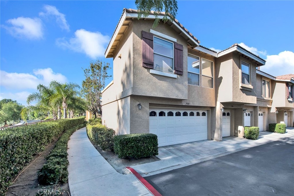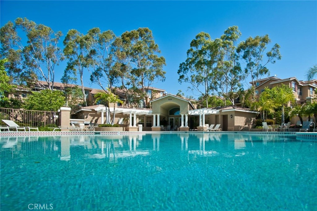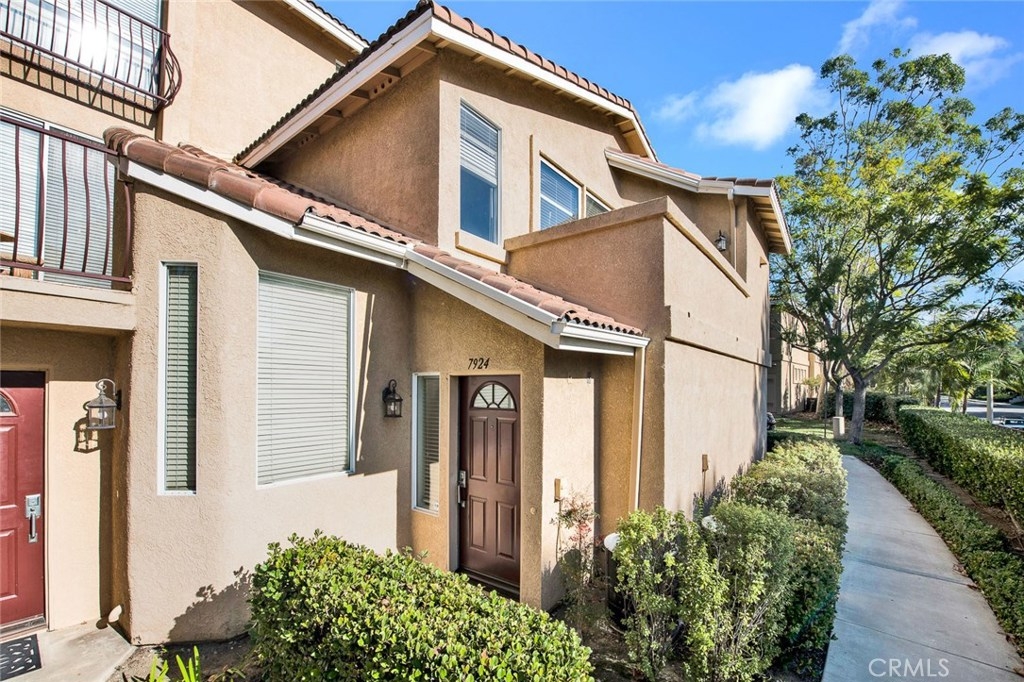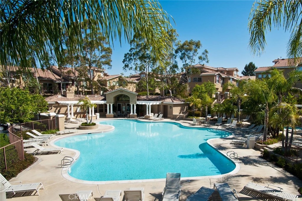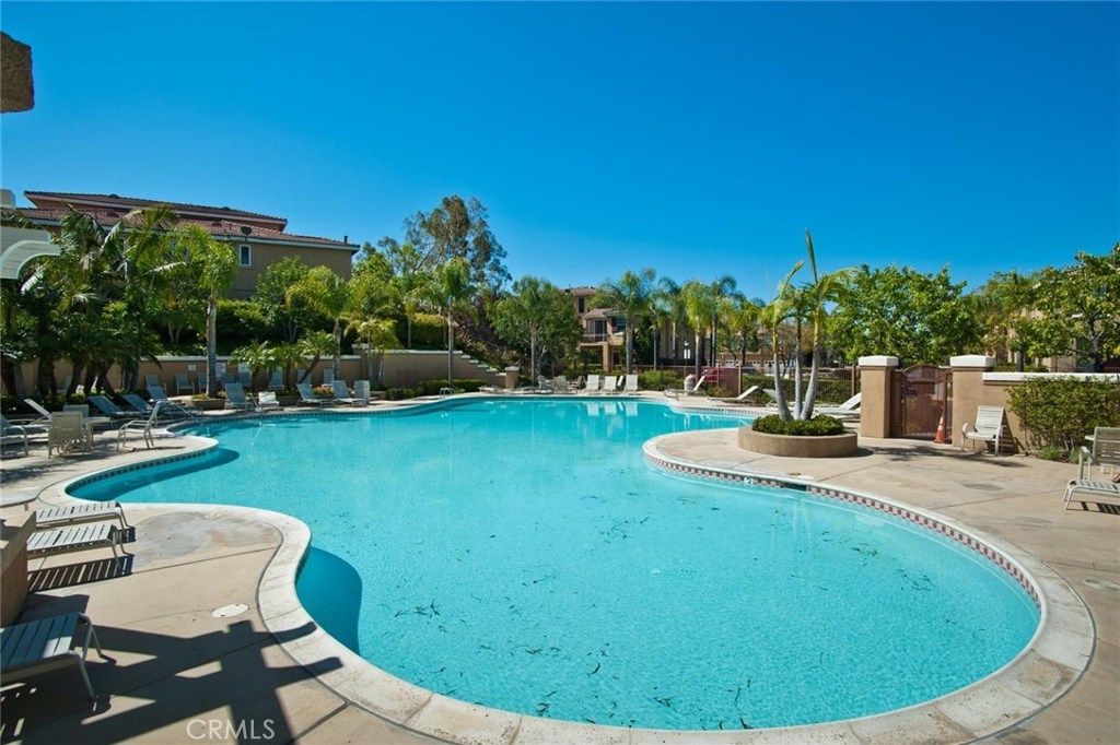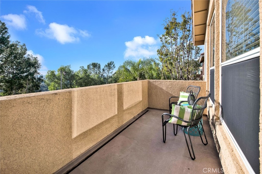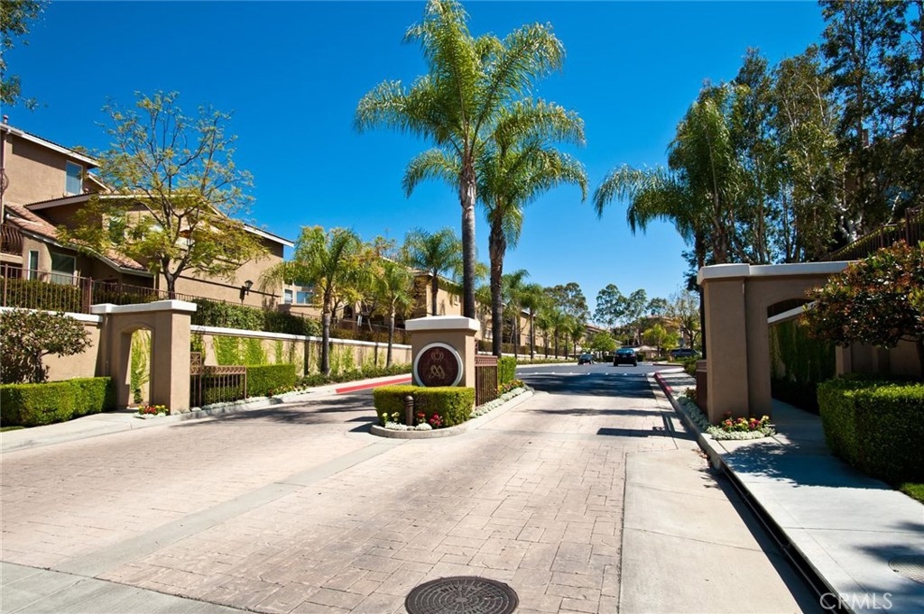 How would you like to feel like you're on vacation every day? Monaco in Anaheim Hills is the place, offering resort style living year round. There's a tropical, big pool & spa area with abundant space to swim, play or just lounge and enjoy the sun. There's also a clubhouse & a gym/workout room if you need to get some cardio in while living on vacation. All this with low HOA dues! And your luxury suite on your year round vacation is absolutely wonderful! You enter at the ground floor with direct access to your 2 car garage. The living space is upstairs which opens to a spacious and natural light filled great room with stunning wood flooring featuring a big living room with fireplace, entertainment niches, ceiling fan and high ceilings,a spacious dining area and a terrific kitchen with clean white cabinets, counters and appliances. The kitchen also has an island with bar seating. There's a sliding glass door leading to an expansive balcony/deck with serene views of the hills and trees. The first bedroom off the hallway is currently used as an office and has ample mirrored wardrobe closet space, soft carpeting & a cooling ceiling fan. Across the hall is a full bath with tub & shower, white vanity and wood flooring. At the end of the hall you find the master suite with soft carpeting, a cooling ceiling fan and arched opening to the private bath which has a white double vanity, privacy door for the toilet, walk-in closet, tub & shower. Don't miss this! Come live the good life!