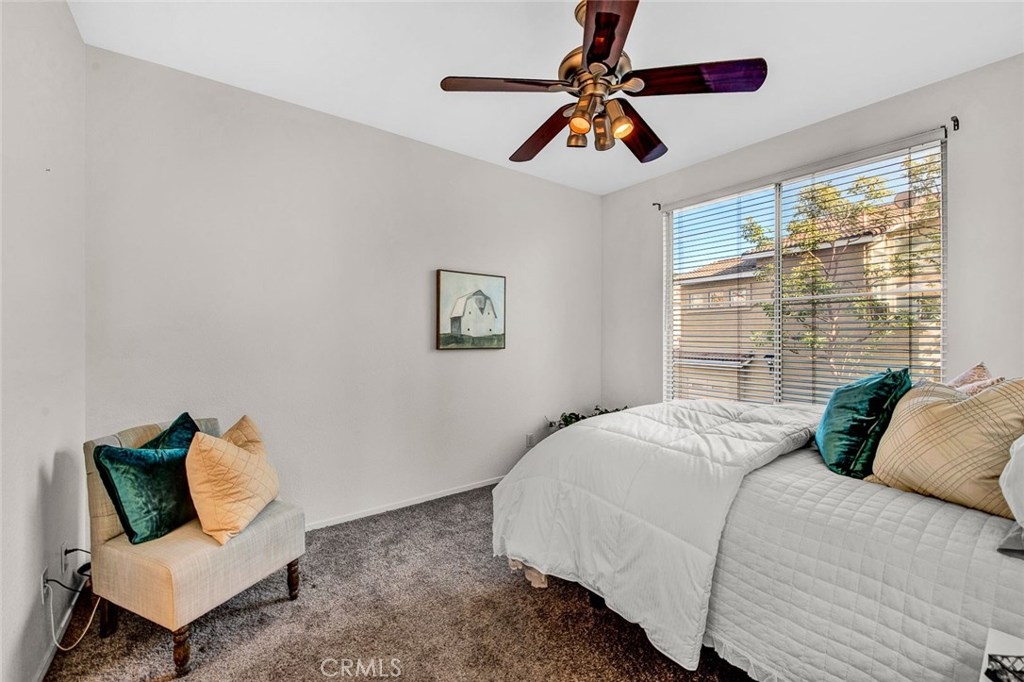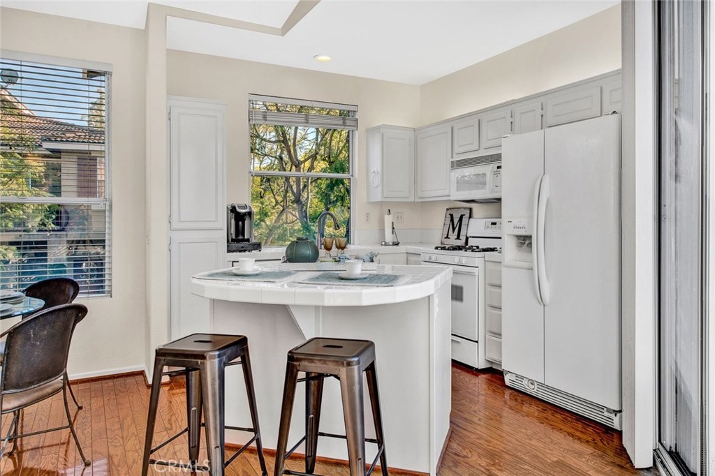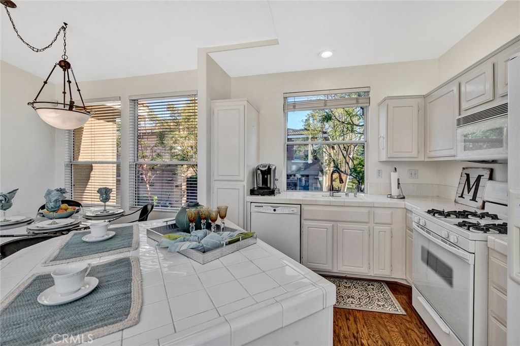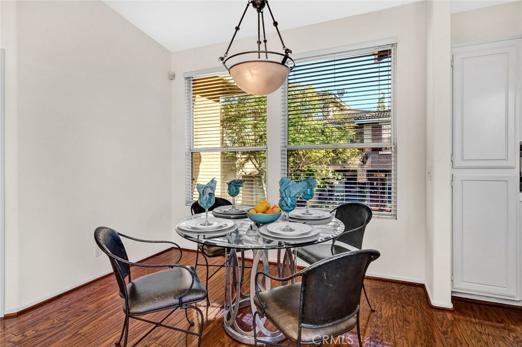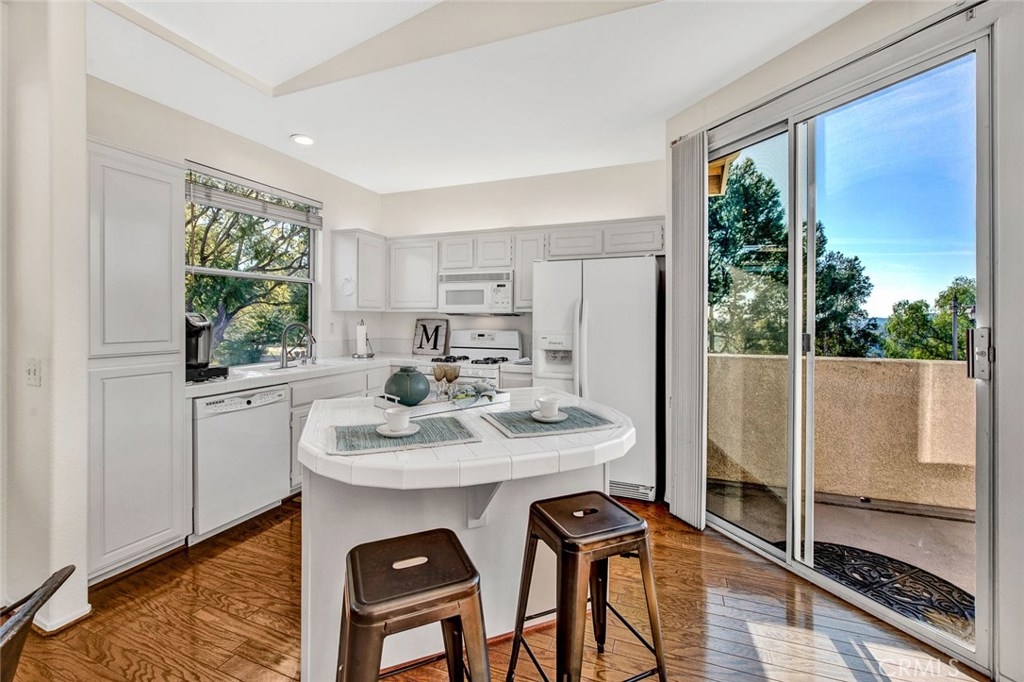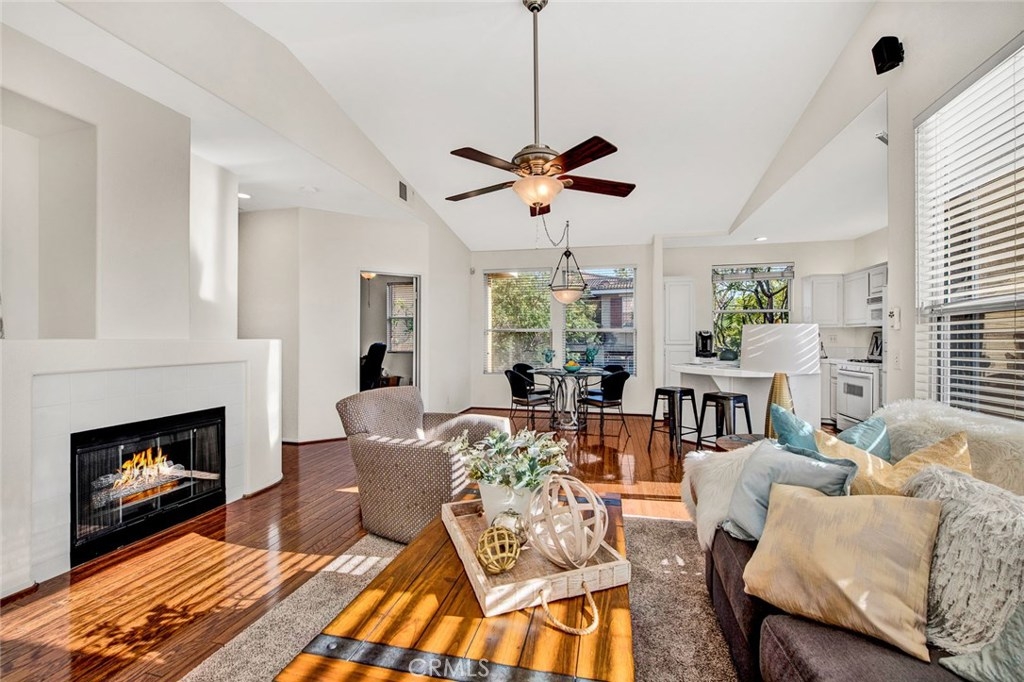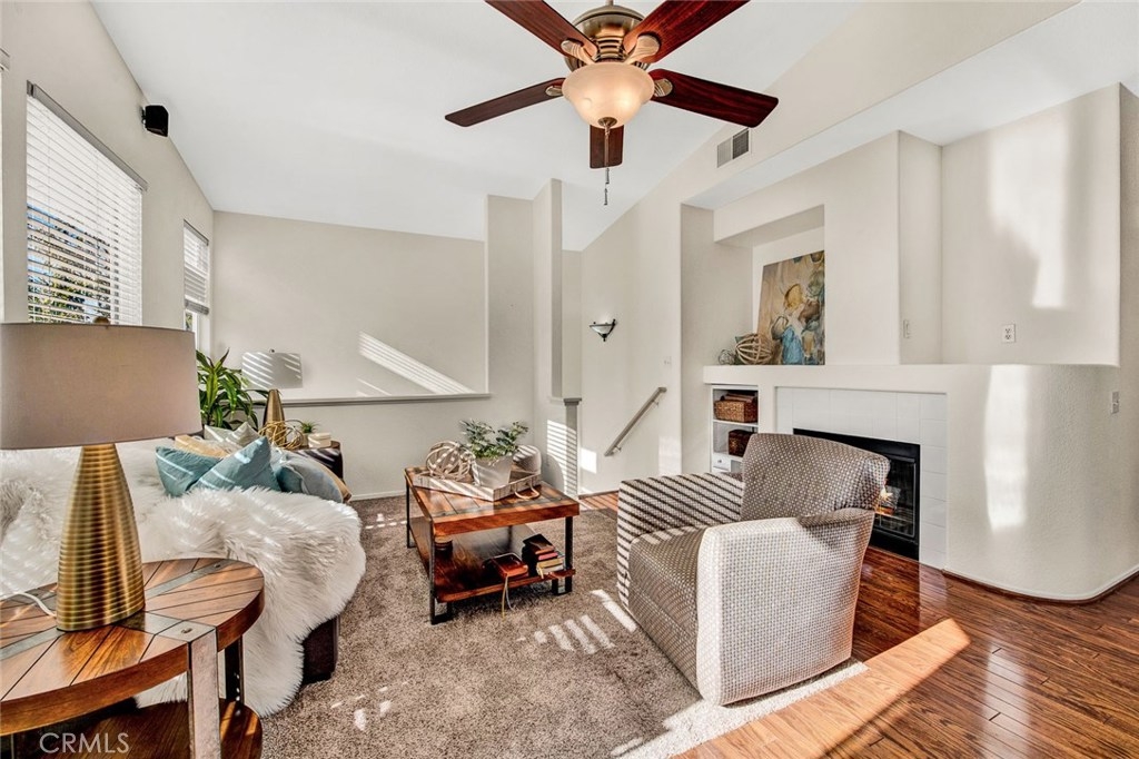 How would you like to feel like you're on vacation every day? Monaco in Anaheim Hills is the place, offering resort style living year round. There's a tropical, big pool & spa area with abundant space to swim, play or just lounge and enjoy the sun. There's also a clubhouse & a gym/workout room if you need to get some cardio in while living on vacation. All this with low HOA dues! And your luxury suite on your year round vacation is absolutely wonderful! You enter at the ground floor with direct access to your 2 car garage. The living space is upstairs which opens to a spacious and natural light filled great room with stunning wood flooring featuring a big living room with fireplace, entertainment niches, ceiling fan and high ceilings,a spacious dining area and a terrific kitchen with clean white cabinets, counters and appliances. The kitchen also has an island with bar seating. There's a sliding glass door leading to an expansive balcony/deck with serene views of the hills and trees. The first bedroom off the hallway is currently used as an office and has ample mirrored wardrobe closet space, soft carpeting & a cooling ceiling fan. Across the hall is a full bath with tub & shower, white vanity and wood flooring. At the end of the hall you find the master suite with soft carpeting, a cooling ceiling fan and arched opening to the private bath which has a white double vanity, privacy door for the toilet, walk-in closet, tub & shower. Don't miss this! Come live the good life!