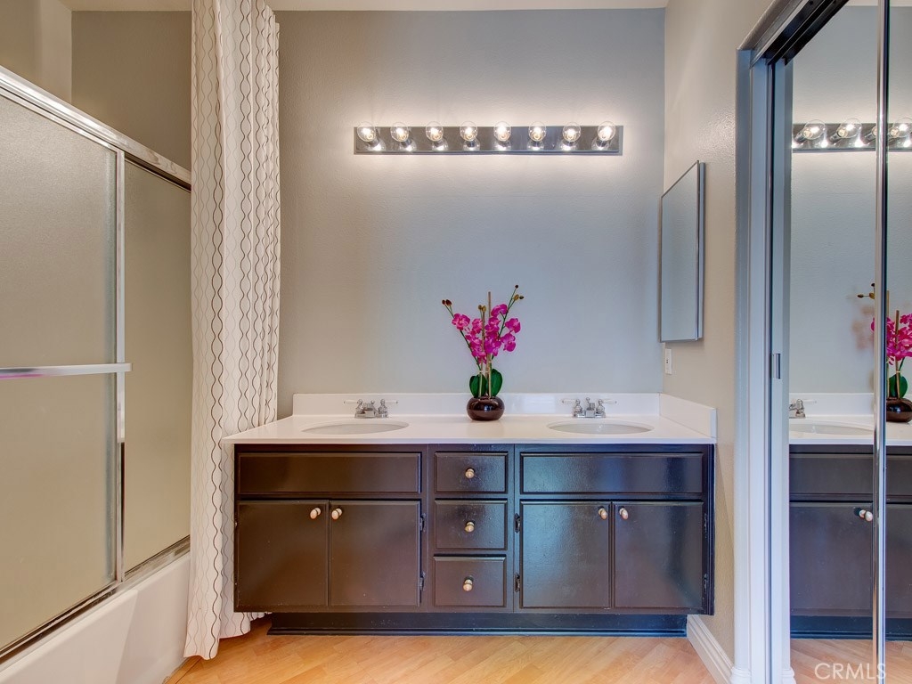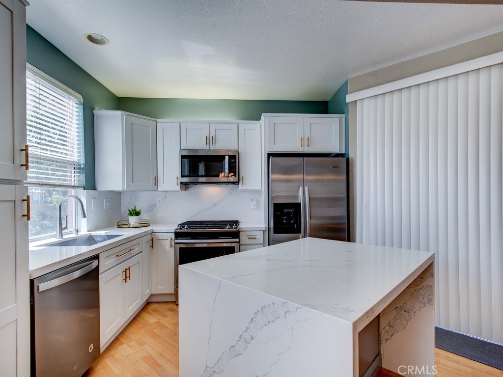 This is a Rare Single Level Carriage Living. 2 Bedroom, 2 FULL Bath END UNIT, with 2-car Driveway is located in the Highly Desirable Anaheim Hills Resort Style community of Monaco. This home is immaculate with no living unit above or below, has vaulted ceilings, painted tones & fireplace, creating a comfortable and relaxing setting. With many large windows throughout, this home invites an Abundance of Natural Light. Recently UPGRADED GOURMET KITCHEN with Modern Quartz Countertops and Custom Cabinets. Upgraded stainless steel oven and range, dishwasher and microwave oven. Refrigerator is Included in sale. Master Suite has Dual Sinks in the En-Suite Bathroom. Walk-in closet with Built-In Organizers and full length mirrored closet doors. Oversized 2-car garage with Direct Access to entry way comes complete with Built-in Custom Cabinetry. Arms Reach to the 91, 55, and 241, Shopping, Dining, Parks and Trails. Don’t Miss This GREAT HOME!