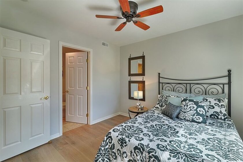 This beautifully updated townhouse has a main floor bedroom and is located in a peaceful, forested location. Follow what feels like a private road with cul de sac, its an end unit that backs to a greenbelt with hillside views, in the desirable Parkview community. Step into a dramatic entry with vaulted ceilings and open staircase. Freshly painted, its light and bright with new dual pane windows and remote controlled shades! Nearly $20,000 was spent on wire bushed oak flooring throughout and it looks great wth the travertine entry, fireplace and baths! The kitchen features recessed lighting, granite counters and opens to the dining room. One bedroom is located downstairs and has a bath with shower. Step outside to a large fenced-in patio. You will love the lush green hillside and views. Upstairs the secondary bedroom is large with 2 closets. Double doors open to a big master with a fantastic view. The master bath is a handy design that opens up to another quarter bath. The direct access 2 car garage is surprisingly large and includes a new garage door opener. Additional updates include newer furnace, AC and water softener. The community pool, spa and picnic area is just up the street and schools are excellent. Don't miss this turnkey townhouse!