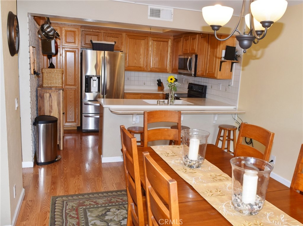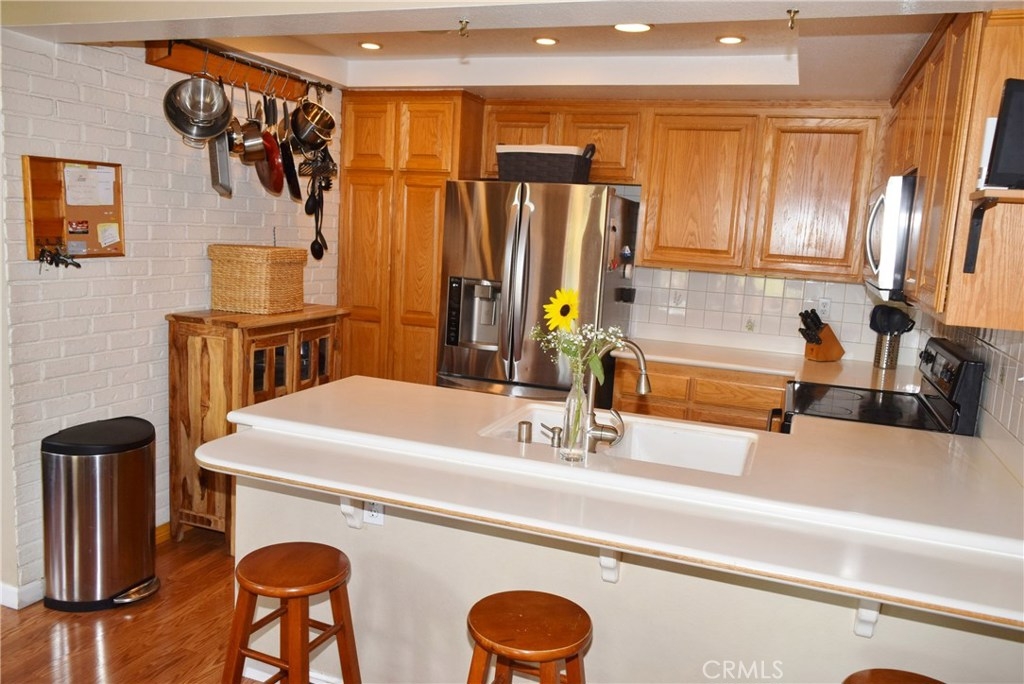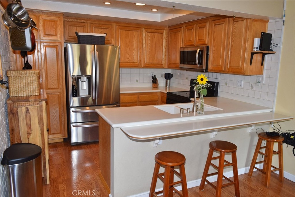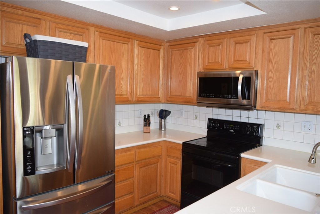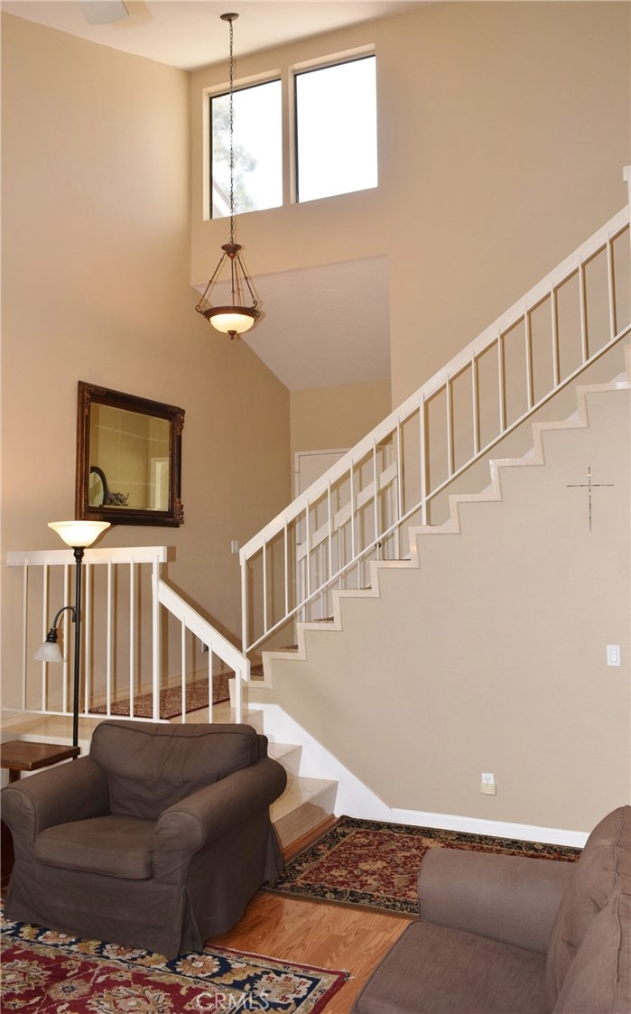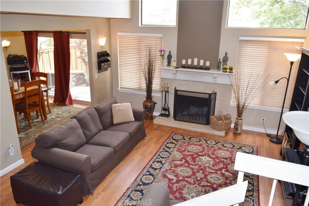 Price Drop on this upgraded 3 Bedroom 2.5 Bath Remodeled Townhome. As you walk in you'll experience the open and spacious floor plan. The cathedral ceiling and large upper windows allow for plenty of sunshine during the day and star light on nights with a full moon. Both upstairs and downstairs have been refinished with beautiful oak laminate flooring. From the dining room and brick patio with new cover, there is a lovely tree filled view of the neighborhoods down the hill. The kitchen features oak cabinets and Corian counter tops. Both the half bath downstairs and the hall bath upstairs have been tastefully remodeled with new cabinets, granite counter tops and lighting. The very large master bedroom features a walk in closet, cathedral ceiling (with fan) and a fantastic view. Finally, all windows are double pane, the 2 car garage doors as well as the whole front portion of the garage walls have recently been insulated to keep it cool in the summer warm in the winter and there is a professional grade water softener. The property is under one of the lowest HOA fees in Orange County. The Parkview community includes a gated pool area and large grass picnic area. This home is within the Anaheim Hills Elementary, El Rancho Charter Middle School and Canyon High Schools district, which are rated at the top for academics in Orange County. Within walking distance is the Oak Canyon Nature Center, Anaheim Hills Golf Course and trail head access for Canyon Oaks and Irvine Parks.
