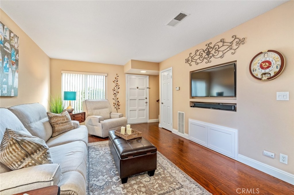 Come make yourself at home inside this beautifully remodeled turnkey townhome. This 2 bedroom 1.5 bath in the desirable Rancho Yorba Community in Anaheim Hills. Main floor kitchen has Corian counter tops and stainless steel appliances and is open to the dining area and family room. The refrigerator and stackable washer and dryer are included. Inside laundry with half bath adjacent to the kitchen. The home has been upgraded with double pane windows, built in storage options, granite bathroom countertops, ceramic tile in shower/kitchen/bath, custom closet by Closet World in master bedroom and distressed engineered hardwood floors throughout. 2 bedrooms and one full bathroom upstairs. Patio has been completely redone with a Alumawood patio cover, recessed lighting, ceiling fan and stamped concrete. Unit has 2 car attached garage and guest parking. Rancho Yorba's association has park like grounds, two swimming pools and clubhouse. Easy access to freeways, shopping, and award winning schools. Don't miss this one!!