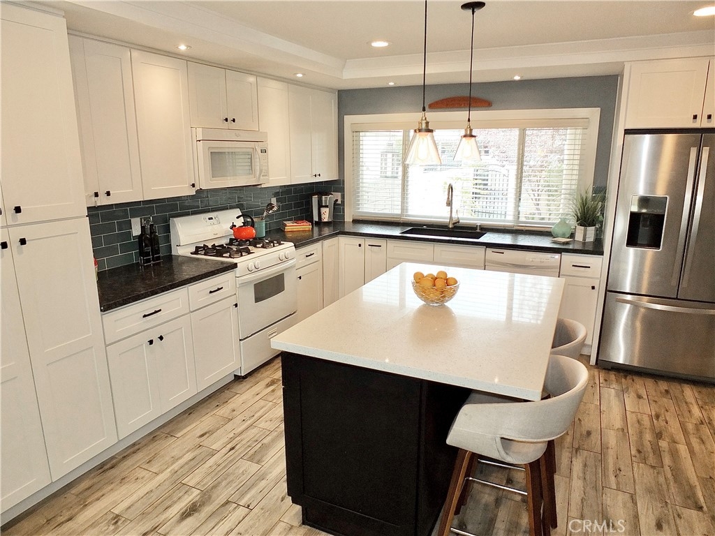 An enchanting 3 bedroom, 2 1/2 bathroom townhouse amidst rolling hills and towering trees… where you feel as if you’ve escaped to the ease and tranquility of Southern California … of yesteryear.. in Rancho Yorba… in Anaheim Hills. Pause in the garden courtyard amidst enchanting plantings… then open the leaded glass double doors and enter this home of warmth and casual sophistication. Both the living and dining rooms enjoy the fireplace and lovely wooded views of the patio. The kitchen is beautifully appointed and includes a central island and views to the courtyard. Also at ground level is the guest 1/2 bathroom plus the connected 2 car garage with laundry including appliances. At the upper level are 3 bedrooms and 2 bathrooms including the primary suite boasting a soaring cathedral style ceiling, 2 large wardrobe closets plus a private spa-like bathroom featuring 2 sinks plus a glass doored shower with a bench. Only minutes, yet a world away, from the heart of Southern California… in Anaheim Hills.