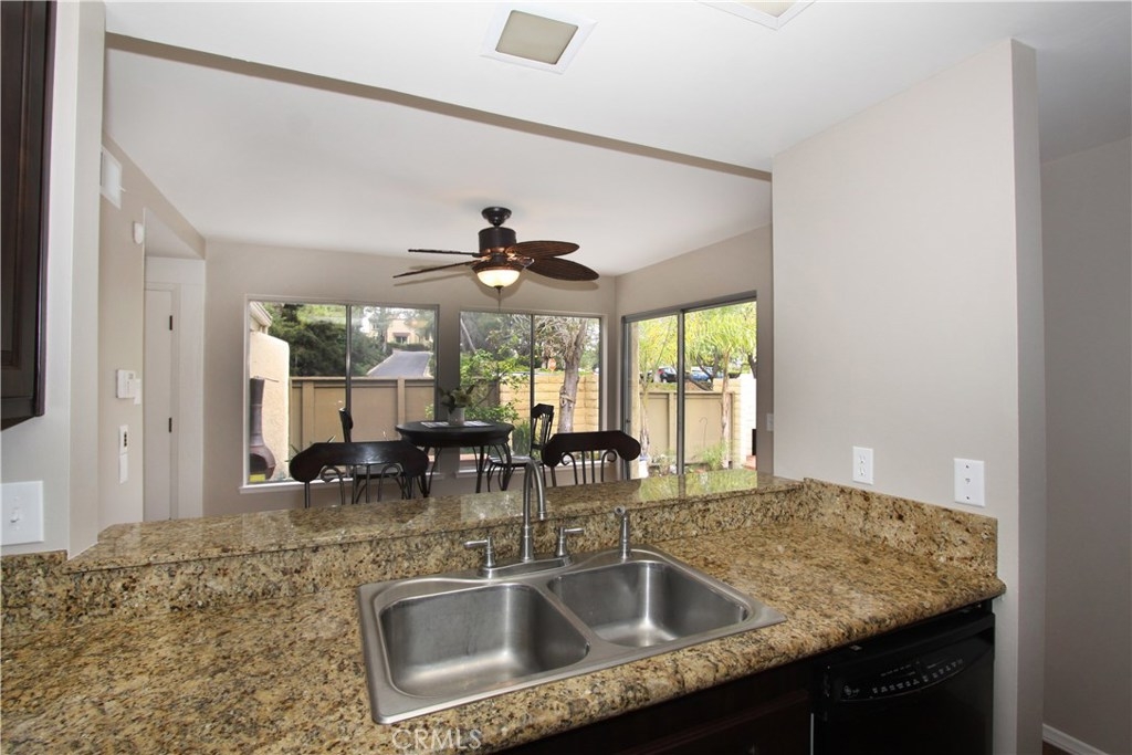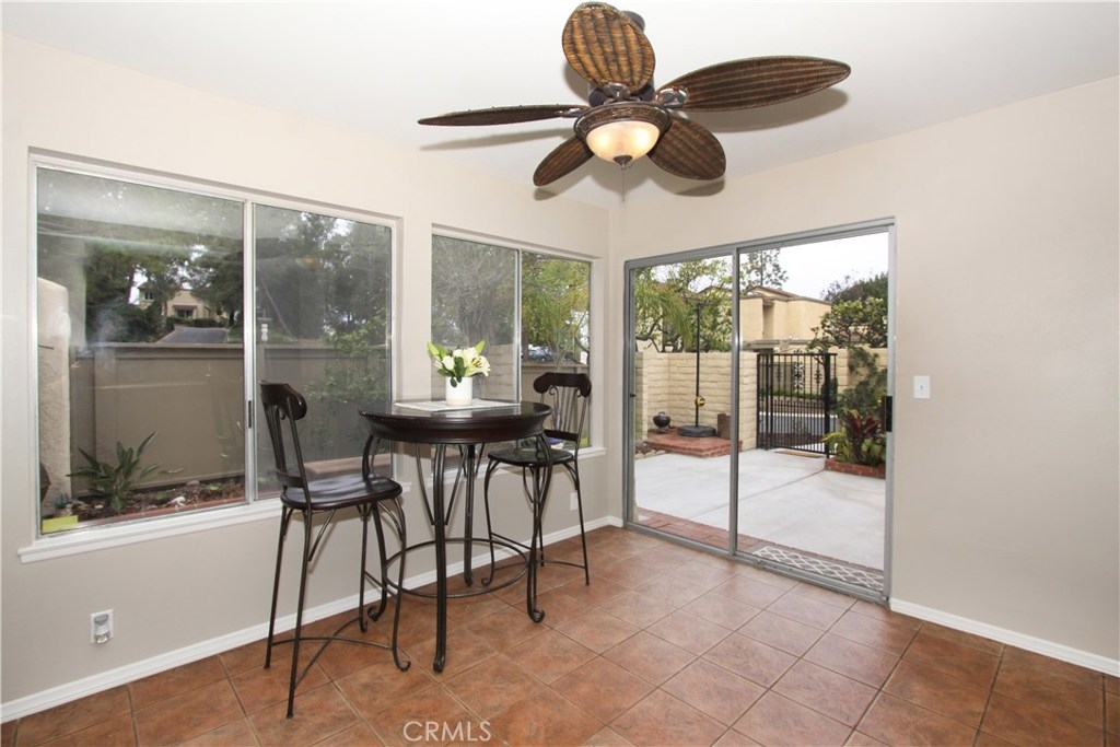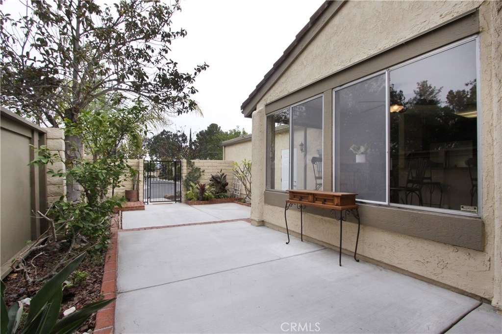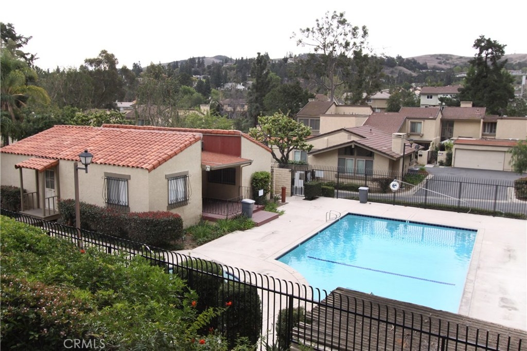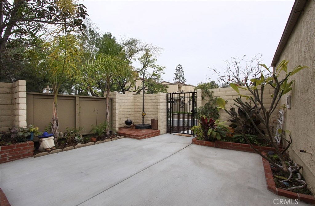 Situated within walking distance of local shopping, restaurants, and schools, this end-unit single level condo highlights pride of ownership. Prior to entry, an open courtyard welcomes all your guests with ample sunshine and greenery to brighten up your summer BBQ's. Upon entry, natural light floods the vaulted ceiling and open living room complete with a gas starter fireplace for a cozy evening. Right around the corner, step into the granite counter kitchen, adjacent eating area, and breakfast bar. Retreat to your generously sized master suite with a spacious granite counter sink, shower, and over sized his-and-her closet. Enjoy a cup of morning coffee on the master patio just outside the master bedroom overlooking the trees and hills. A second well-situated bedroom sits off the living room along with a second full bath just across the hall to round out the layout of this home. With the attached two car garage including a full wall of built-in cabinet storage and washer dryer hook ups as well as amenities including two pools and two Jacuzzi's in the community, this condo offers a rare opportunity in North Orange County.