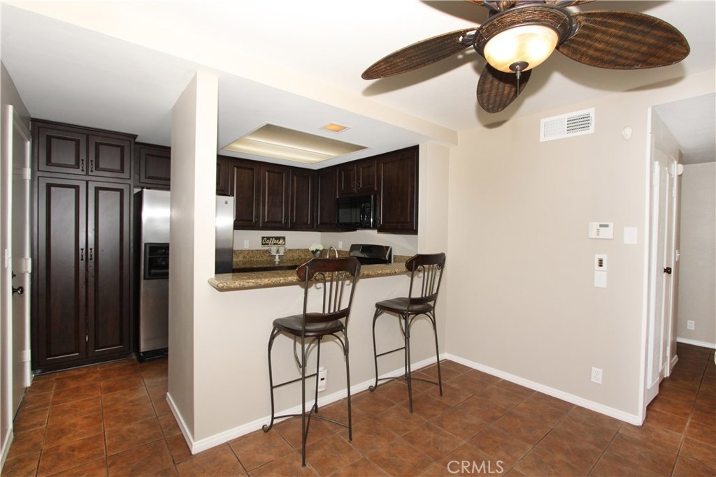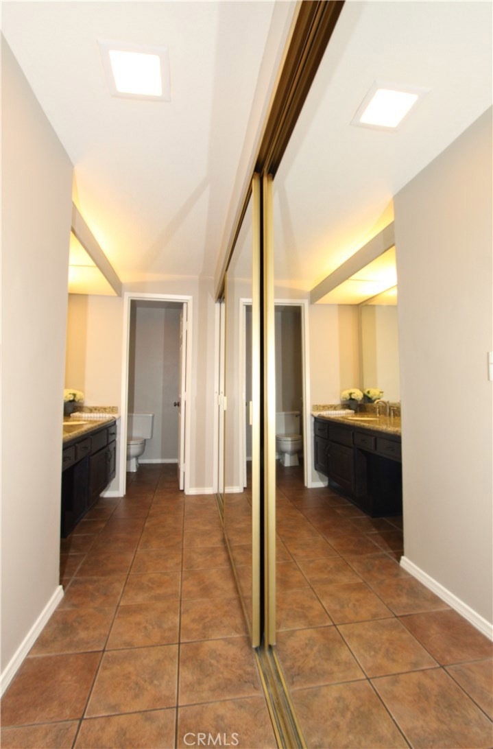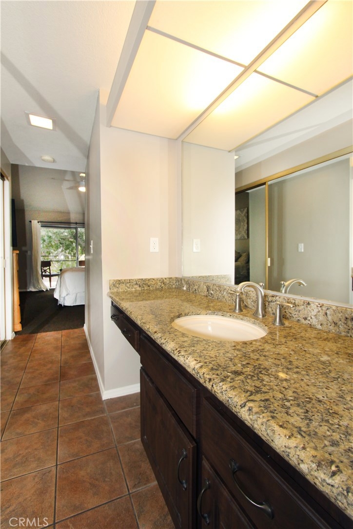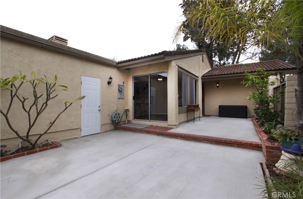 Situated within walking distance of local shopping, restaurants, and schools, this end-unit single level condo highlights pride of ownership. Prior to entry, an open courtyard welcomes all your guests with ample sunshine and greenery to brighten up your summer BBQ's. Upon entry, natural light floods the vaulted ceiling and open living room complete with a gas starter fireplace for a cozy evening. Right around the corner, step into the granite counter kitchen, adjacent eating area, and breakfast bar. Retreat to your generously sized master suite with a spacious granite counter sink, shower, and over sized his-and-her closet. Enjoy a cup of morning coffee on the master patio just outside the master bedroom overlooking the trees and hills. A second well-situated bedroom sits off the living room along with a second full bath just across the hall to round out the layout of this home. With the attached two car garage including a full wall of built-in cabinet storage and washer dryer hook ups as well as amenities including two pools and two Jacuzzi's in the community, this condo offers a rare opportunity in North Orange County.