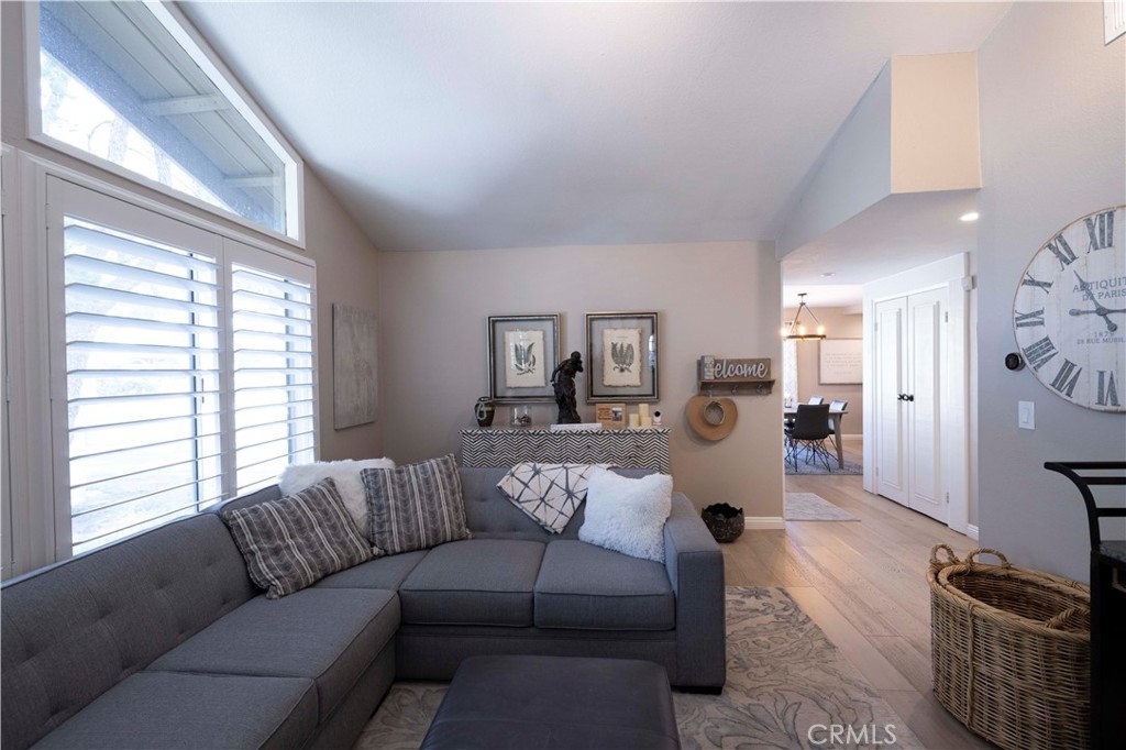 Situated within walking distance of local shopping, restaurants, and schools, this end-unit single level condo highlights pride of ownership. Prior to entry, an open courtyard welcomes all your guests with ample sunshine and greenery to brighten up your summer BBQ's. Upon entry, natural light floods the vaulted ceiling and open living room complete with a gas starter fireplace for a cozy evening. Right around the corner, step into the granite counter kitchen, adjacent eating area, and breakfast bar. Retreat to your generously sized master suite with a spacious granite counter sink, shower, and over sized his-and-her closet. Enjoy a cup of morning coffee on the master patio just outside the master bedroom overlooking the trees and hills. A second well-situated bedroom sits off the living room along with a second full bath just across the hall to round out the layout of this home. With the attached two car garage including a full wall of built-in cabinet storage and washer dryer hook ups as well as amenities including two pools and two Jacuzzi's in the community, this condo offers a rare opportunity in North Orange County.