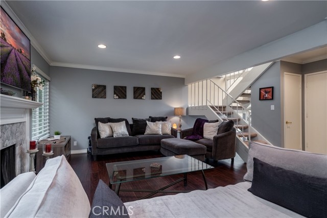 Located in the highly desired Rancho Yorba community of Anaheim Hills, this 2 bedroom 3 bathroom attached single family residence is in show condition and move in ready. With a private gated courtyard entry, the patio is open and inviting with custom designed interlocking pavers, space for your barbecue and outdoor seating for al fresco dining. Step in through the front door to contemporary styling with dark wood flooring and stylish custom fireplace and upgraded powder room. The second floor offers an en-suite bedroom with peek a boo view of the hills, mountains and city lights. This room is self contained and very private, perfect for guests, and the master suite has two spacious closets, high beamed ceilings and a spa inspired master bath with soaking tub. The upgraded kitchen has dramatic dark wood cabinets, custom back splash and granite counter tops and is just steps away from the large private dining room. In addition, all plumbing has been upgraded to PEX pipe a $6000 upgrade. The Rancho Yorba Community offers low association dues, common area maintenance, and a large community pool; and is located close to shopping, dining, entertainment and is close to all freeways and toll roads.