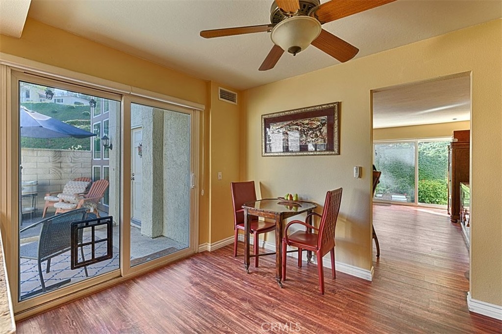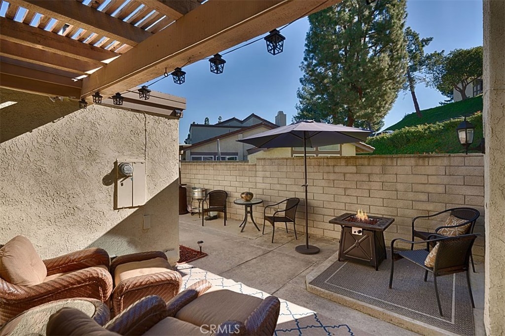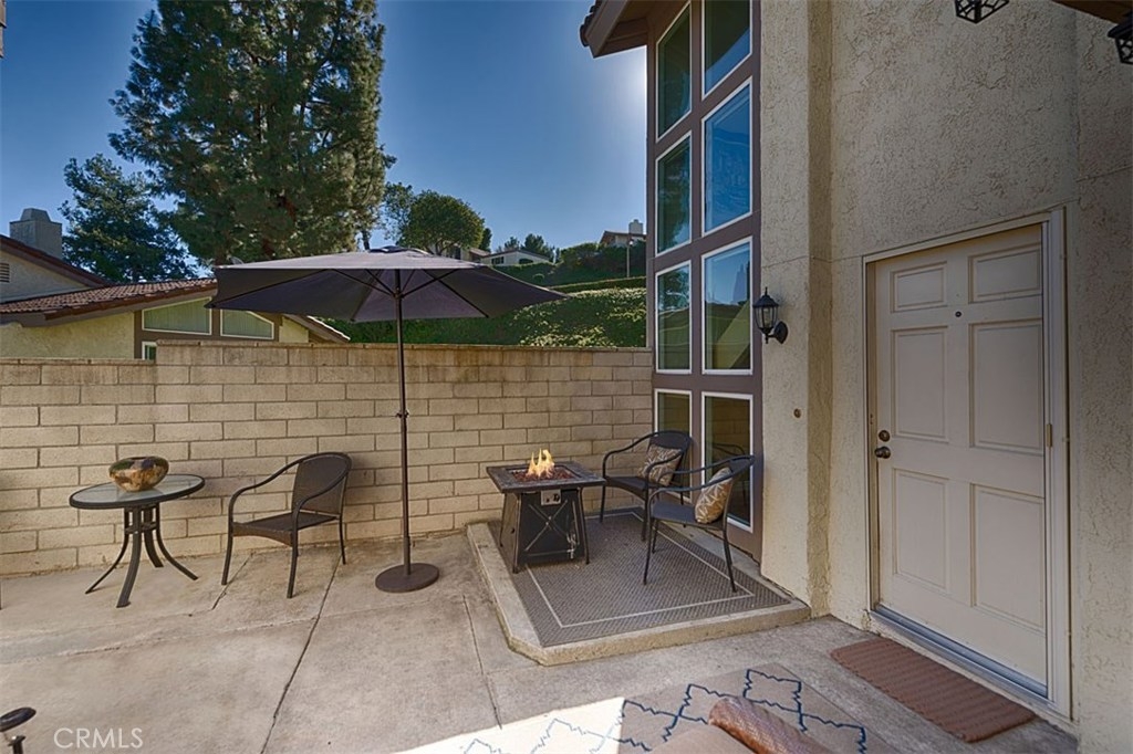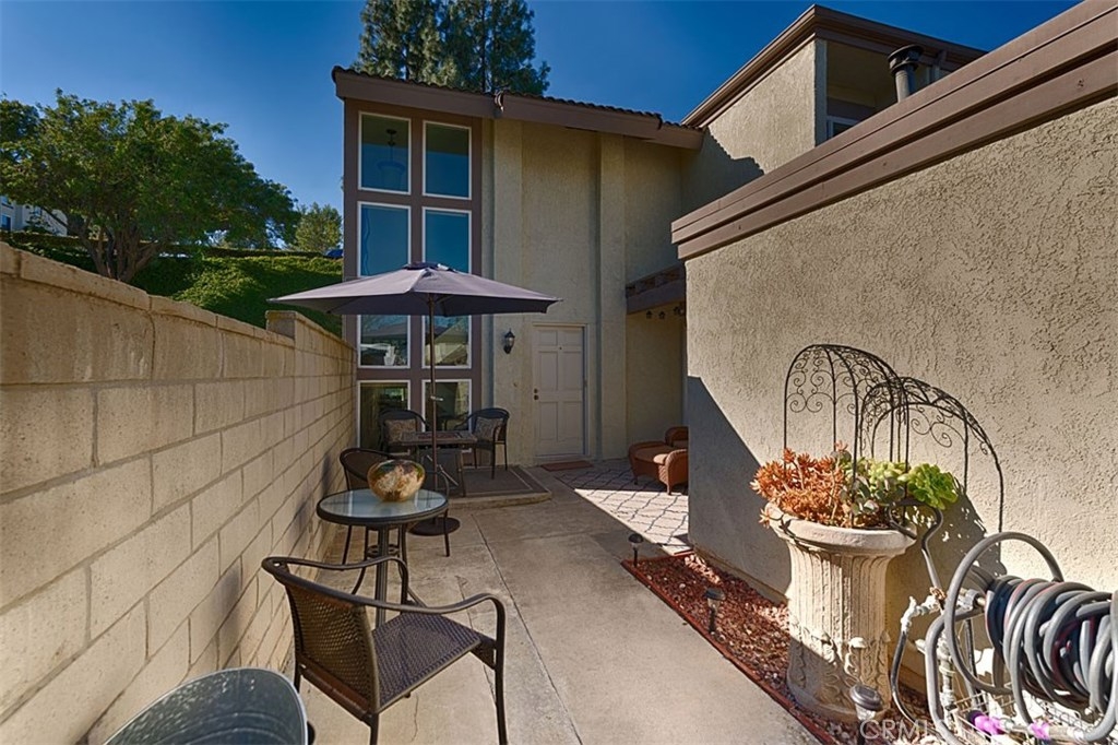 Upgraded Anaheim Hills dual master suites home in the prestigious Rancho Yorba Community. Walking distance to shopping, restaurants and excellent schools - Canyon HS and Crescent Elementary. Spacious kitchen with newer appliances (Bosch dishwasher, space saver microwave hood) and new granite countertops. Undermount stainless steel sink and Delta Touch 2.0 faucet. Lots of cabinets and a breakfast nook. Living room with granite enclosed fireplace and brand new luxury vinyl, waterproof (wood look) floors. Remote controlled Kathy Ireland window coverings in main room, bedrooms and picture windows over the stairs. ALL windows in this home have been upgraded with dual pane, energy efficient windows. Master bedroom with his and her closets, double sink vanity, lg remodeled walk in shower with frameless shower doors and onyx accents. Room for dressing table or extra storage in master bathroom. Second bedroom has en-suite bathroom, Murphy bed and built in office space (optional, can be excluded from the sale). Work in a dedicated home office space and be ready to easily entertain guests. This hone is an end unit with a private patio that is great for entertaining and the side and back is lush with beautiful landscaping that the HOA maintains. loads of newly upgraded items in this home, low flow toilets, garbage disposal, Lennox air conditioner and furnace, recessed lighting, new roof. HOA includes water and common area landscaping and community pool.
