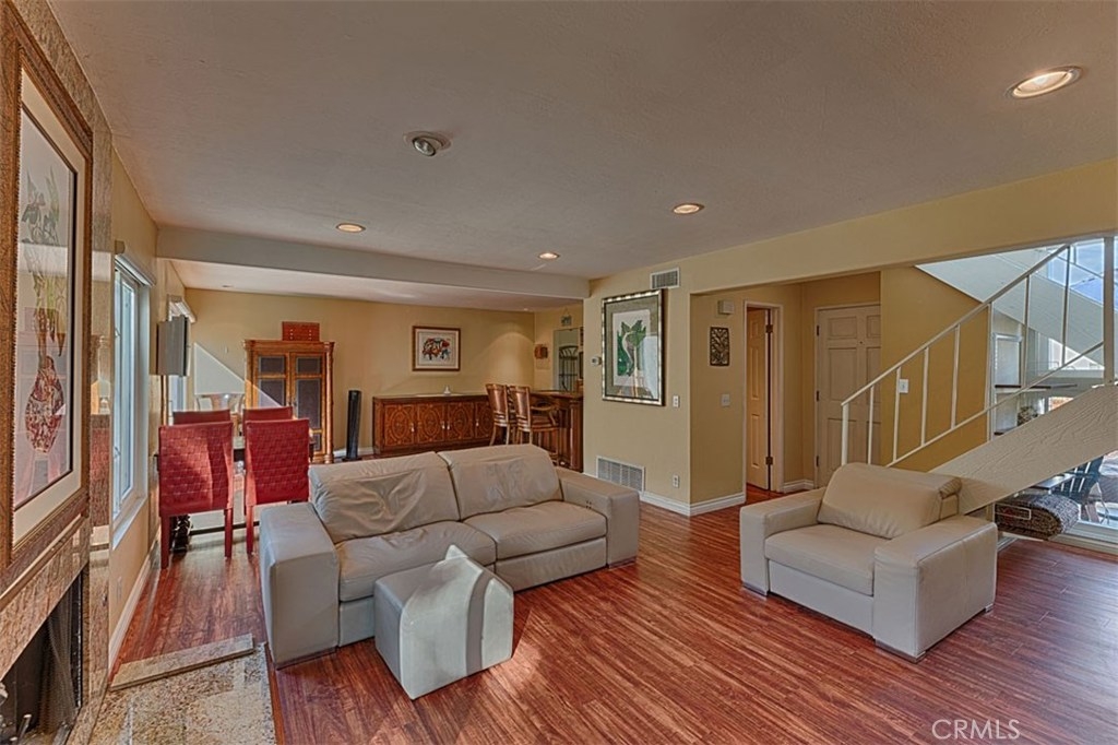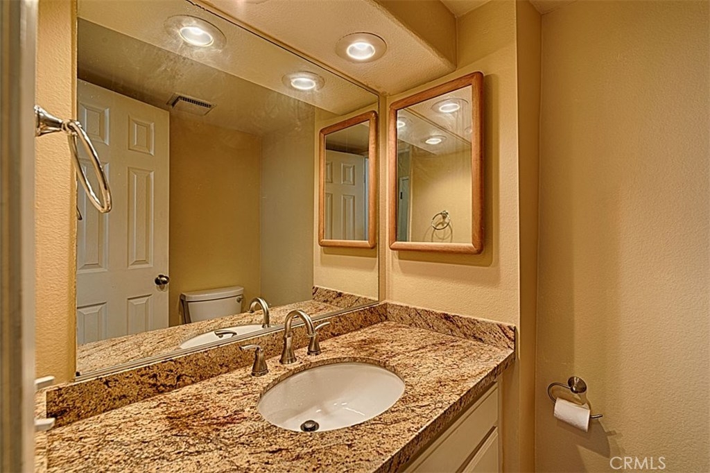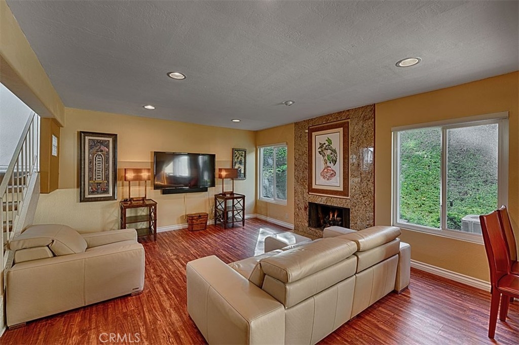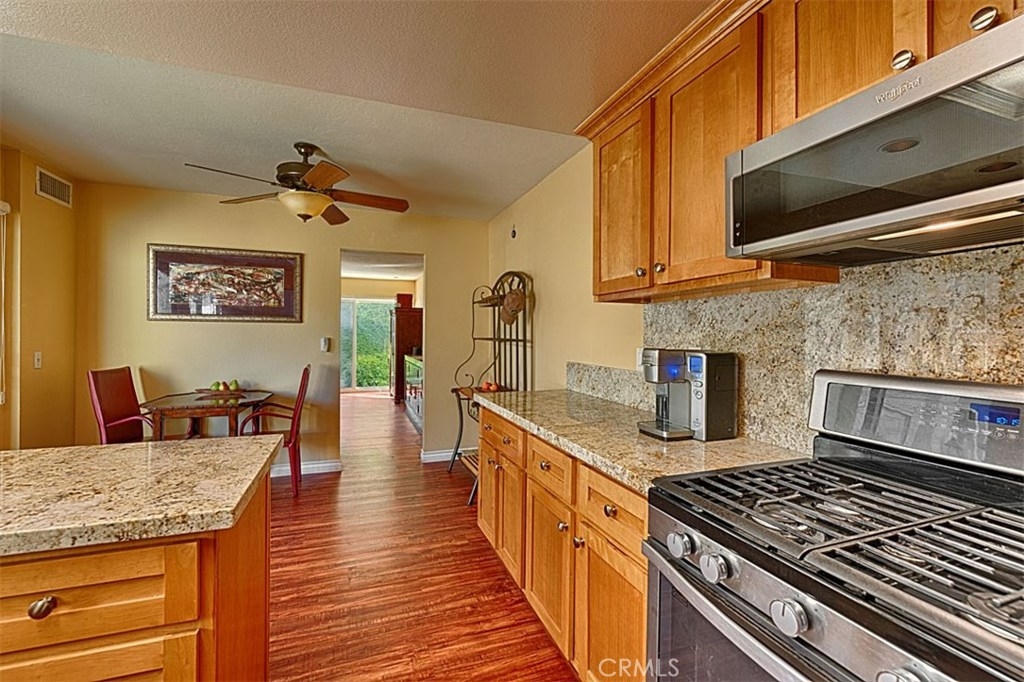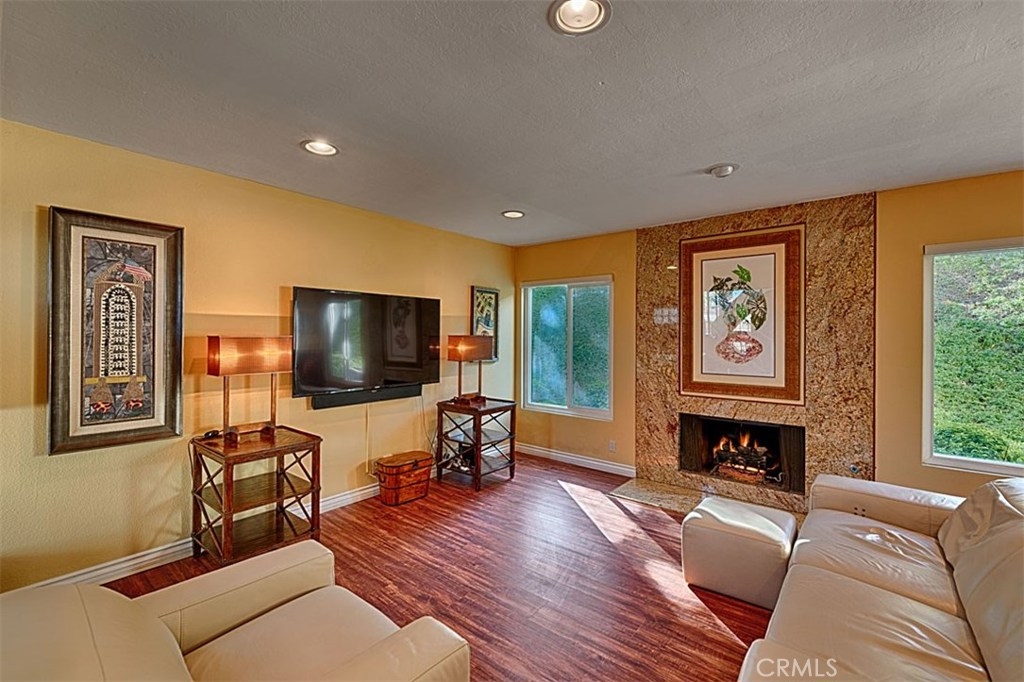 Upgraded Anaheim Hills dual master suites home in the prestigious Rancho Yorba Community. Walking distance to shopping, restaurants and excellent schools - Canyon HS and Crescent Elementary. Spacious kitchen with newer appliances (Bosch dishwasher, space saver microwave hood) and new granite countertops. Undermount stainless steel sink and Delta Touch 2.0 faucet. Lots of cabinets and a breakfast nook. Living room with granite enclosed fireplace and brand new luxury vinyl, waterproof (wood look) floors. Remote controlled Kathy Ireland window coverings in main room, bedrooms and picture windows over the stairs. ALL windows in this home have been upgraded with dual pane, energy efficient windows. Master bedroom with his and her closets, double sink vanity, lg remodeled walk in shower with frameless shower doors and onyx accents. Room for dressing table or extra storage in master bathroom. Second bedroom has en-suite bathroom, Murphy bed and built in office space (optional, can be excluded from the sale). Work in a dedicated home office space and be ready to easily entertain guests. This hone is an end unit with a private patio that is great for entertaining and the side and back is lush with beautiful landscaping that the HOA maintains. loads of newly upgraded items in this home, low flow toilets, garbage disposal, Lennox air conditioner and furnace, recessed lighting, new roof. HOA includes water and common area landscaping and community pool.