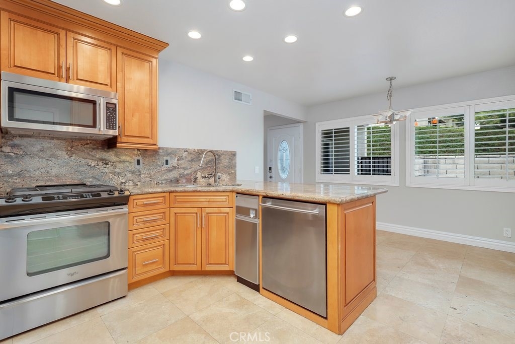Welcome to 5596 Vista Del Este, a completely remodeled SINGLE STORY, end unit home located in the highly desirable Rancho Yorba community of Anaheim Hills! Private, large front patio with beautiful brick walkway leads to the front door. Step inside and you’ll be greeted by freshly painted interiors, travertine tile floors, recessed lights and plantation shutters throughout. Upgraded kitchen features beautiful cabinetry with pull out drawers, granite countertops, stainless steel appliances and a breakfast bar. Dining area features updated sliding doors to oversized front patio, making it a breeze to entertain. Easy access to the attached 2-car garage with washer/dryer from the kitchen. Master suite boasts high vaulted ceilings and a view of the tranquil hills behind, and the spacious second bedroom features recessed lighting and mirrored closet doors. Newer windows throughout, and plenty of built in cabinets and storage options throughout! Rancho Yorba residents enjoy 2 sparkling community pools, spa, and a Clubhouse. Ideally located near schools, restaurants, and freeways. Be sure to check out the 3D Virtual tour!