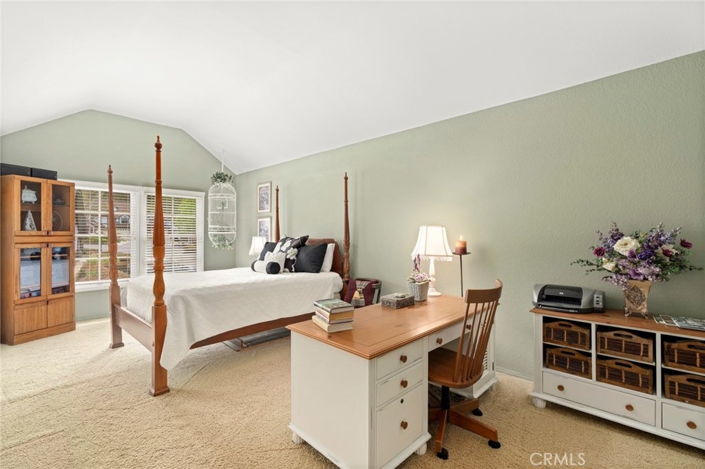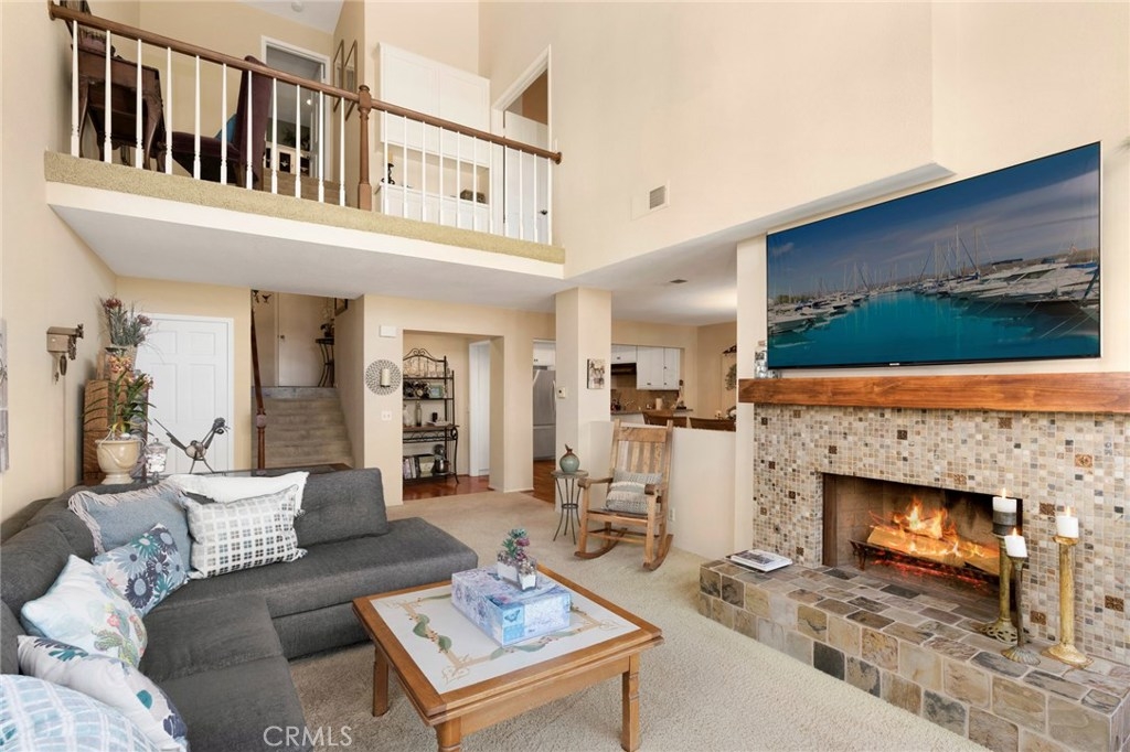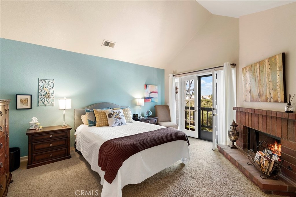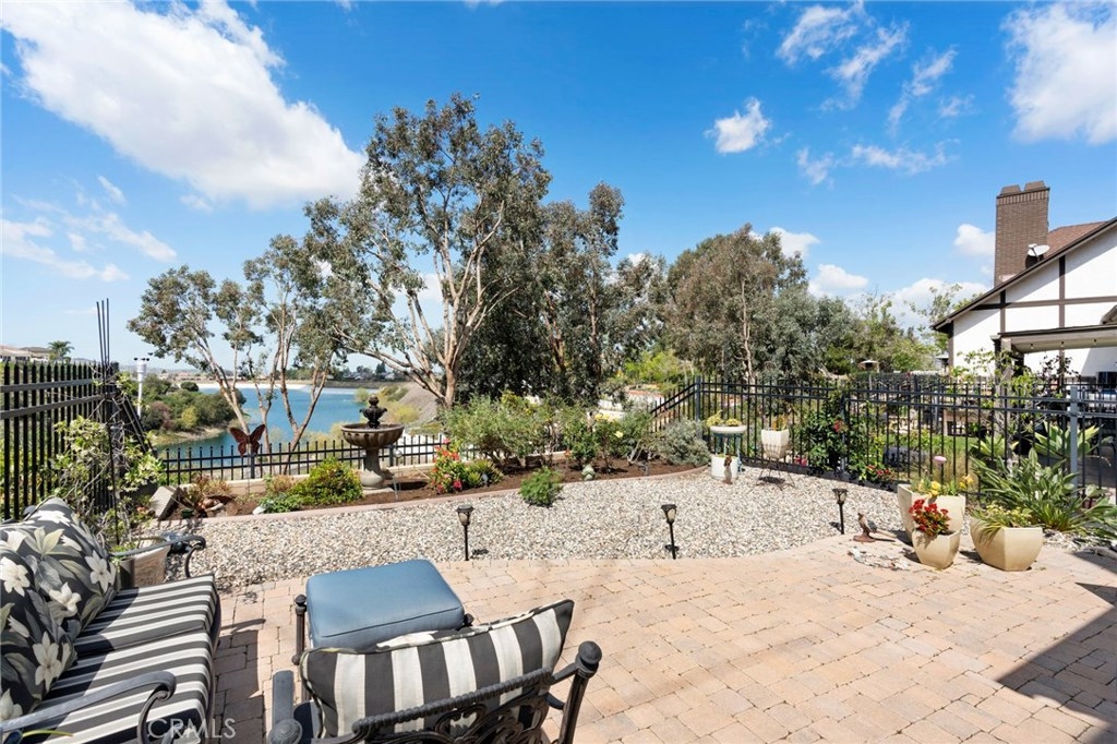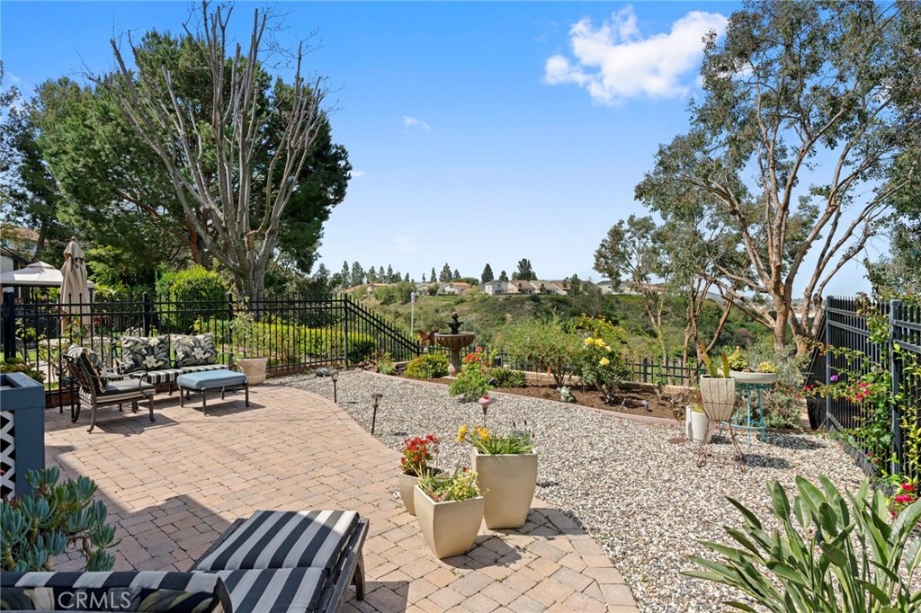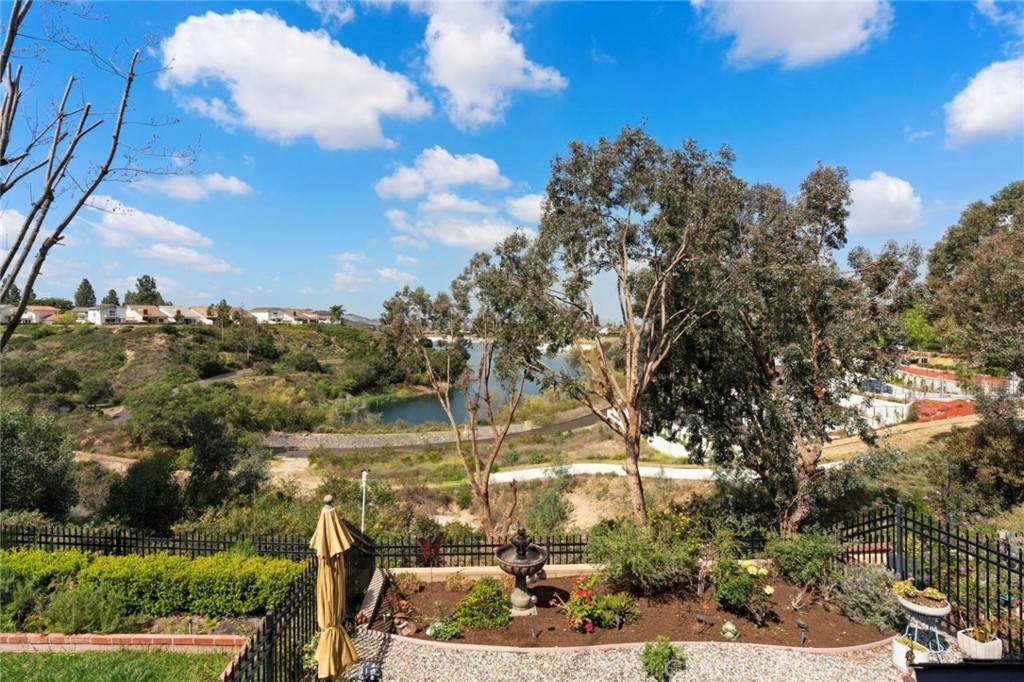 Tucked away in an intimate gated enclave is this fabulous end-unit home with gorgeous reservoir and hillside views! Light-filled and spacious 2-bedroom, 2.5-bath residence features a beautifully remodeled master bath, soaring ceilings, stone and hardwood flooring, and an abundance of windows throughout. The spacious living room features a slate-surround fireplace and French doors opening to the rear yard. The sizable dining room opens to the bright kitchen featuring granite counters and large pantry. Upstairs, be delighted by the master suite with private balcony, fireplace and luxurious spa-like bath with vaulted ceilings and luminous skylights. Oversized secondary master retreat offers a private bath, walk-in closet and an additional charming balcony. Outdoors, take in the beautiful views of the reservoir and enjoy the paver-lined patio with water fountain and gardening planter. Centrally-located in the gated community of Rim Crest Villas with convenient driveway, two-car garage and close proximity to the pool and spa. Do not miss this fantastic opportunity!